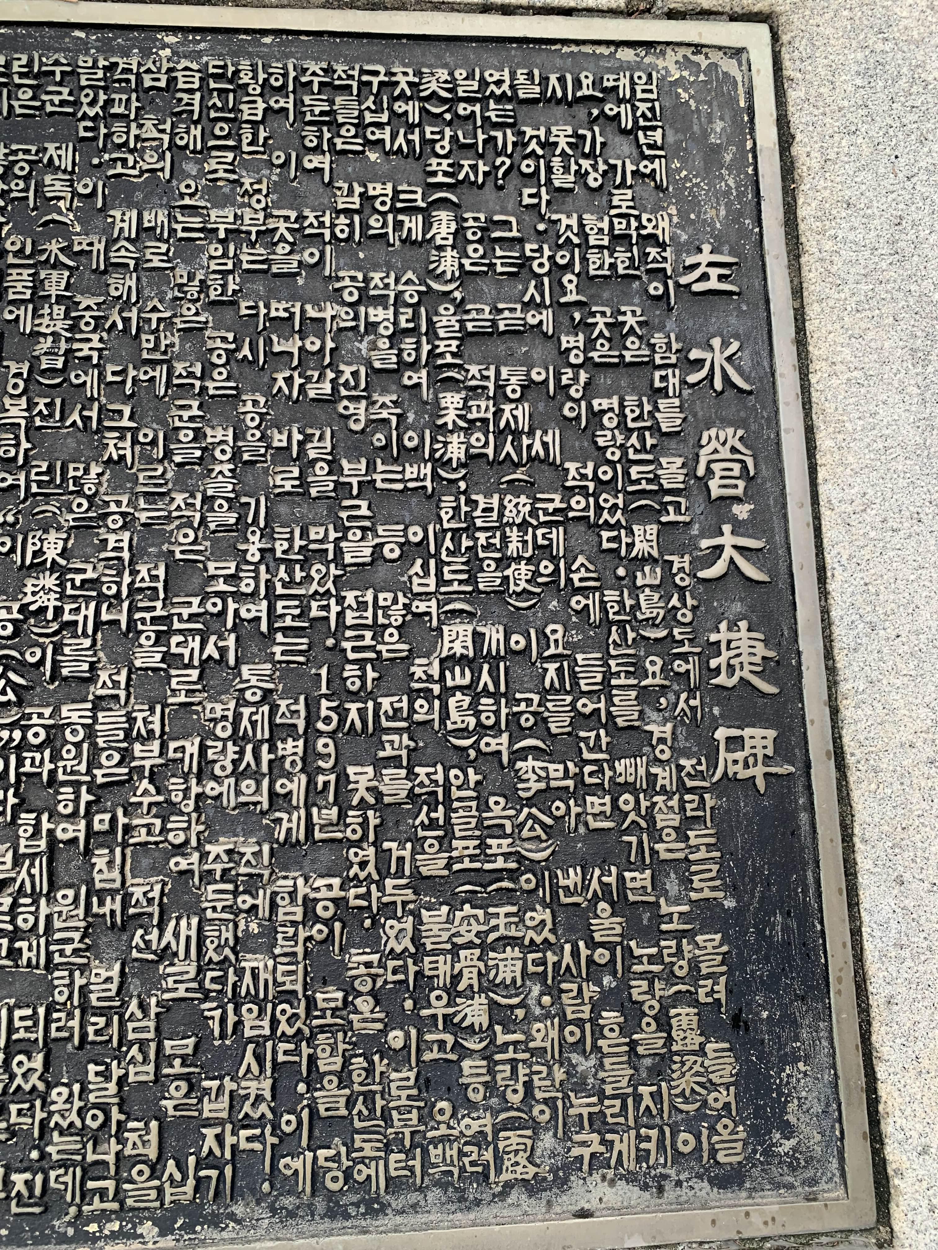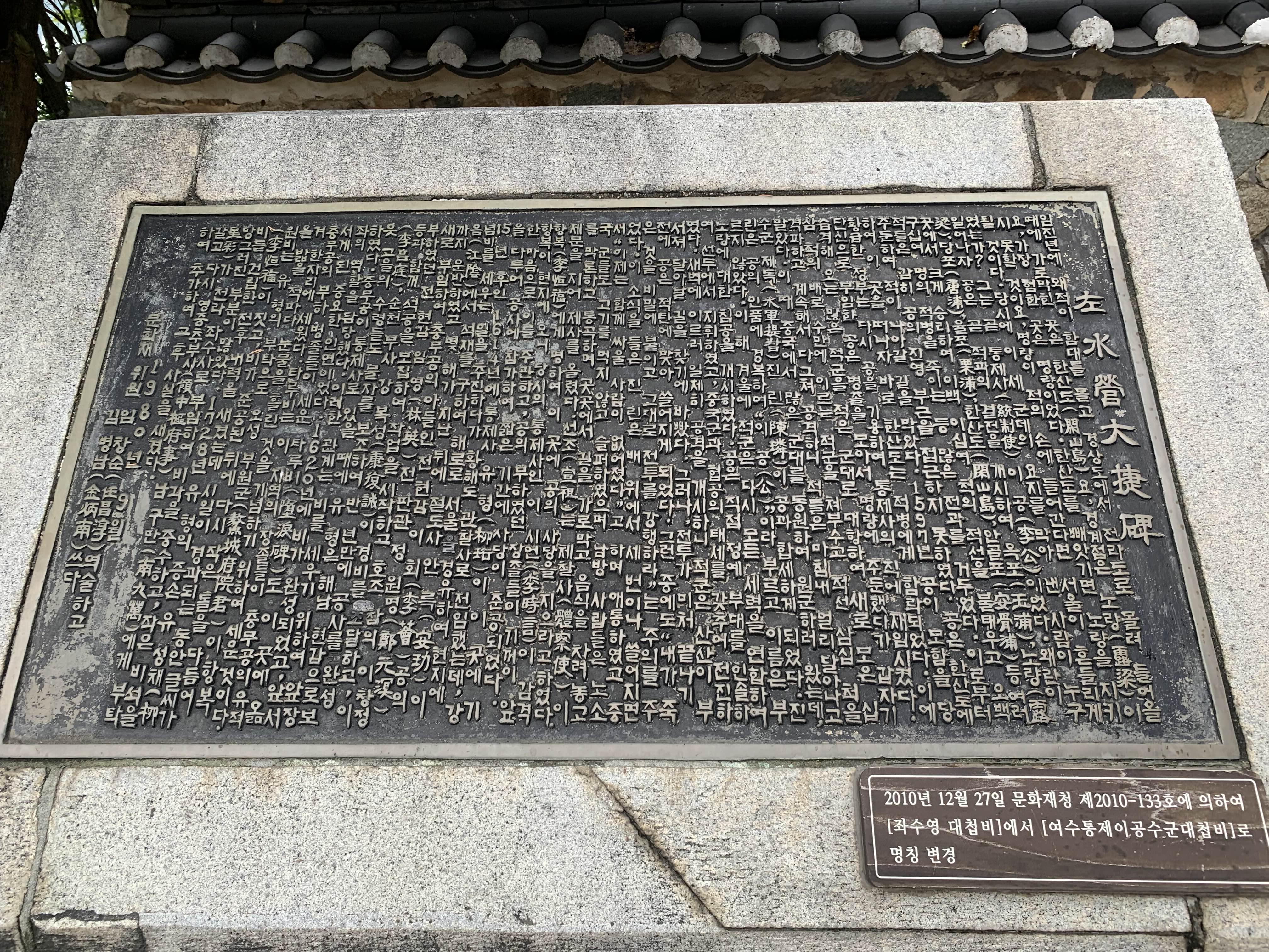 좌수영 대첩비에 대한 안내문!