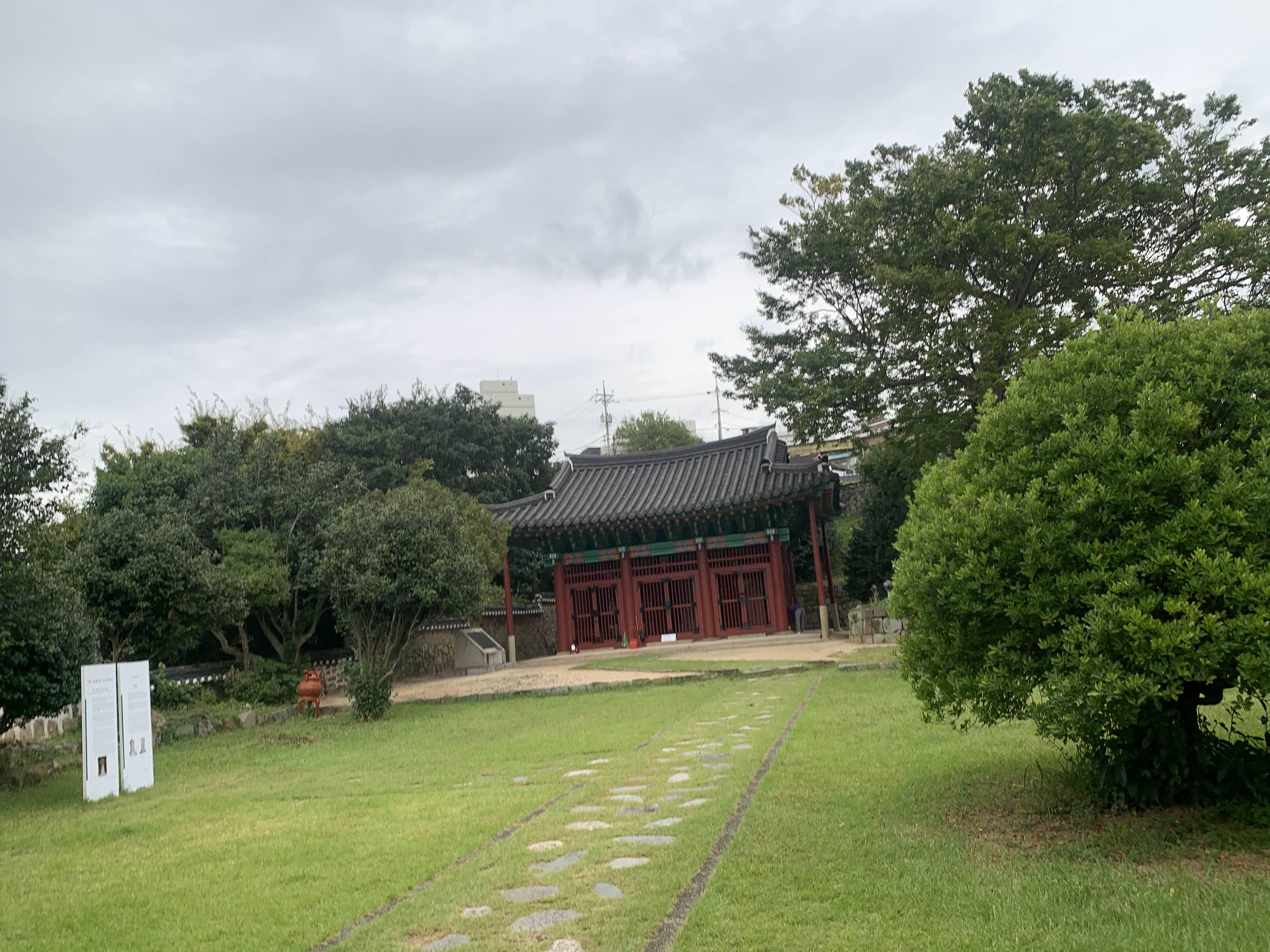 진남관에서 여수 바다 쪽으로 오르막 정산에 위치한 장소이다.
