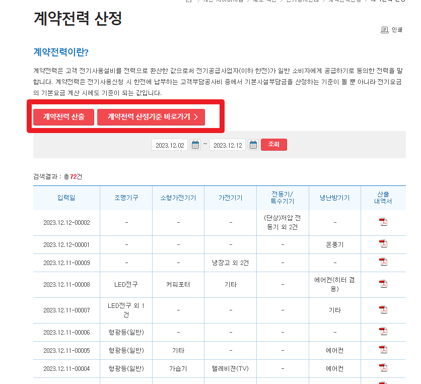 사용전력 산정방법은 한전의 계약전력 산정방법을 참고!