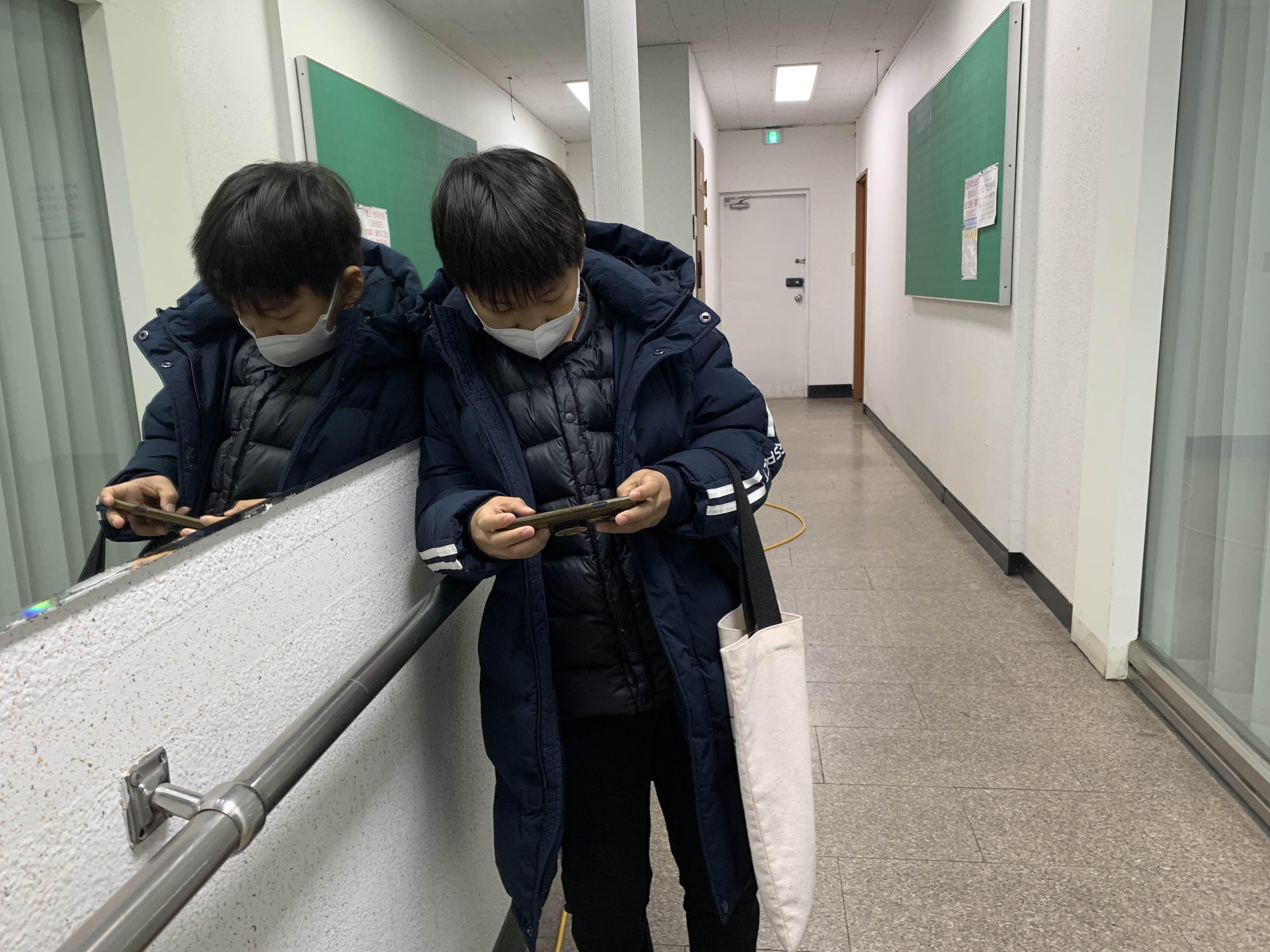 한참을 기다려도 안 나오길래.... 고사장 안으로 들어가 보니!! 안 나오고 게임에 열중인 아이!!ㅠㅠ