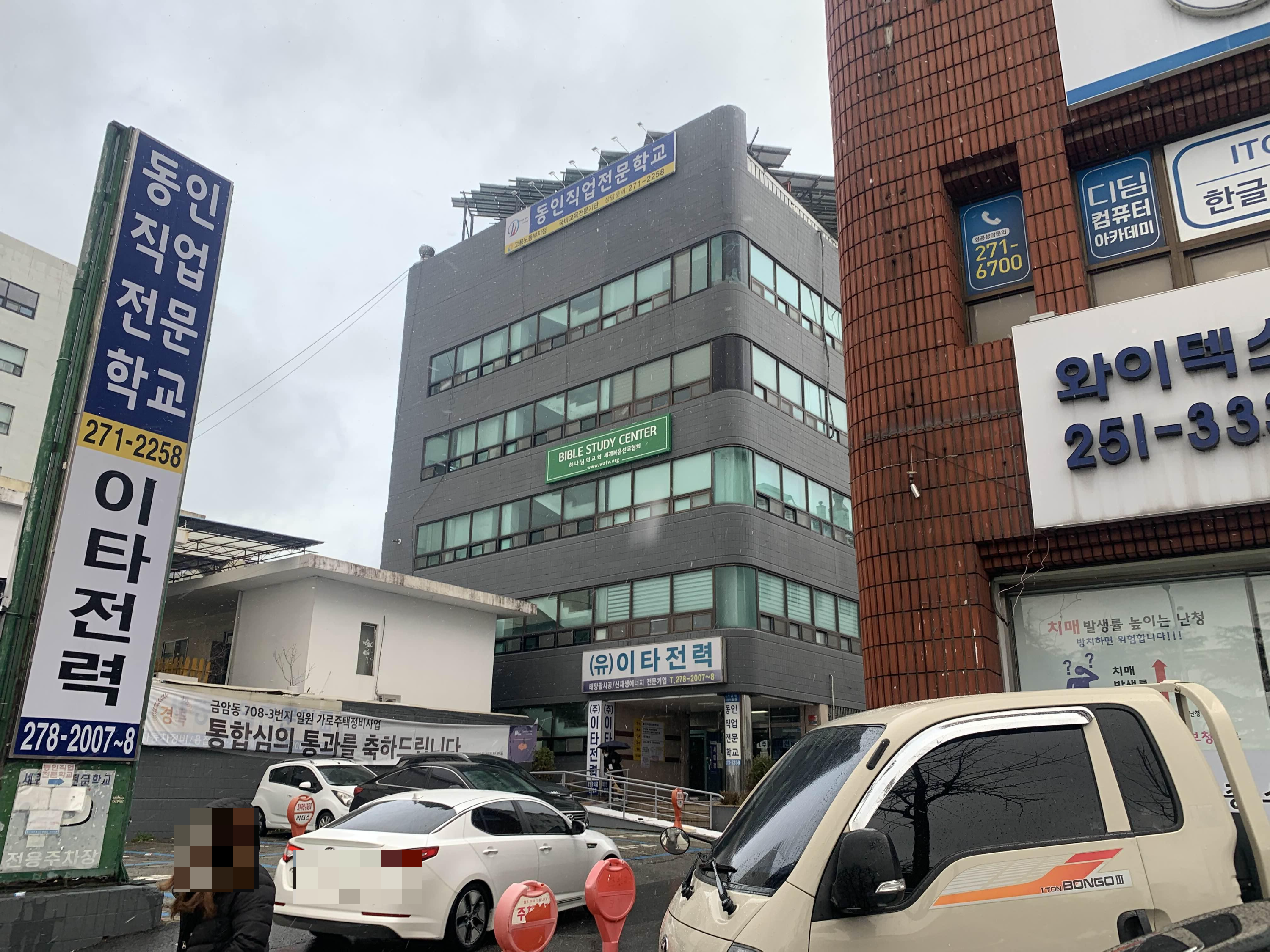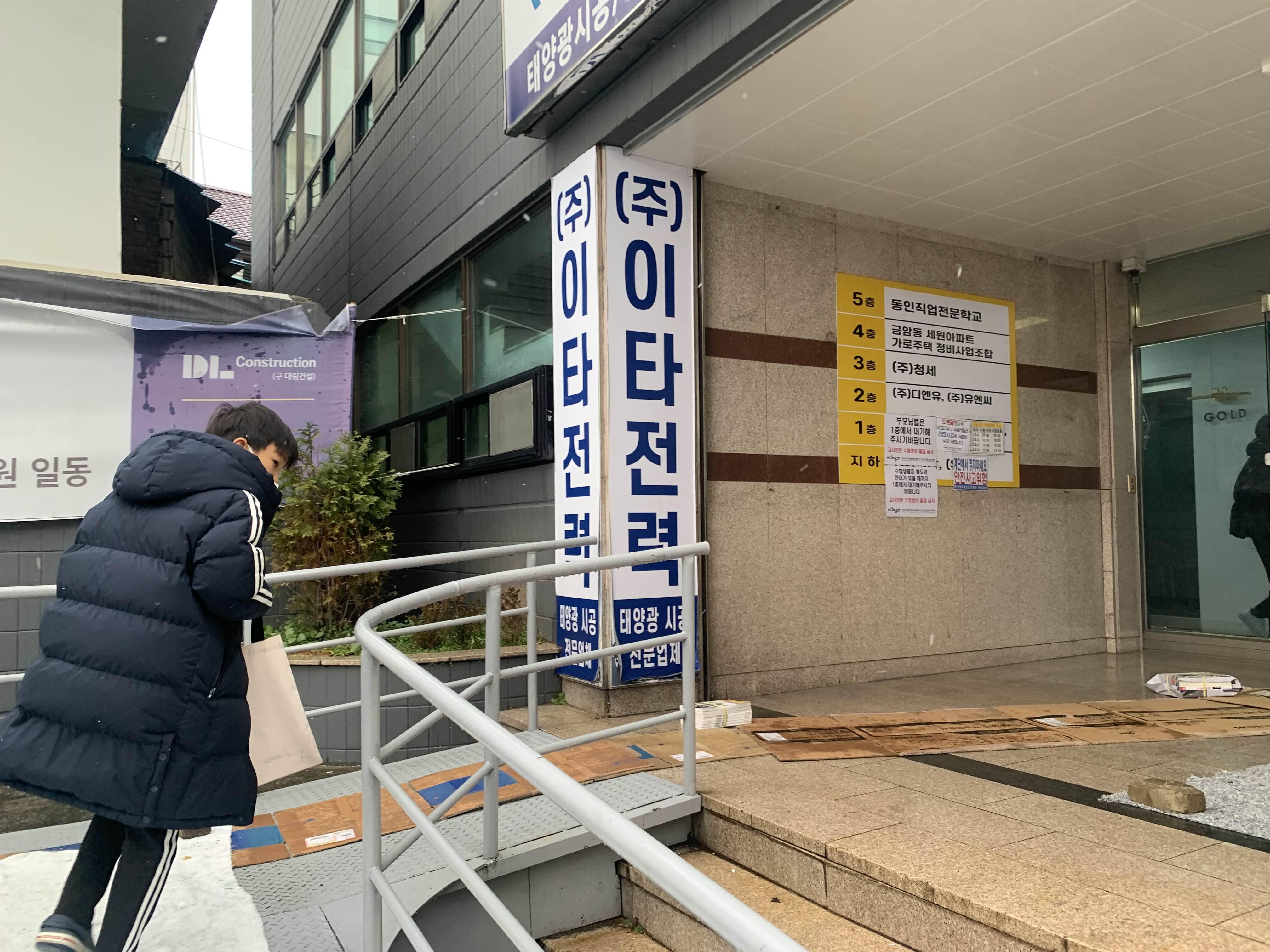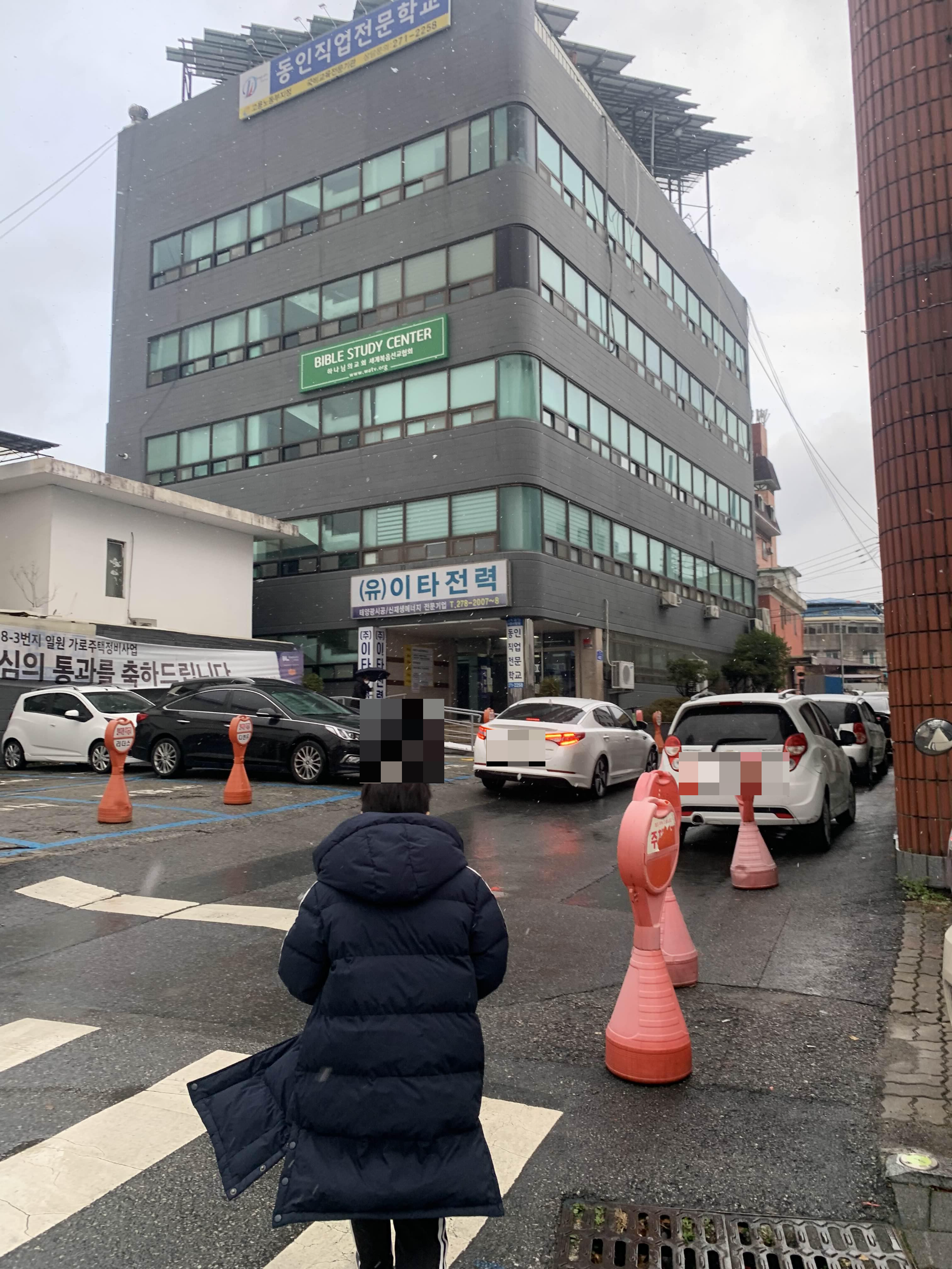 시험이 진행되는 고사장!! 동인직업전문학교는 많은 아이들을 실어 나르는 부모님들 차량으로.... 주차장이나 골목까지 차량 진입이 어렵다.ㅎㅎ