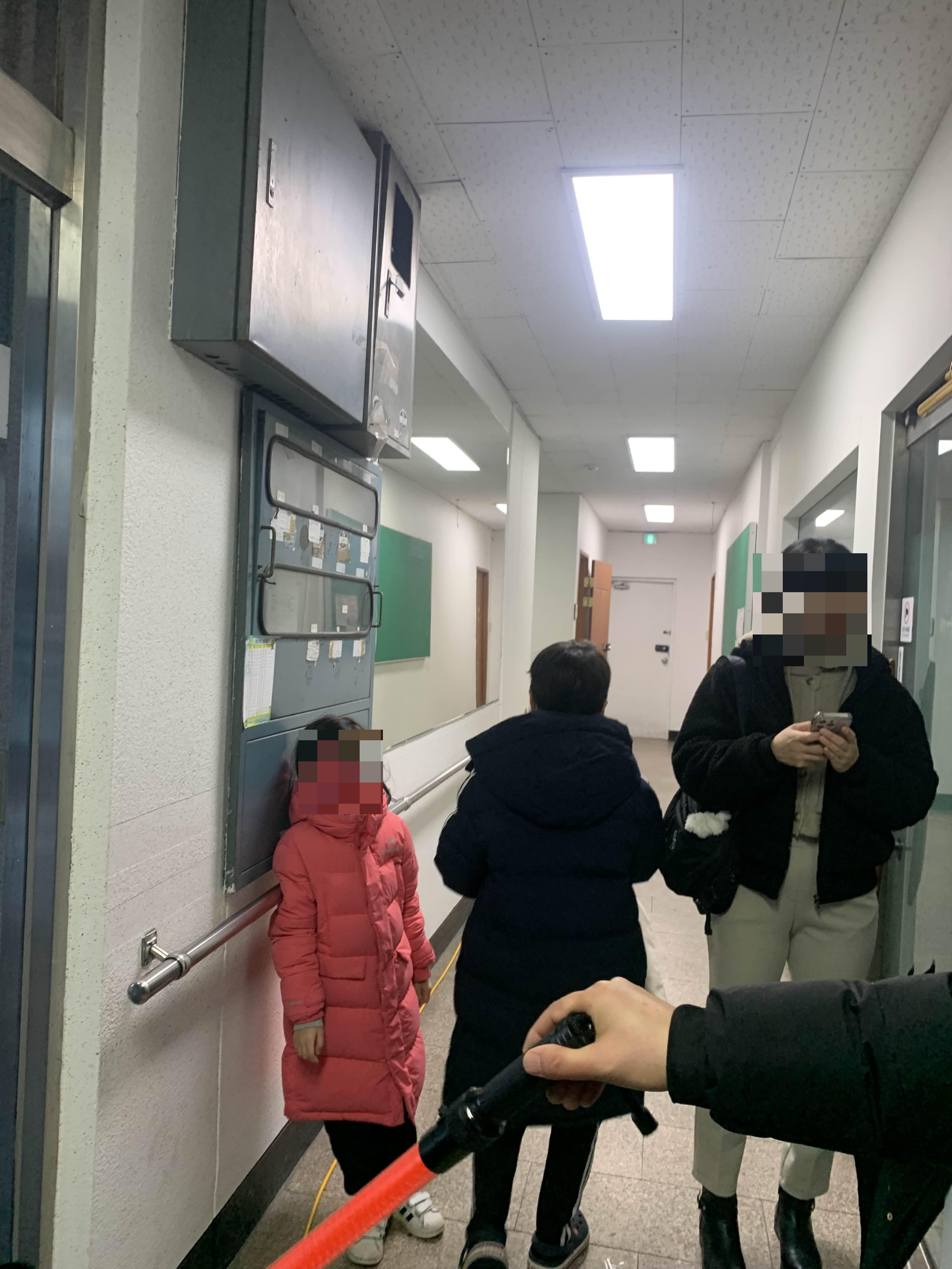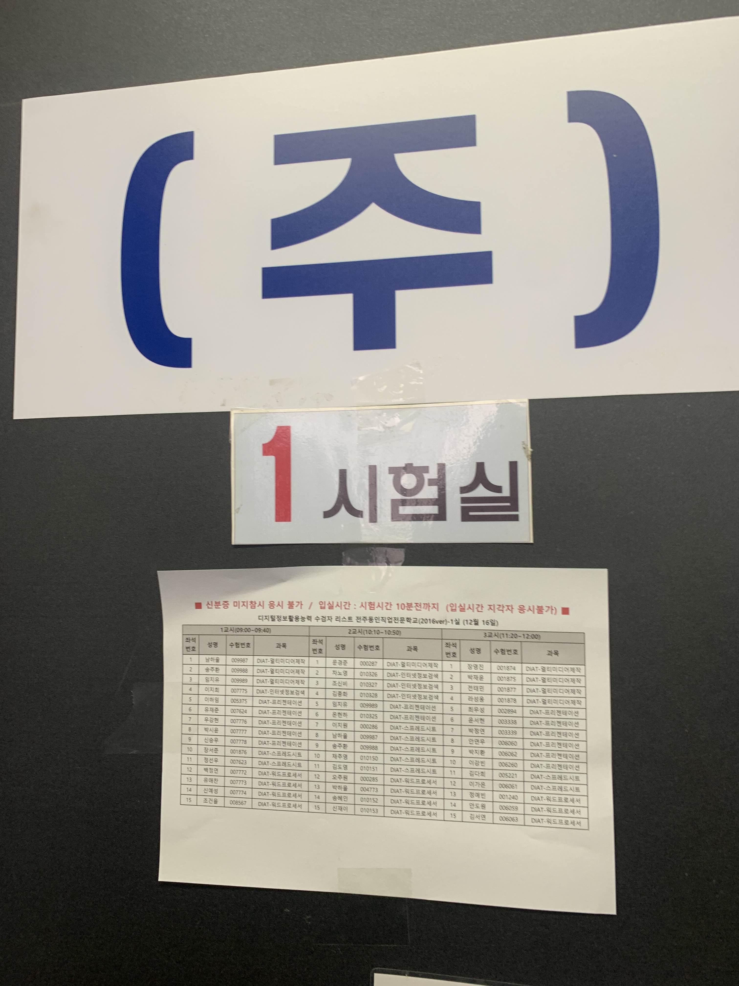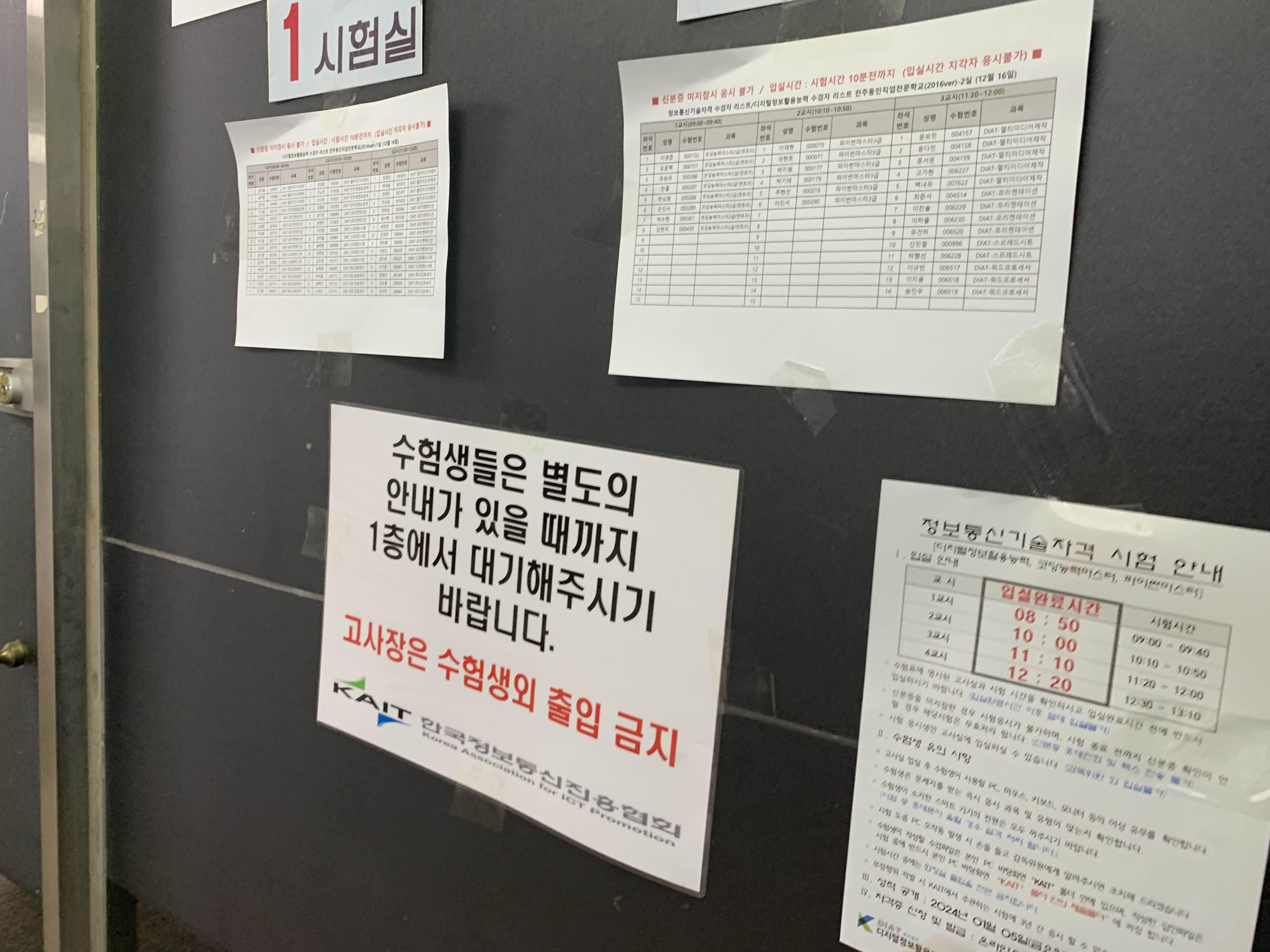 고사장 1층에서 안내해 주고... 부모님은 시험이 끝나는 시간에 오시라고 한다.