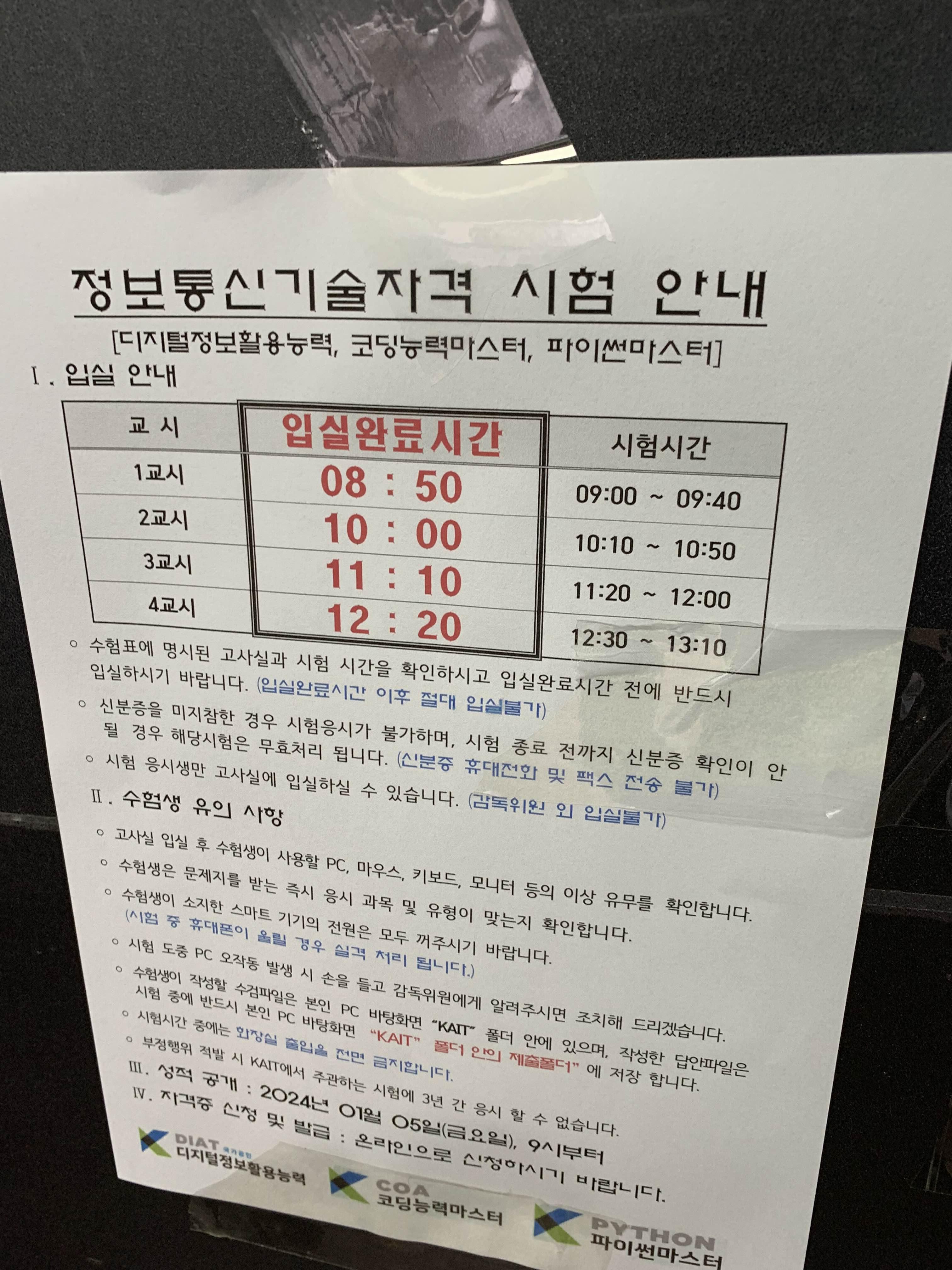 오늘은 디저털정보활용능력(DIAT) 응시를 위해 다시 방문해 보았습니다.