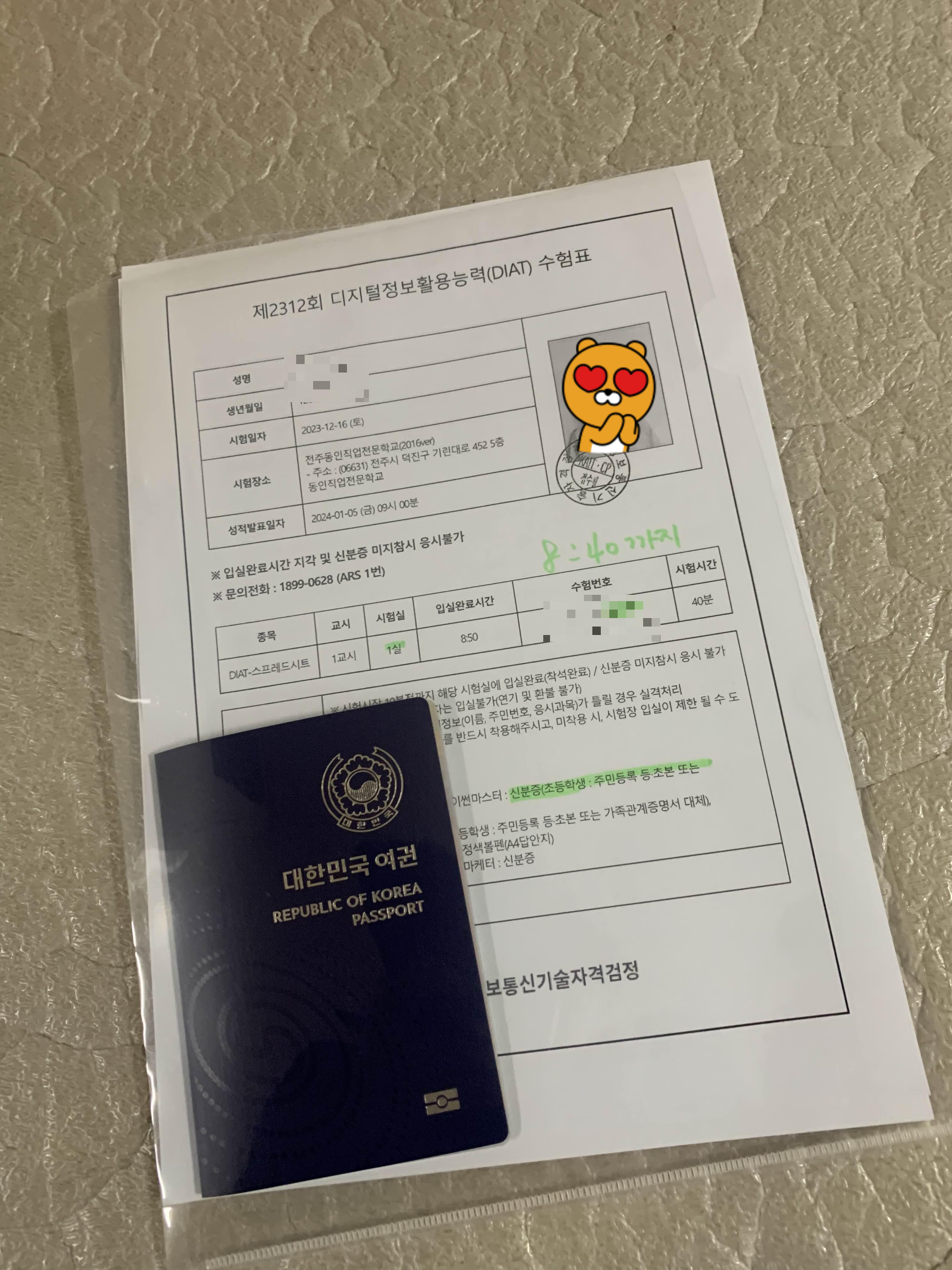 초등학생의 경우 신분증이 없어!! 여권으로 준비!!