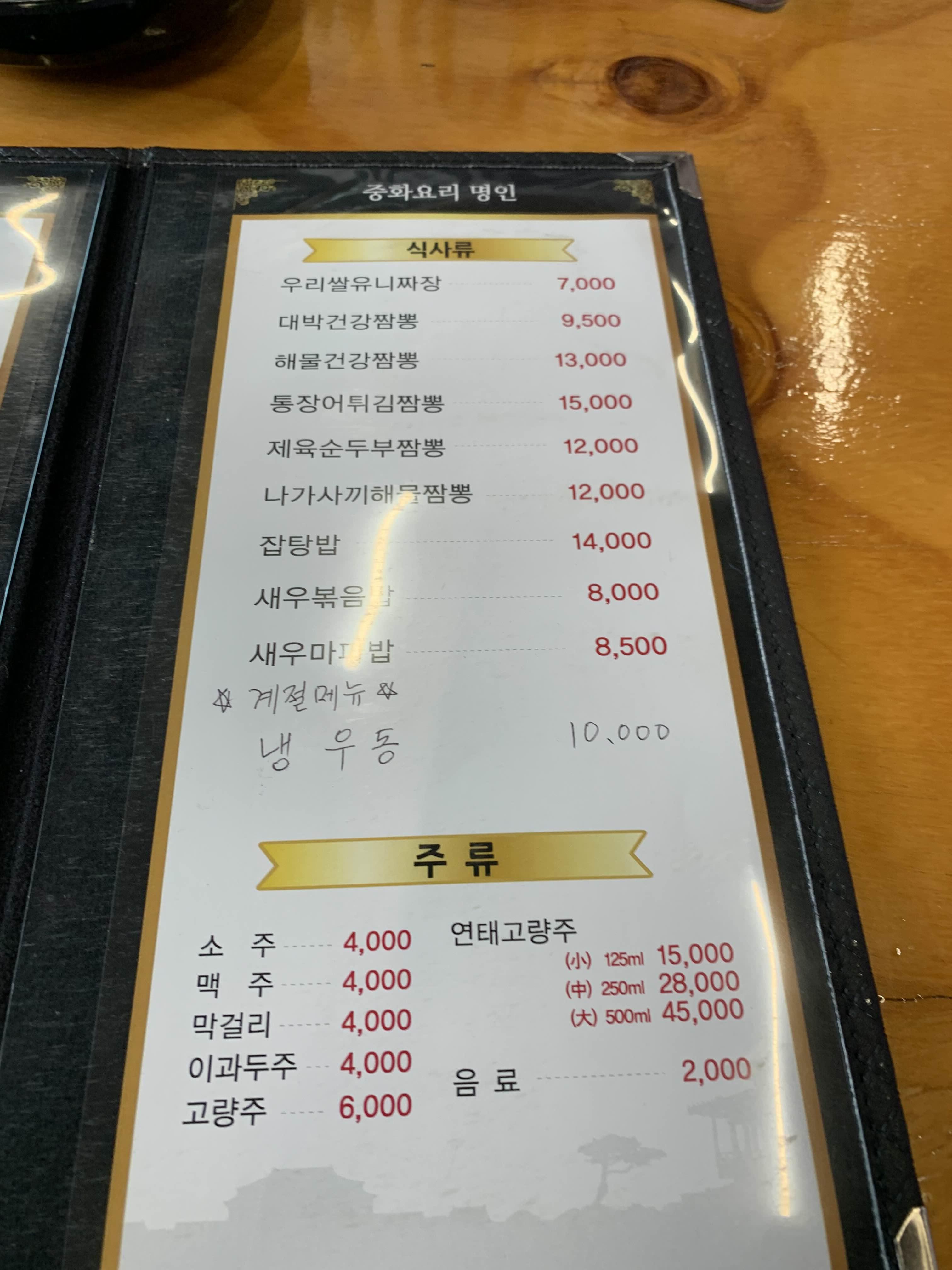 기본 짜장면이 7,000원이고 짬뽕은 9,500원이더군요. 기본 짬뽕과 탕수육으로 주문해 보았습니다.
