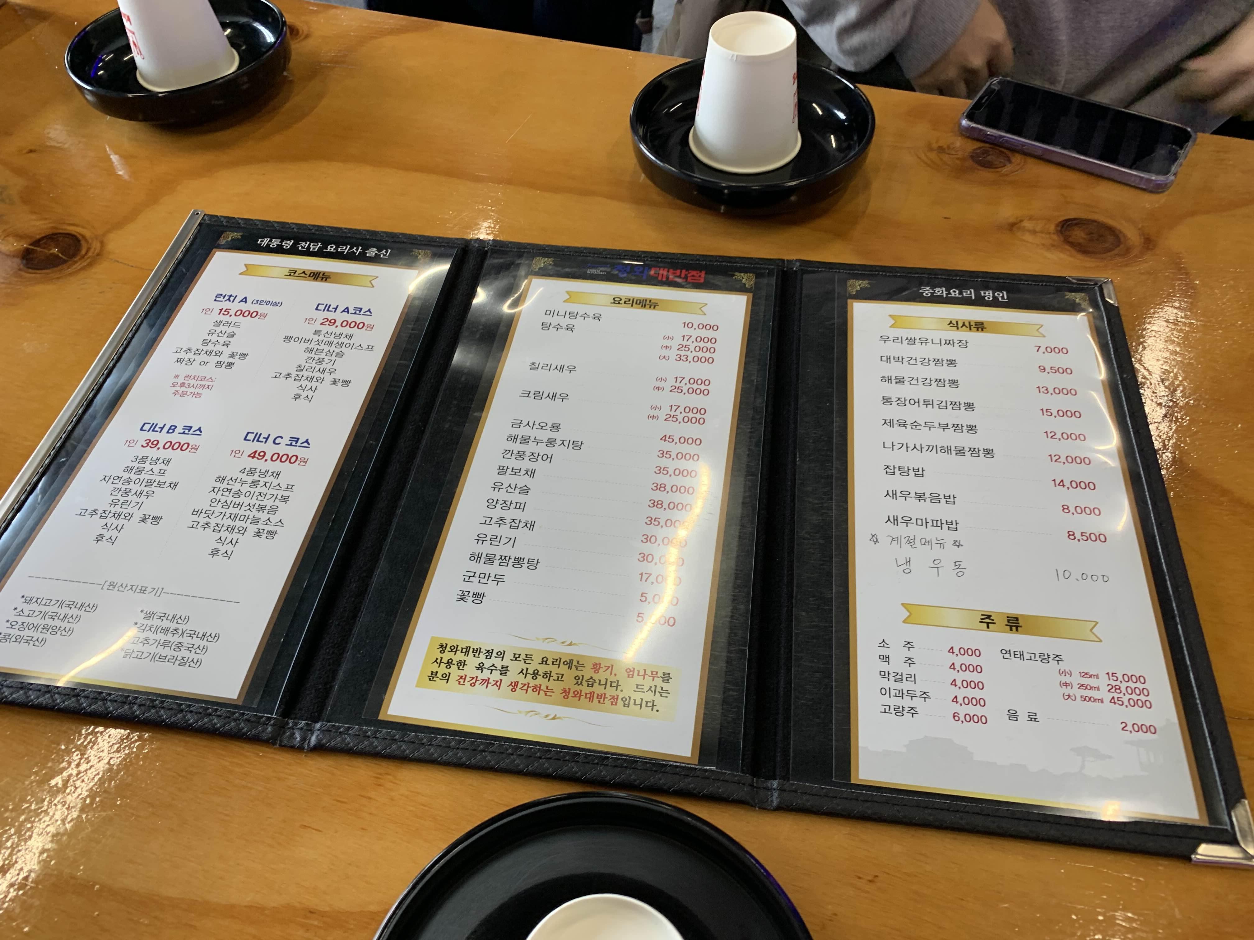 식당 이름이.... 청와 대반점이라... 식당이름을 뛰어서 읽어야겠더군요.ㅎㅎ
