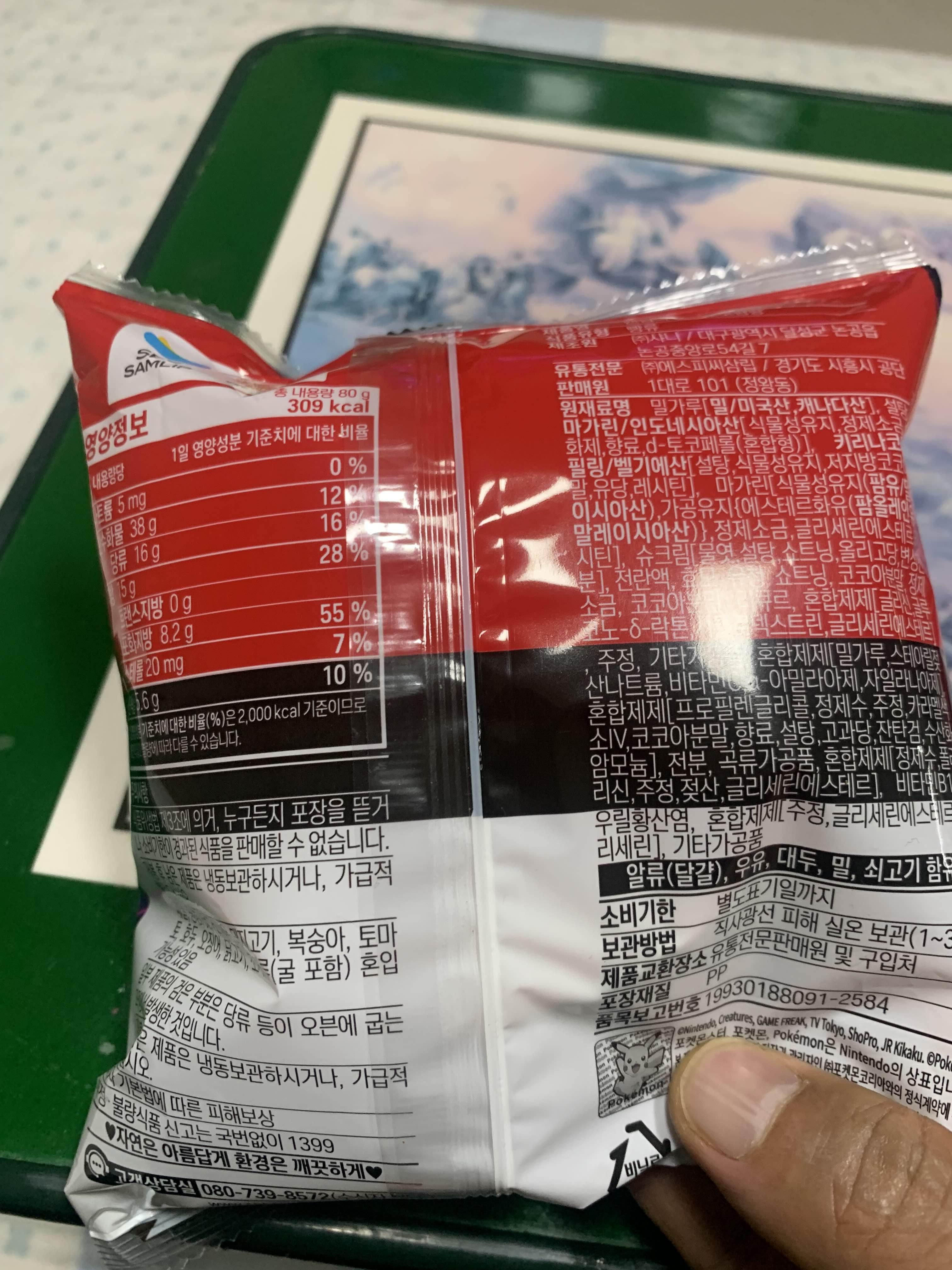 초코가 들어있어서... 다른 포켓몬빵에 비해서 칼로리가 조금 높은 편이다.