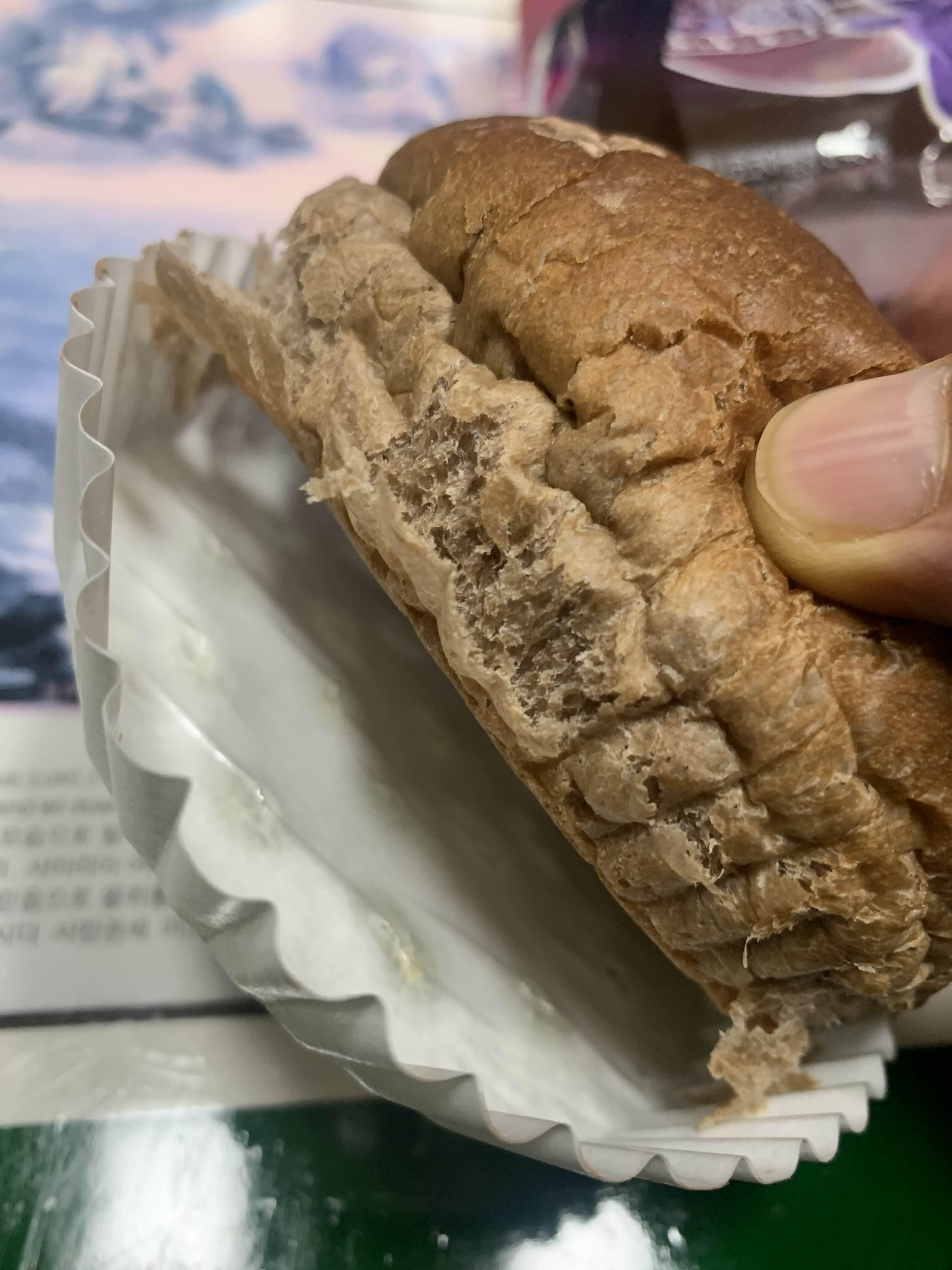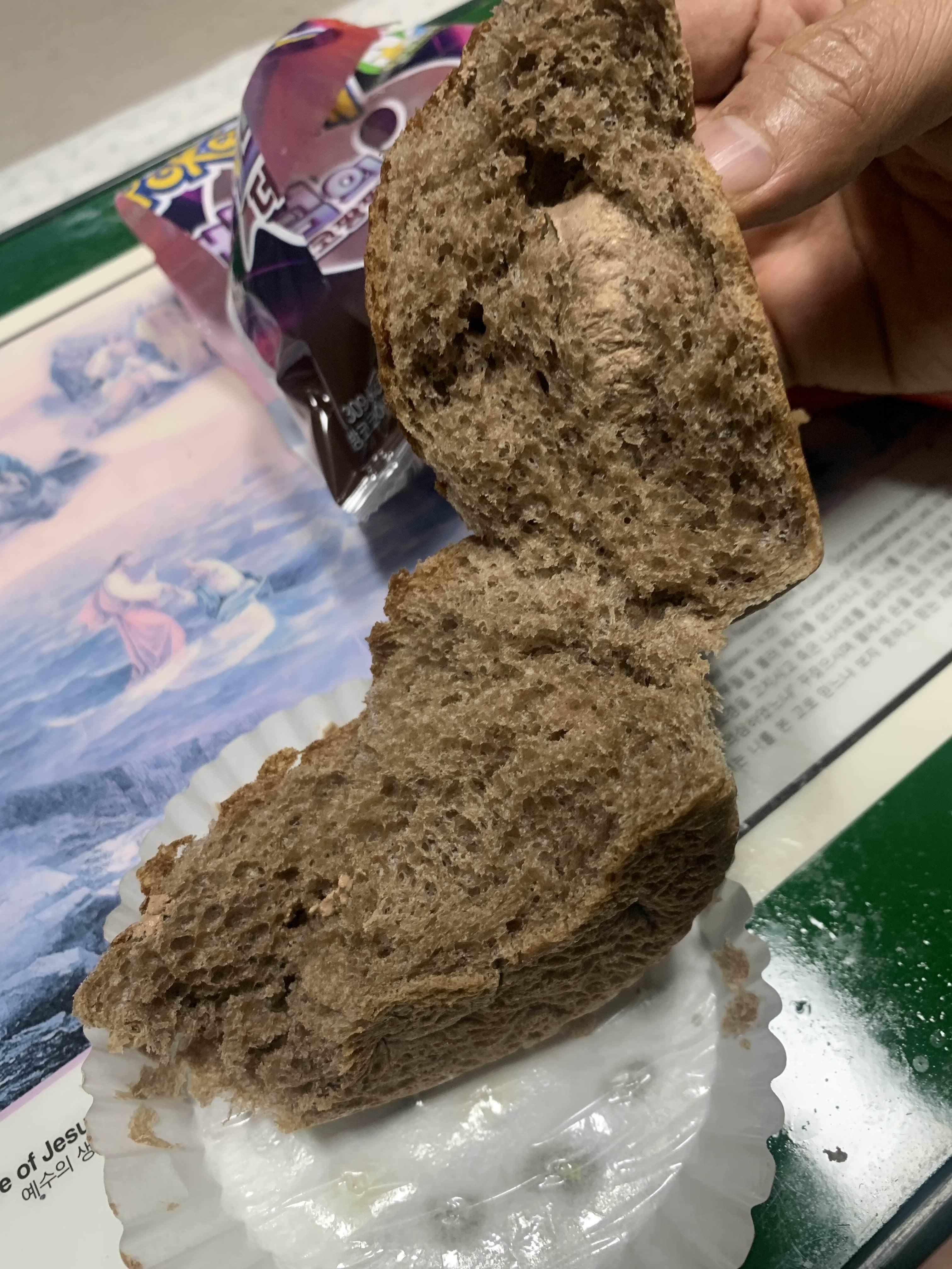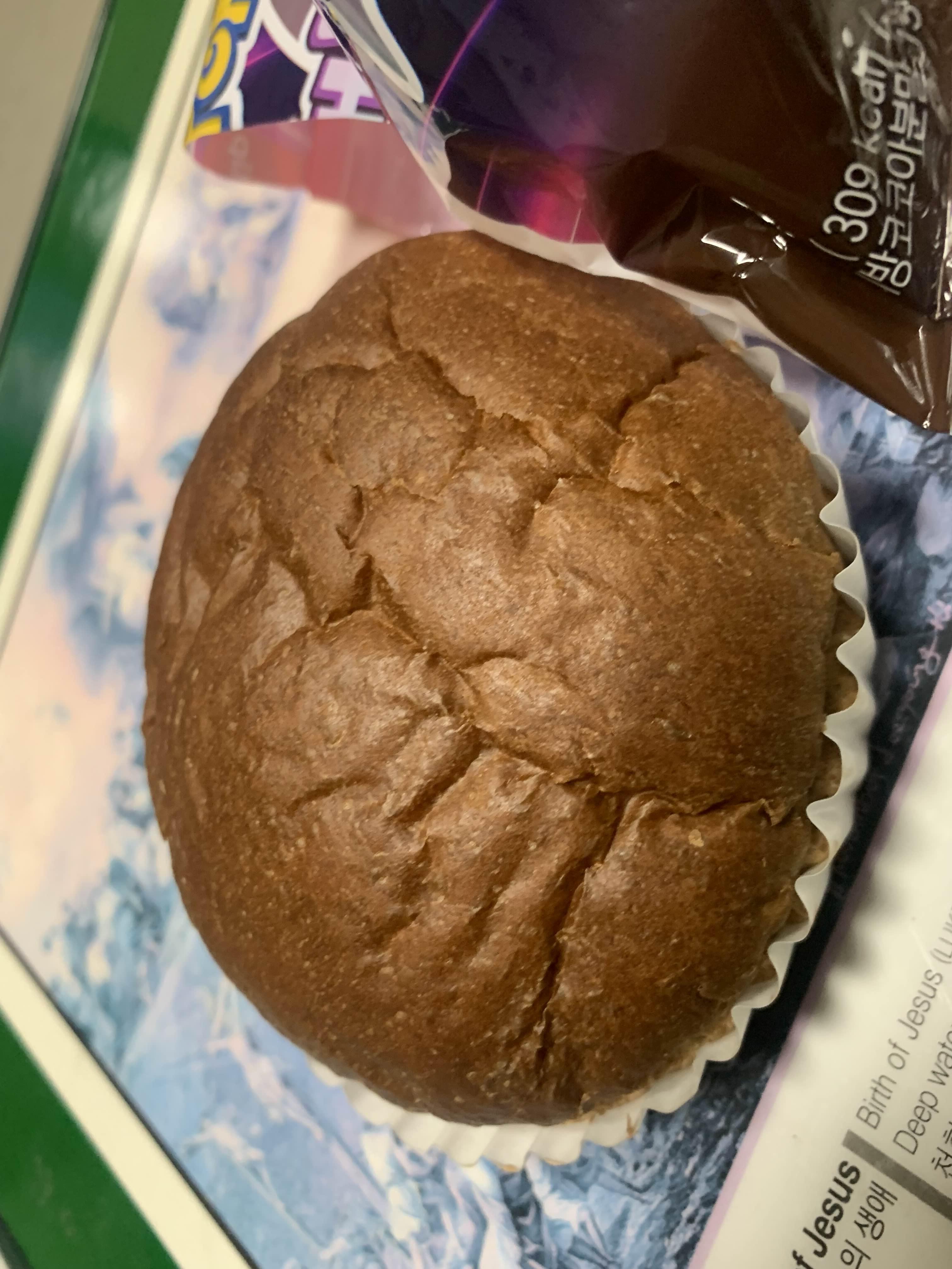 초코가 한쪽에 몰려있어서... 적당히 다른 퍽퍽한 빵 부분과 나누어 먹어야 한다.ㅎㅎ