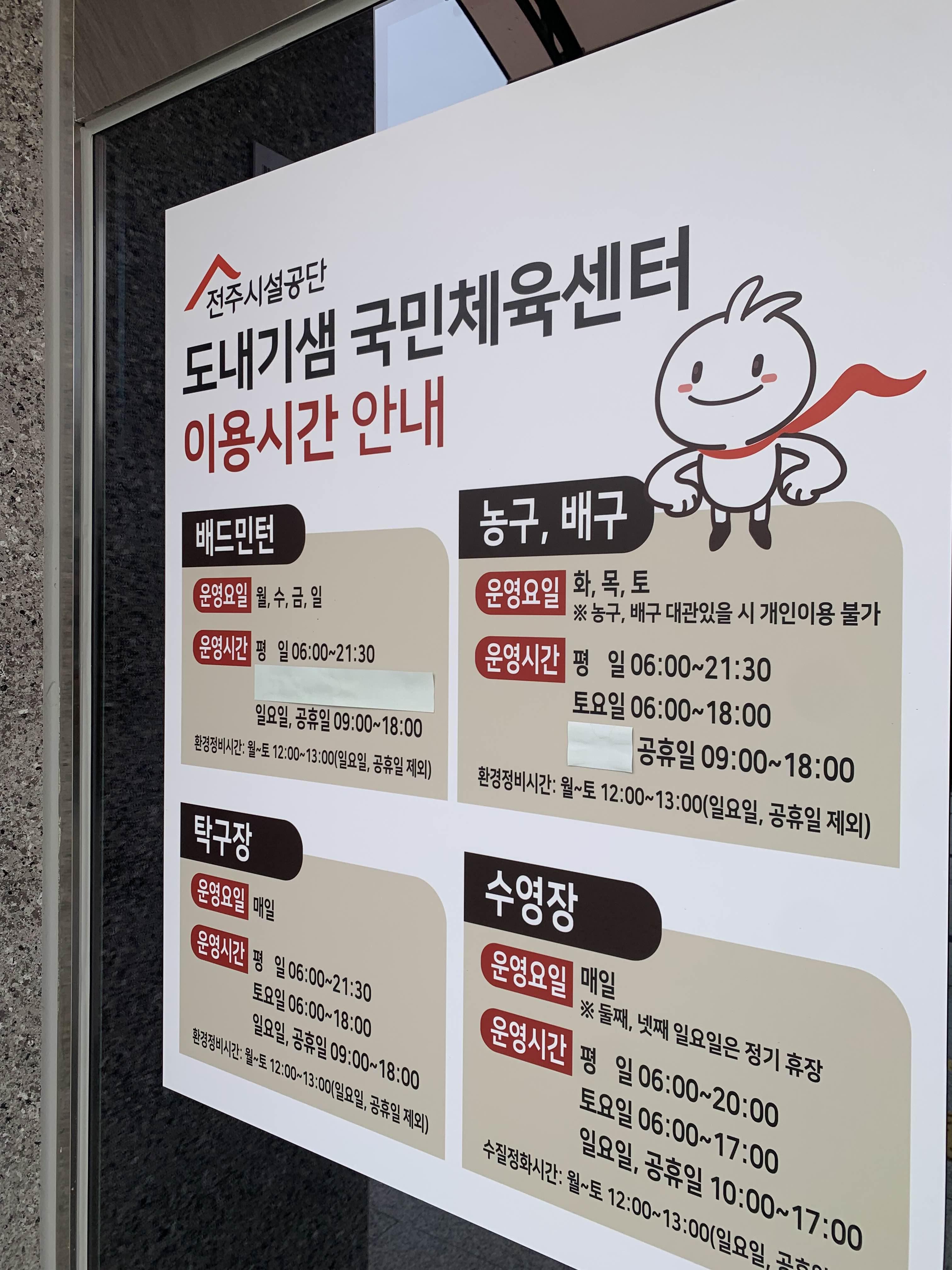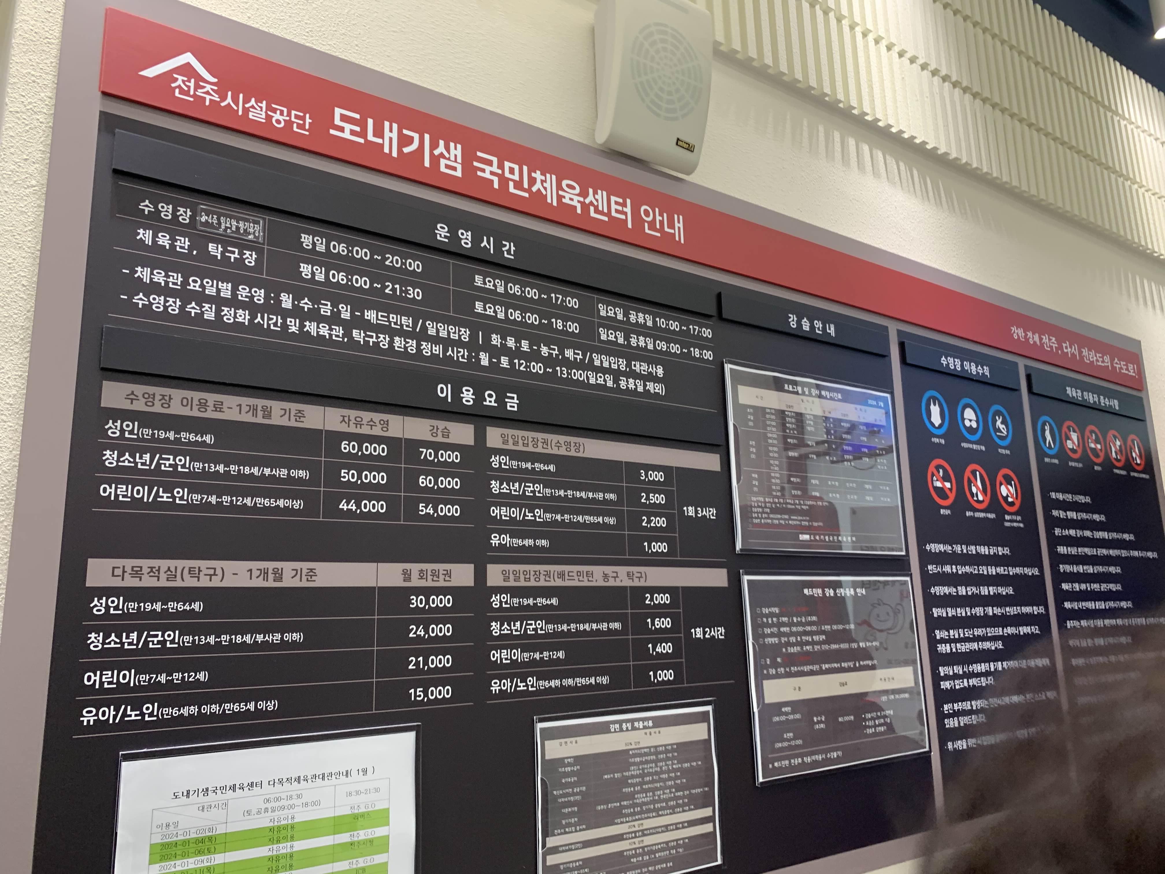 주말에 덕진수영장에서 수영이나 하려고 했는데, 덕진수영장이 정기 휴무!! 다른 곳을 알아보다.. 도내기샘 국민체육센터~