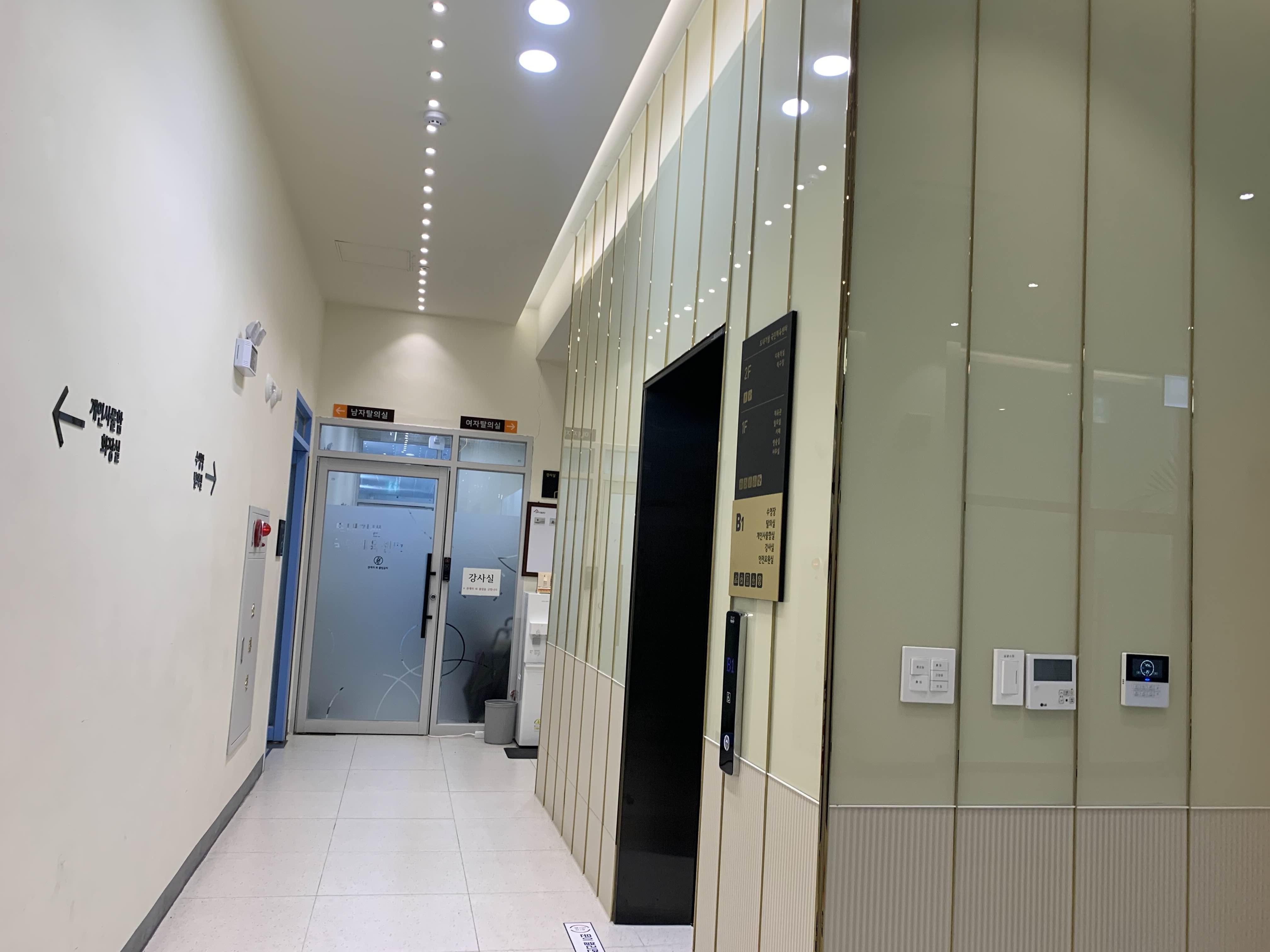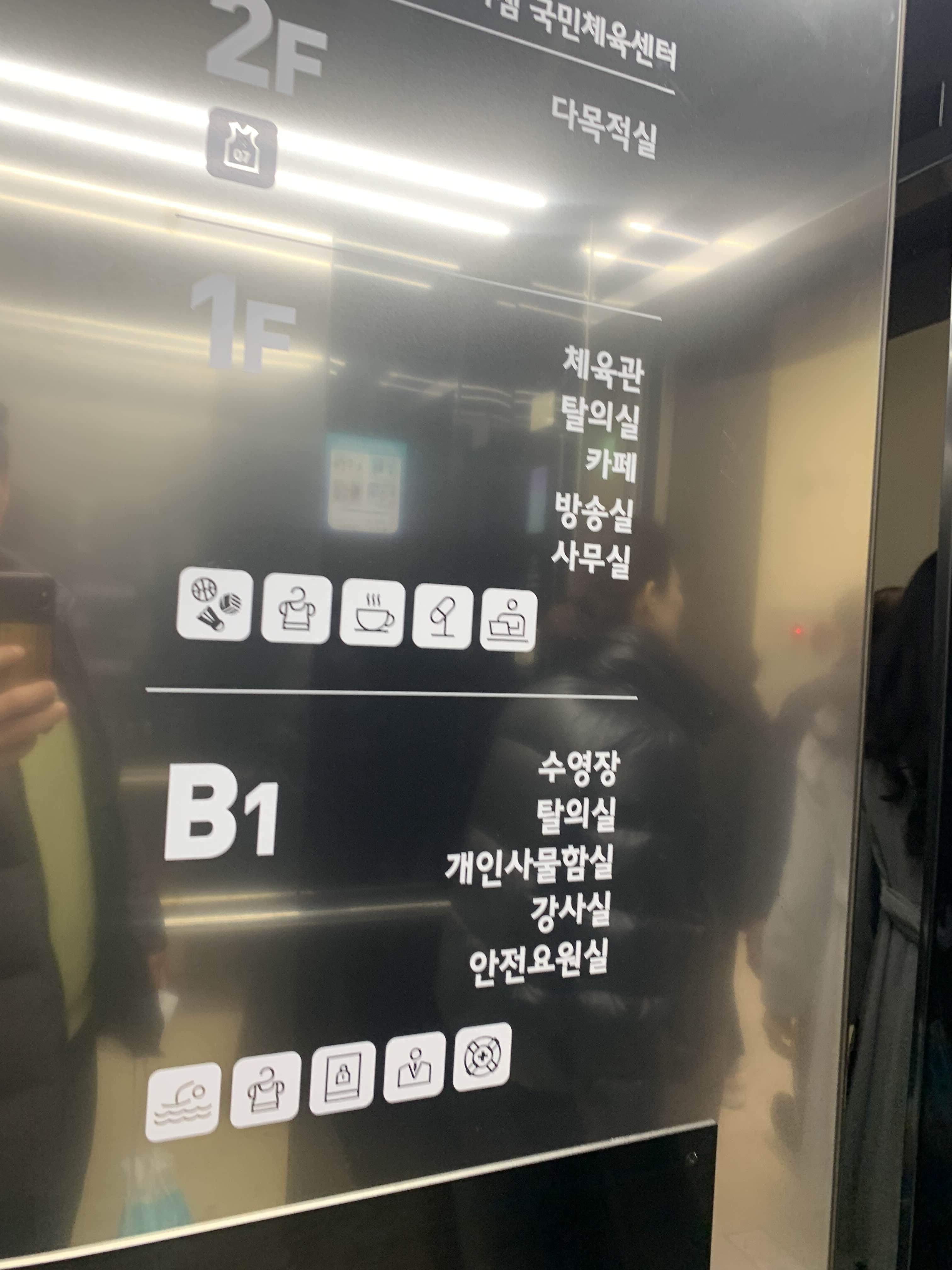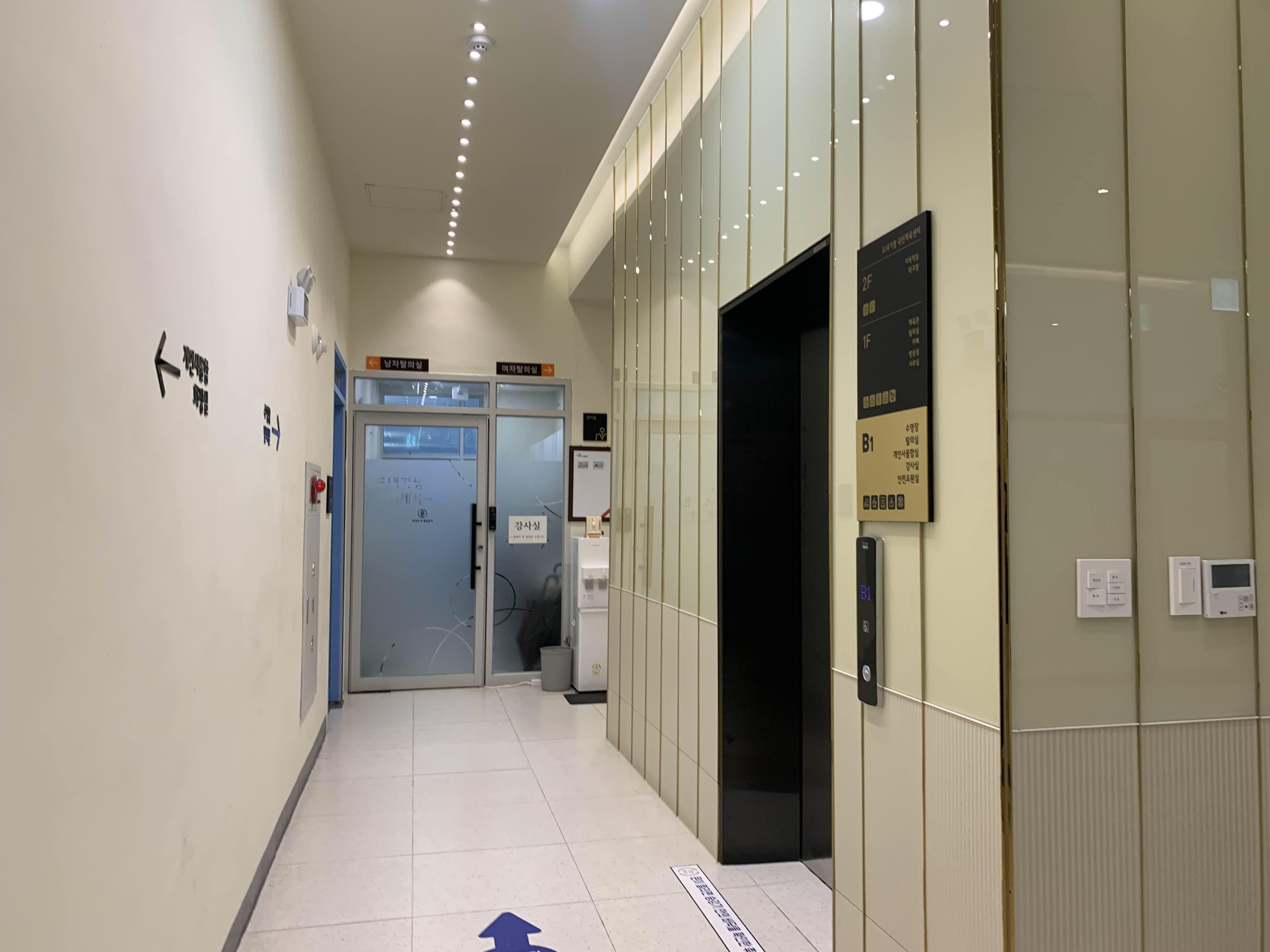 승강기를 이용하여 수영장이 있는 지하층으로~~