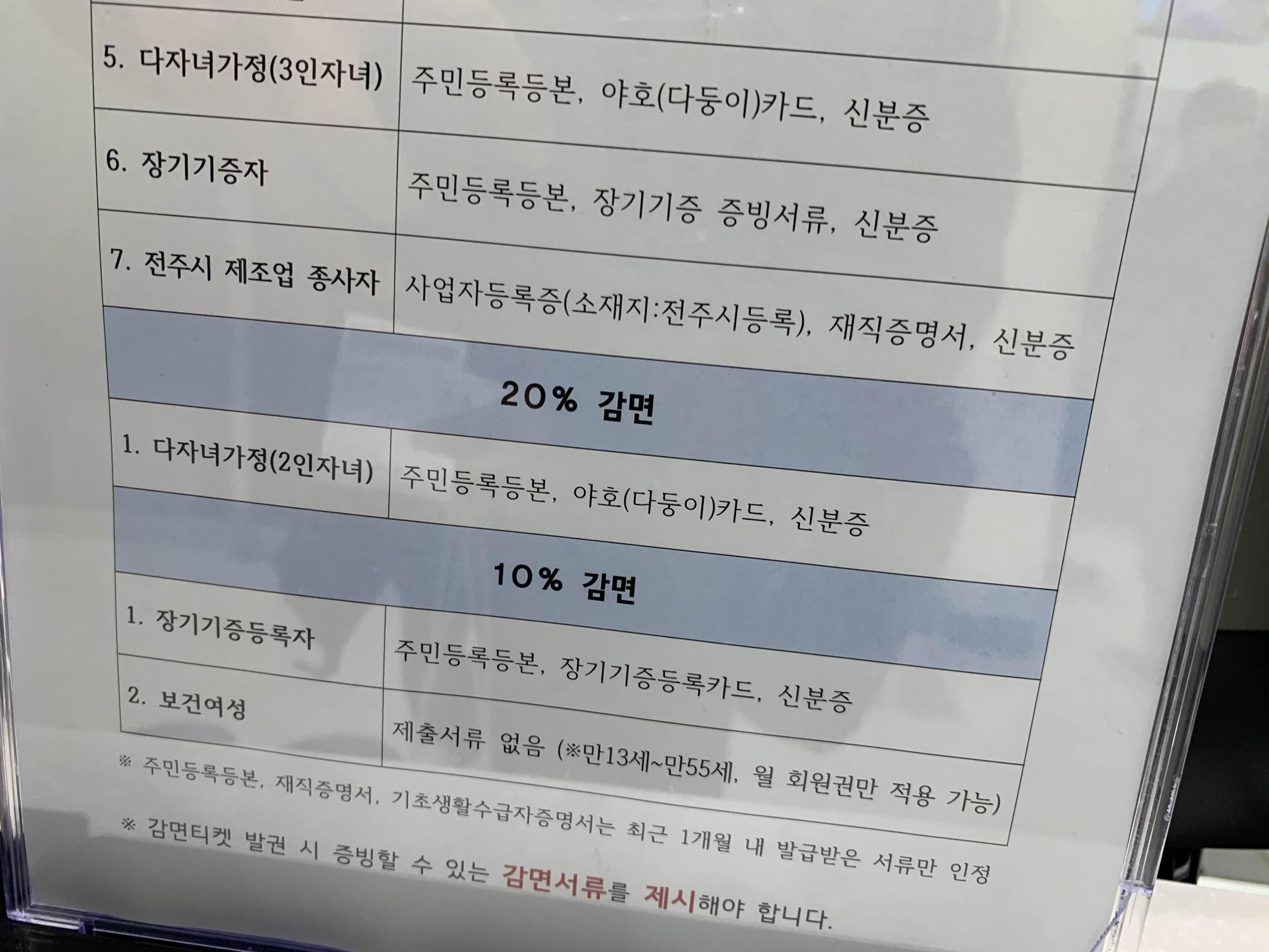 2명 이상의 자녀가 있다면... 다자녀가정으로 20% 할인을 받을 수 있다. 감면을 받으려면... 다둥이 카드를 발급받아야 한다. ㅎㅎ 할인받기가 쉽지가 않다.ㅎㅎ