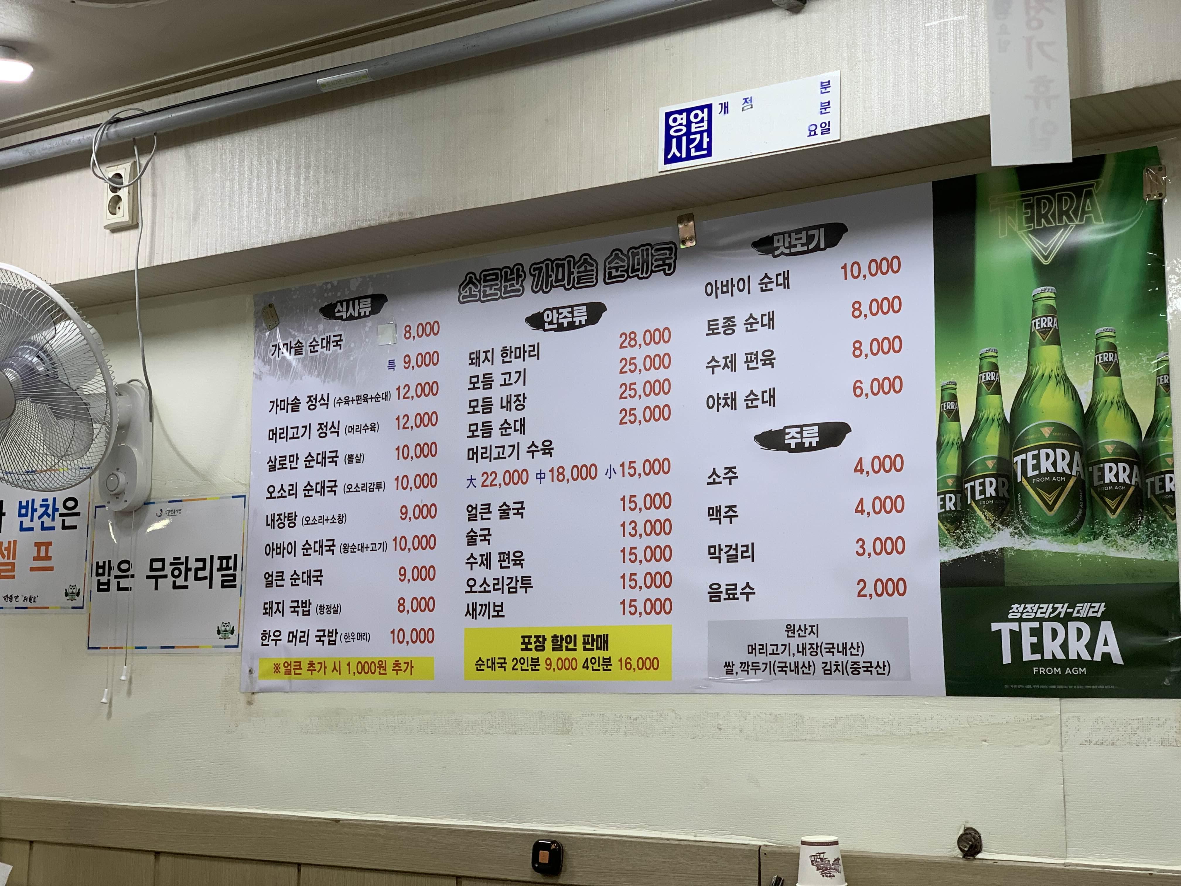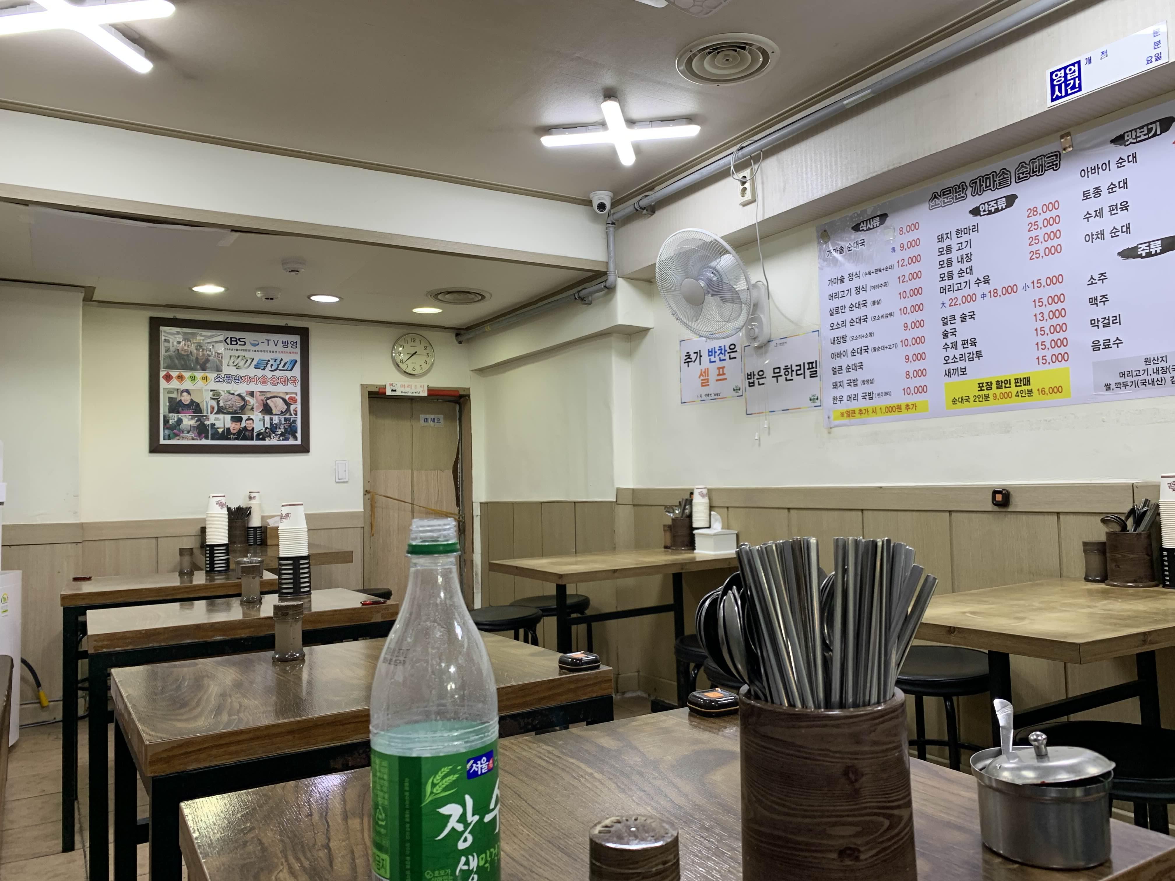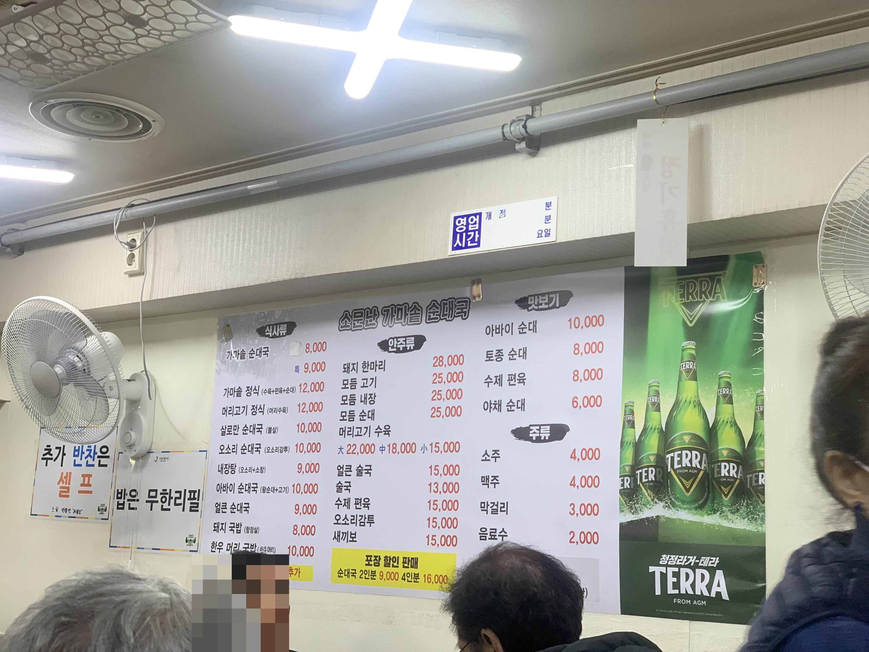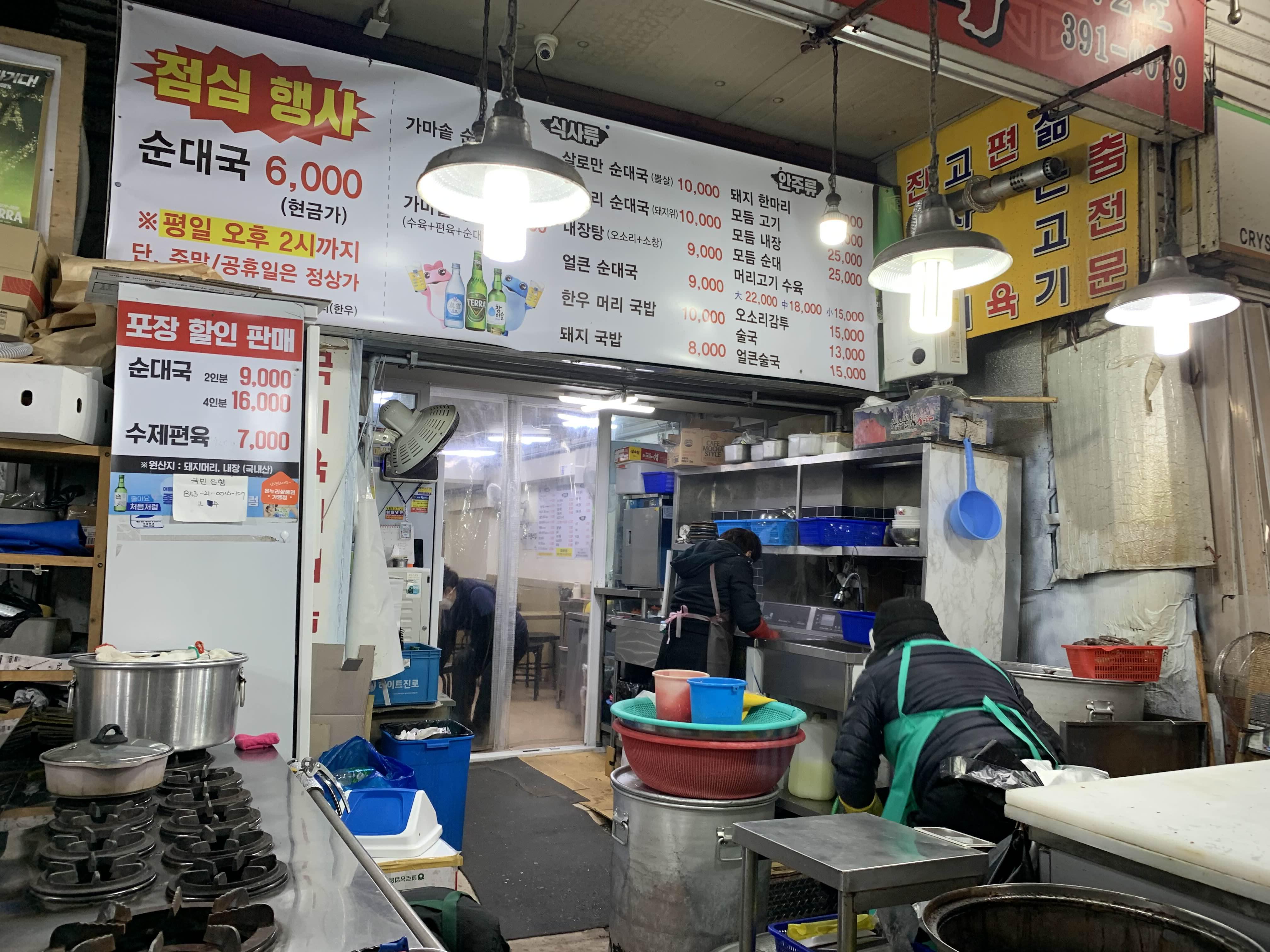 식당 입구에는 점심특선 오후 2시까지 순댓국 6천 원 할인한다는 안내문구가 눈에 들어오더군요. 이 시기에 가성비 값이라는 생각이 들더군요