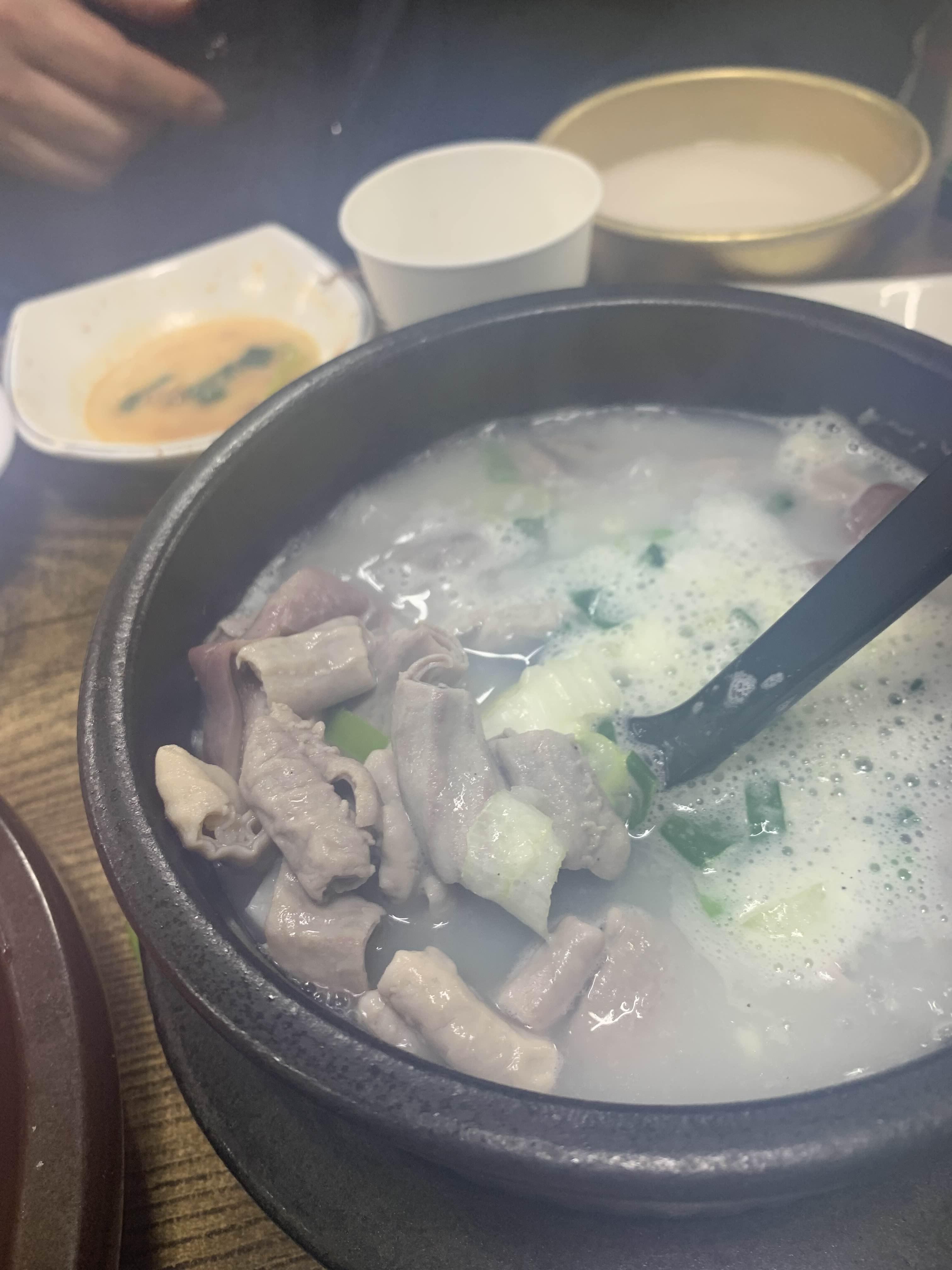 서비스로 나온 순댓국은..... 수육이 나온 순간 잊혔다. 수육이 다양한 부위로 나와서.... 다양한 식감을 즐기기 상당히 좋다. 더욱이 가격이.... 18,000원이라니... 순댓국까지 서비스로 나오는데^^