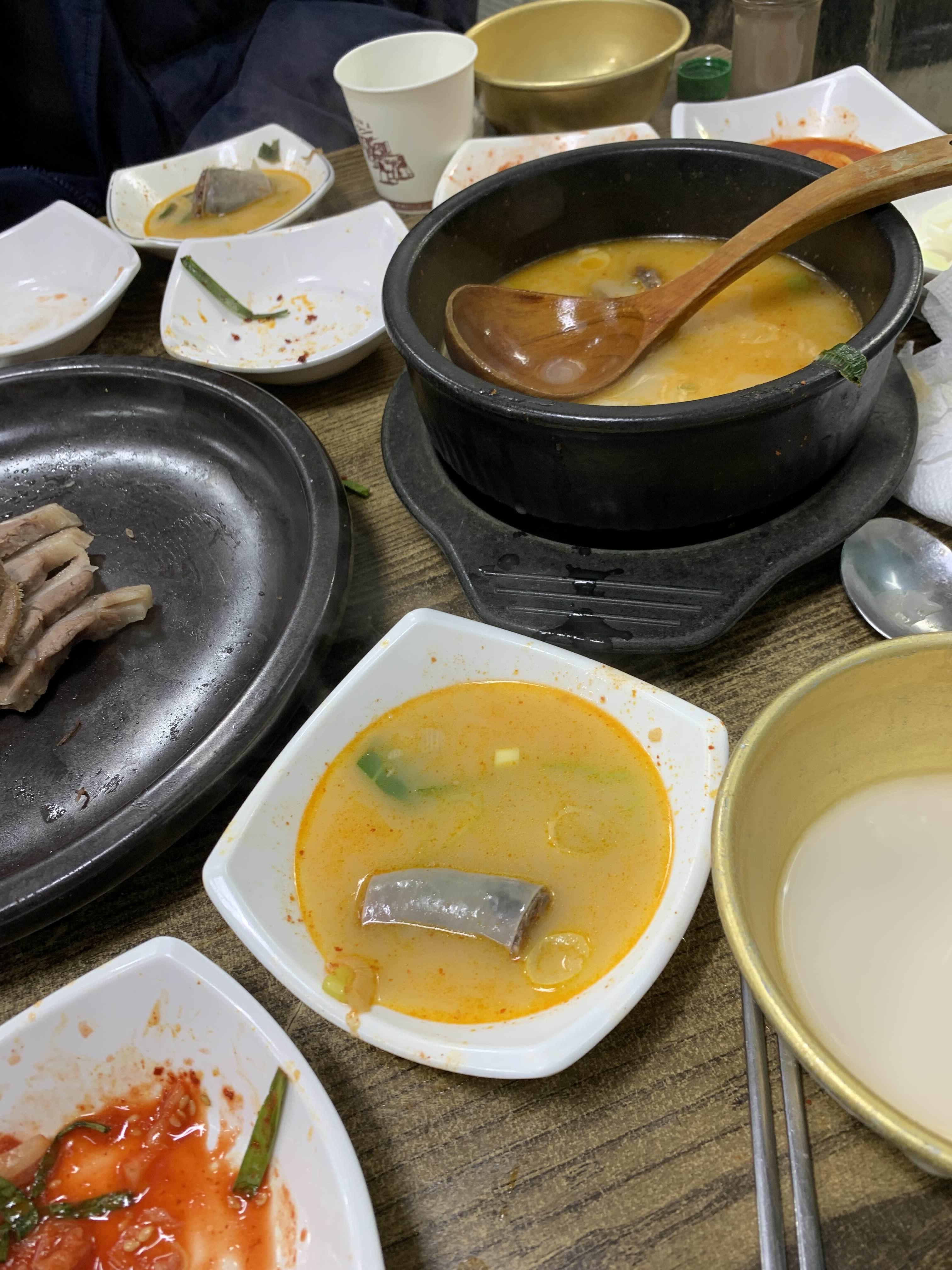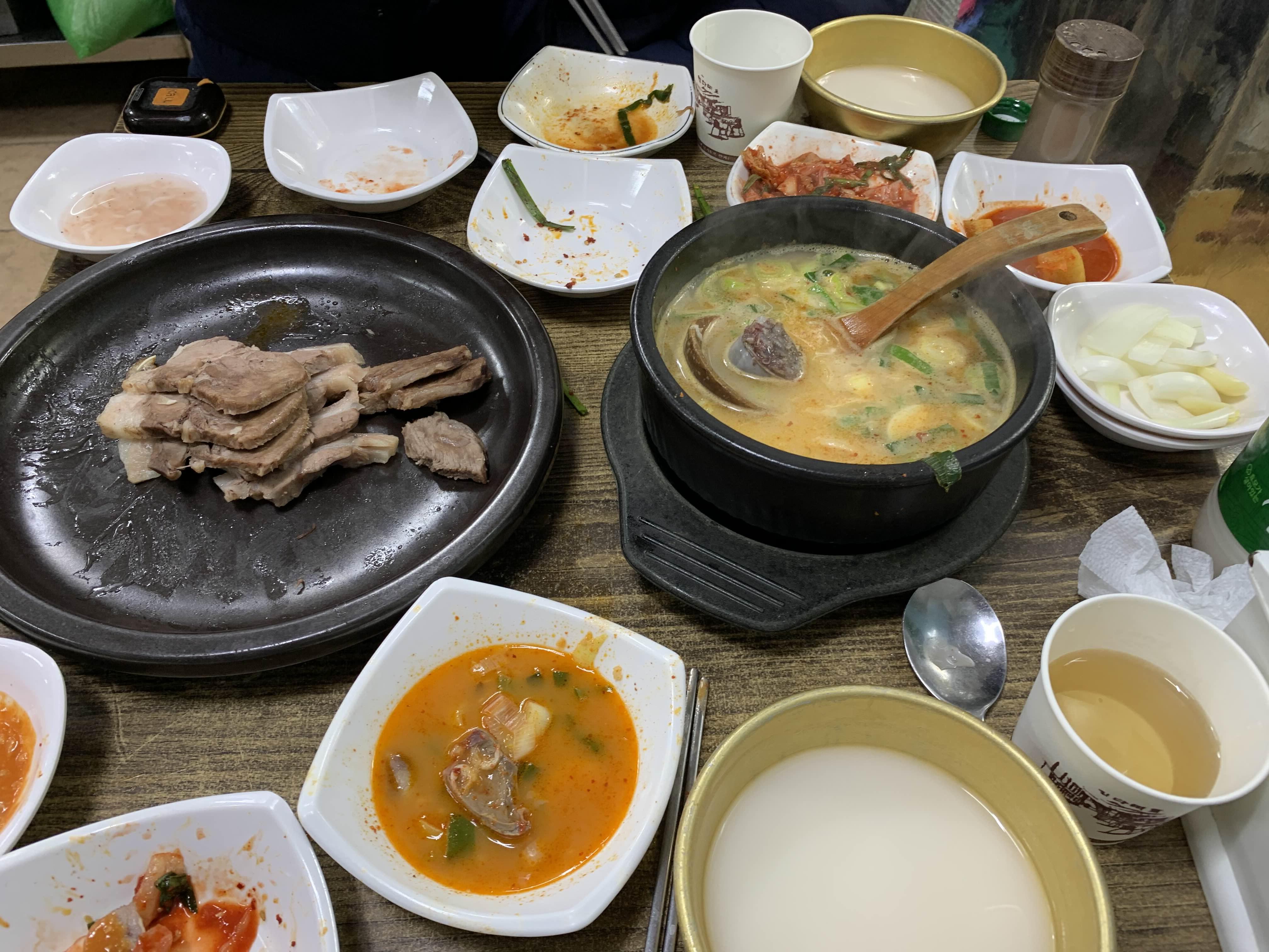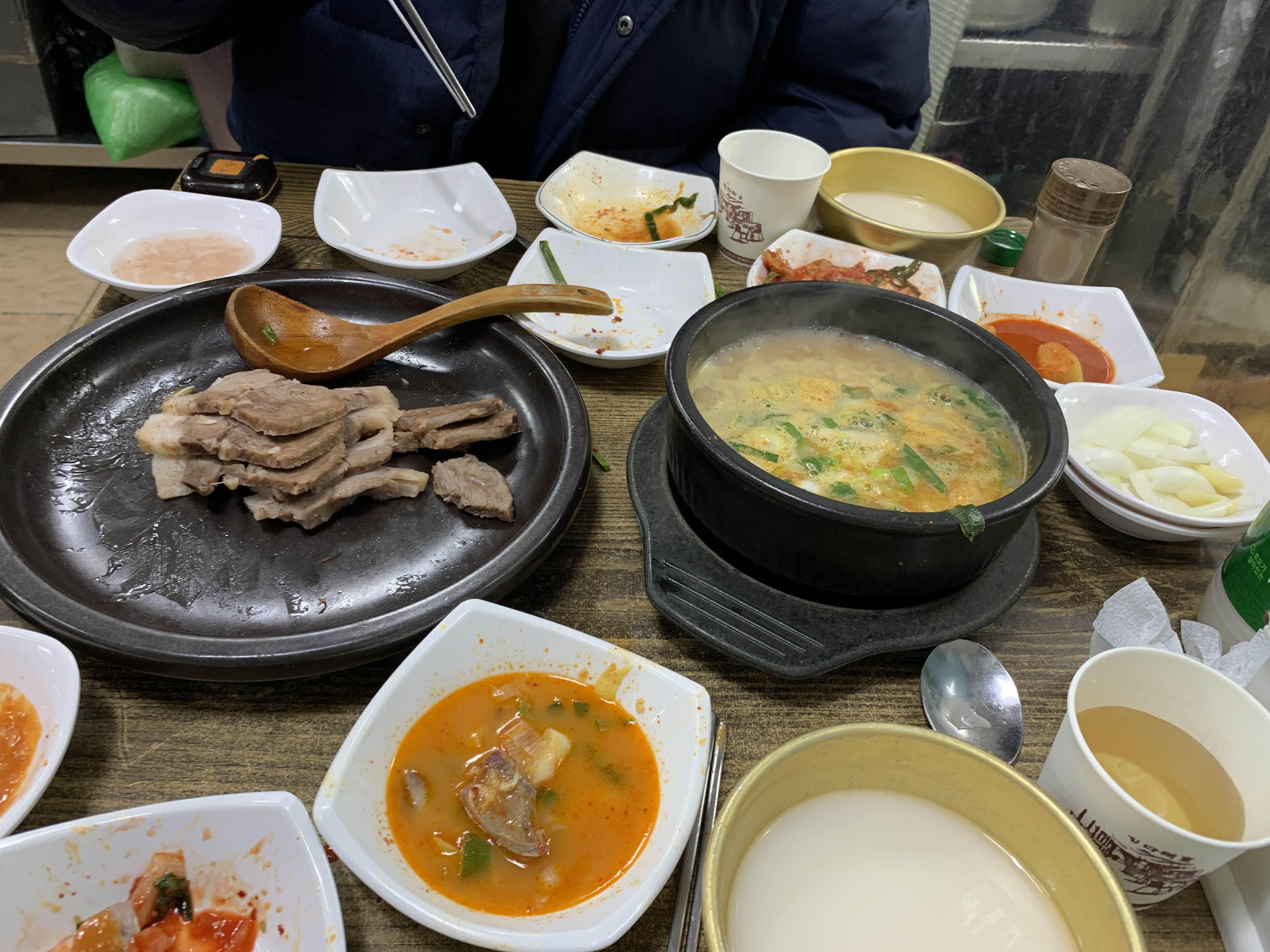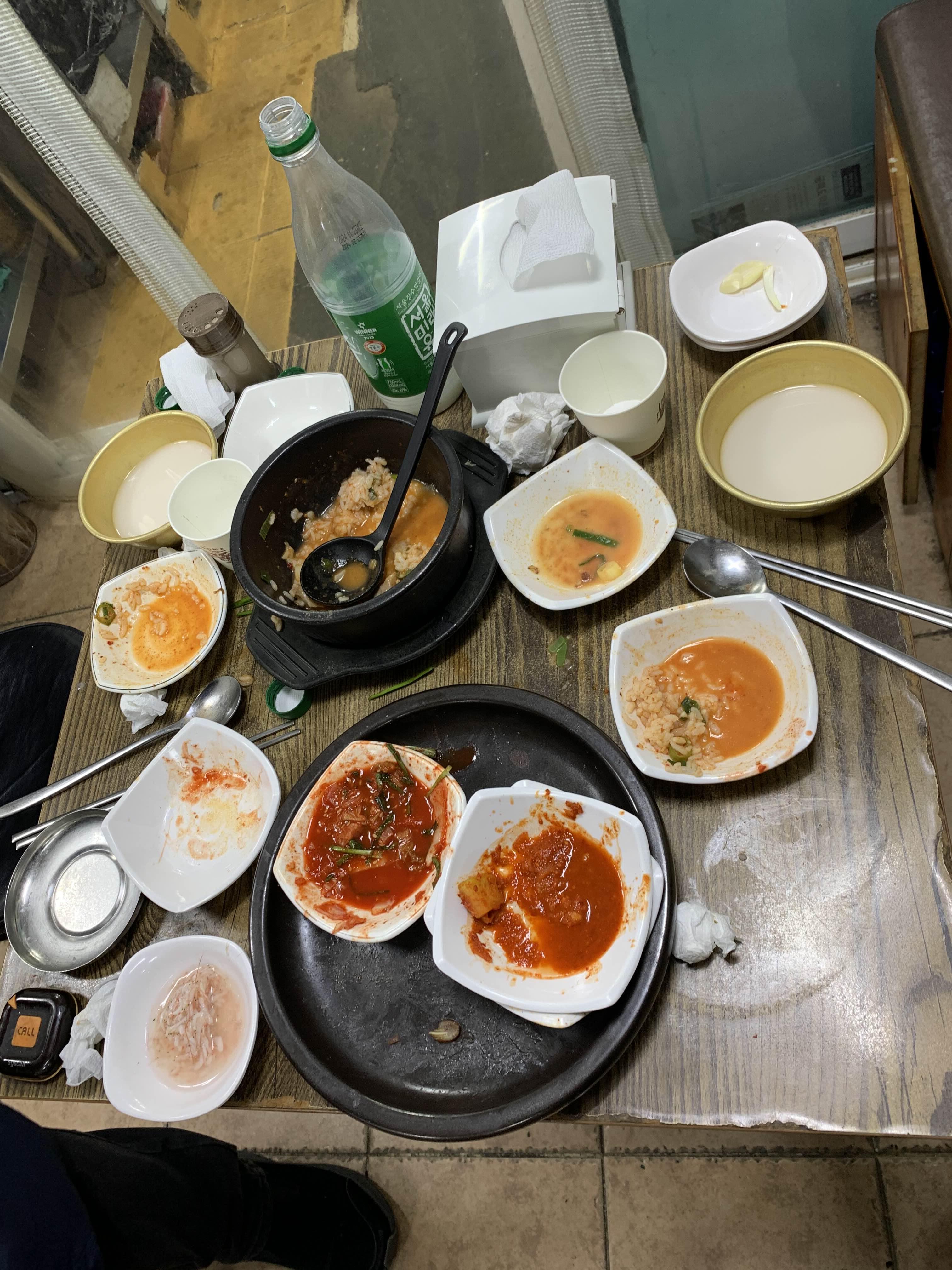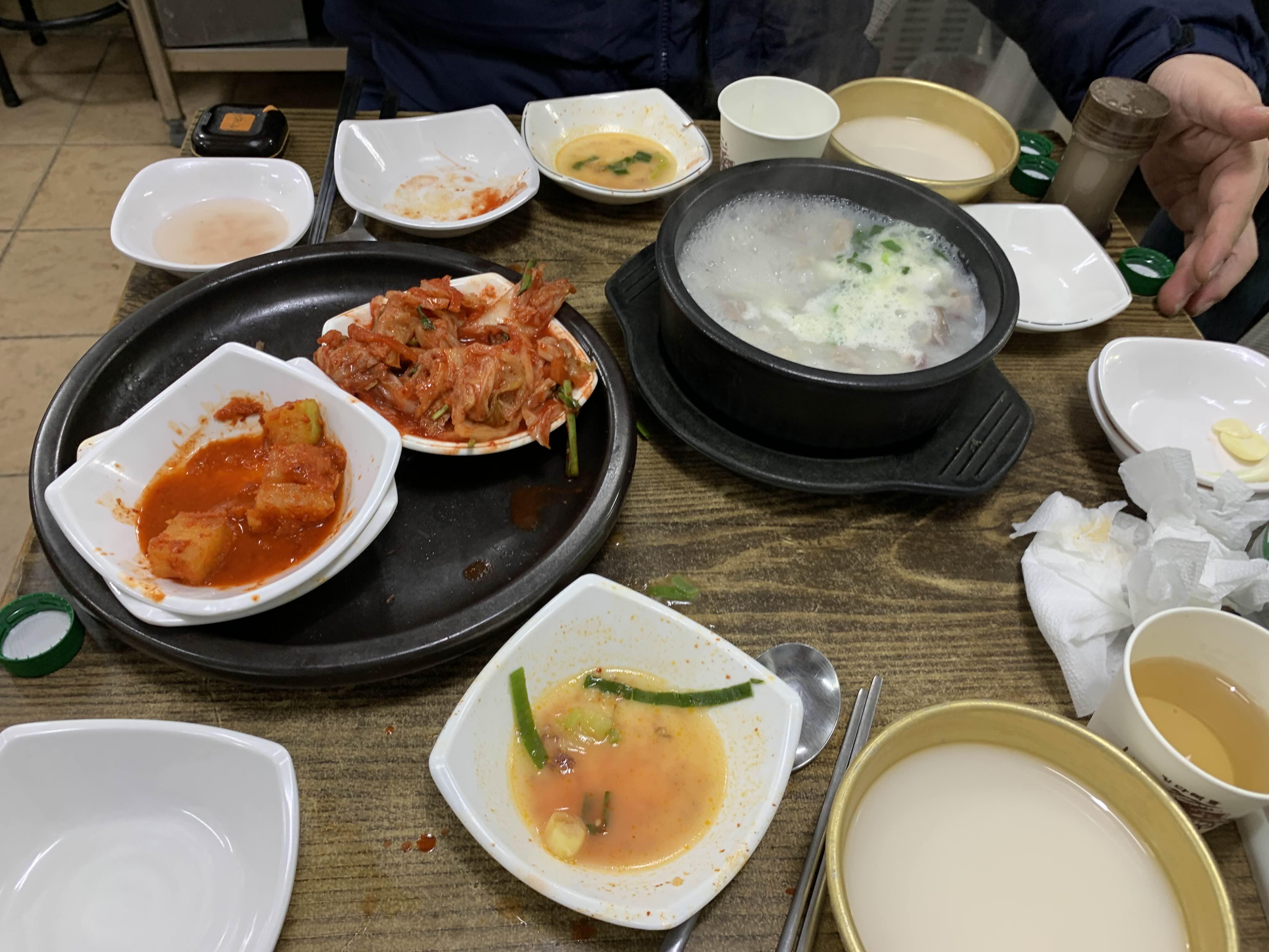 다른 테이블은 대부분 국밥에 소주.... 그리고... 무슨 정식인가 수육/편육/순대가 들어있는 음식을 드신다.