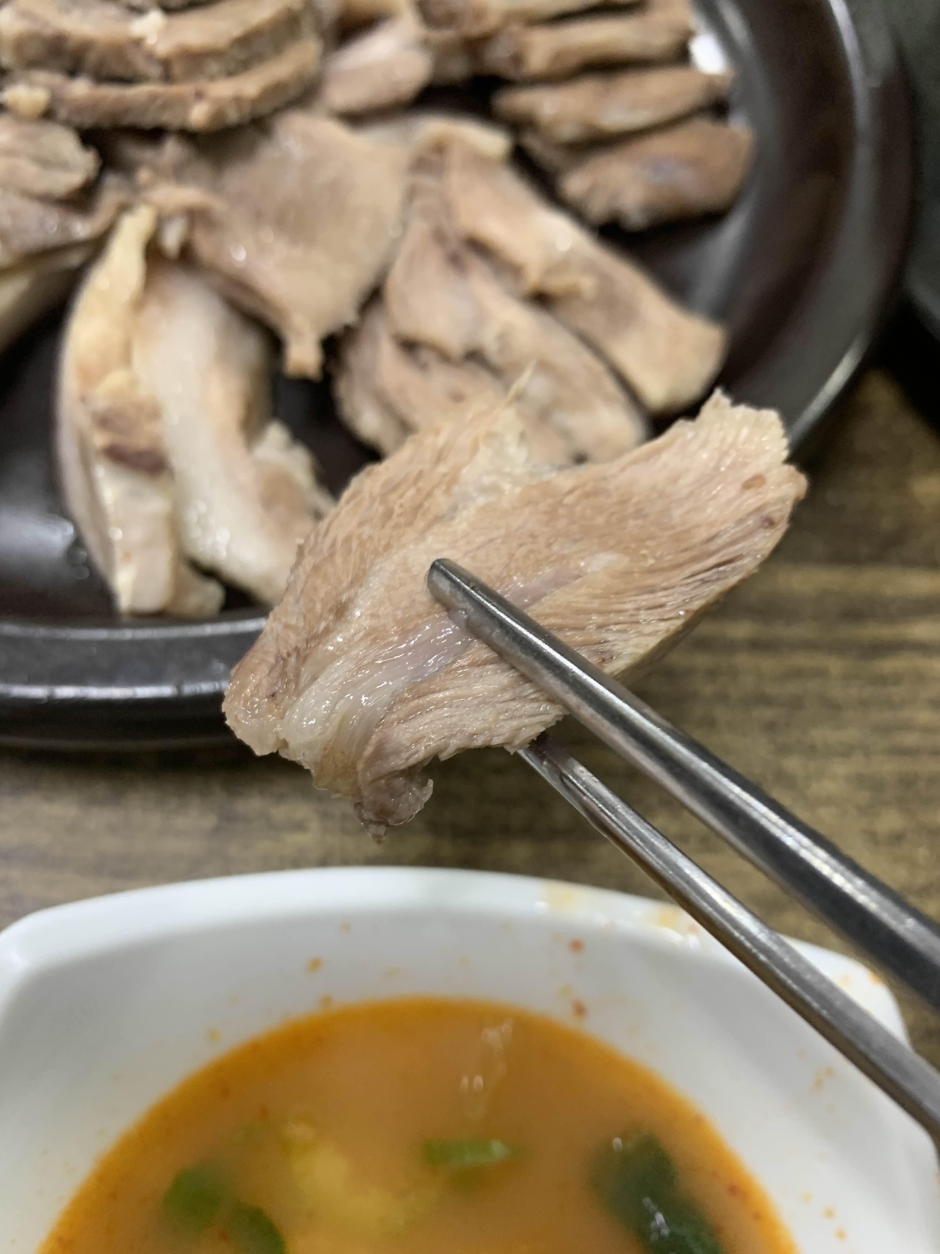 수육의 다양한 부위고 고기가 먹는 재미가 있다.