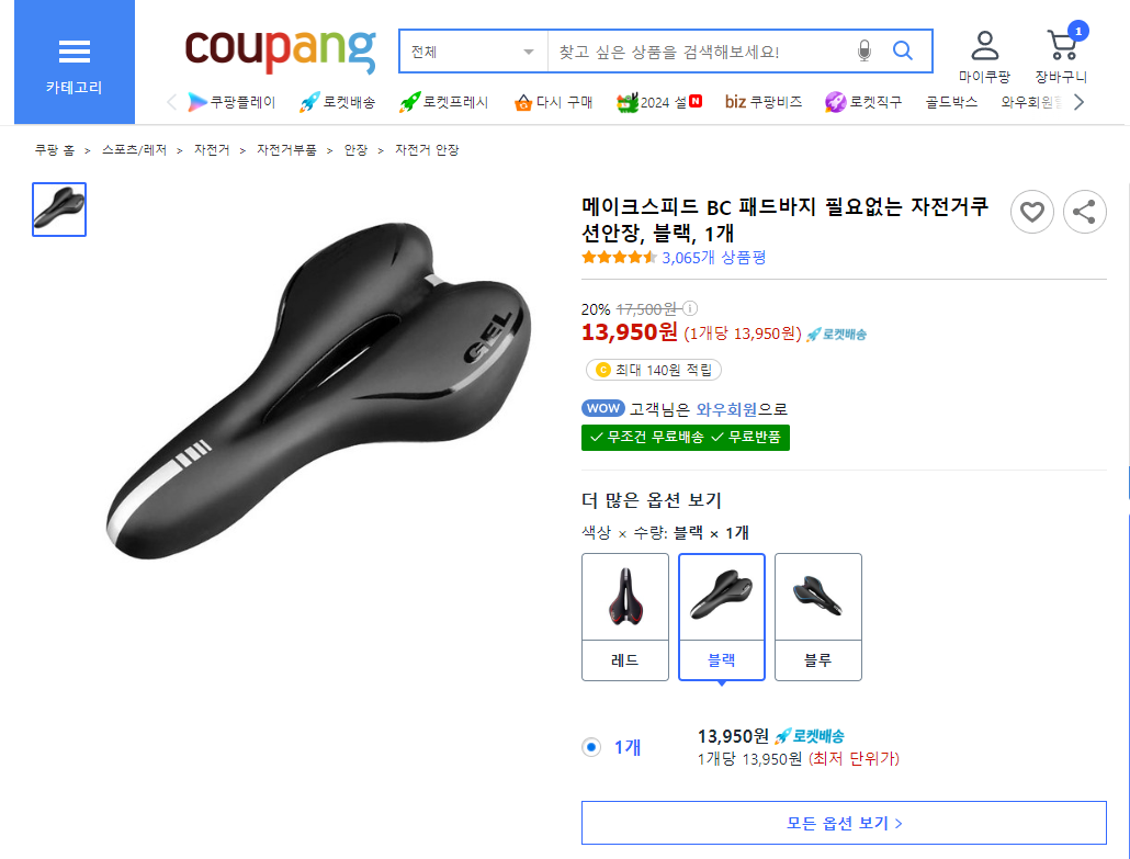 기존 자전거 안장이 한쪽의 뜯어져서.... 엉덩이가 상당히 불편함을 느껴서!! 쿠팡으로 하나 주문해 보았습니다. 너무 비싸지 않은 거로...ㅎㅎ