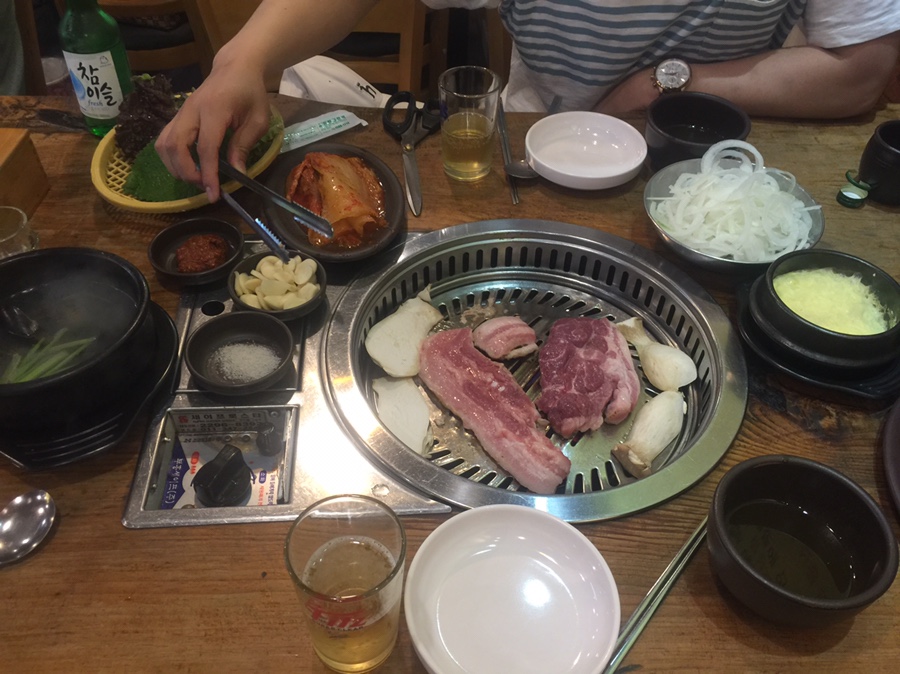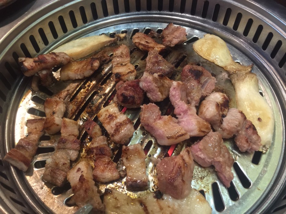 처음 방문하는 식당.... 주문하며 뭐가 맛있냐고 물어보니 생고기가 맛있다고 합니다. 칼국수라고 이야기하실 줄 알았는데요. 그래서 삼겹살 1인분, 목살 1인분을 주문했습니다. 주문한 고기가 나오고 불판을 달구어서 고기를 올려줍니다. 불판의 불 조절이 조금 어렵네요. 1단으로 불을 놓아도 한쪽이 너무 세서 한쪽만 고기가 타버리고... 다른 쪽은 고기가 안 익네요. 돌려가며 고기를 구워주었네요. 불판도 불판이지만.... 불판 아래 숯? 연탄 모양의 탄이 그렇게 좋지는 않아 보입니다. 불을 골고루 나누어 주어야 하는데요. 한쪽만 집중에서 불이 나오네요.