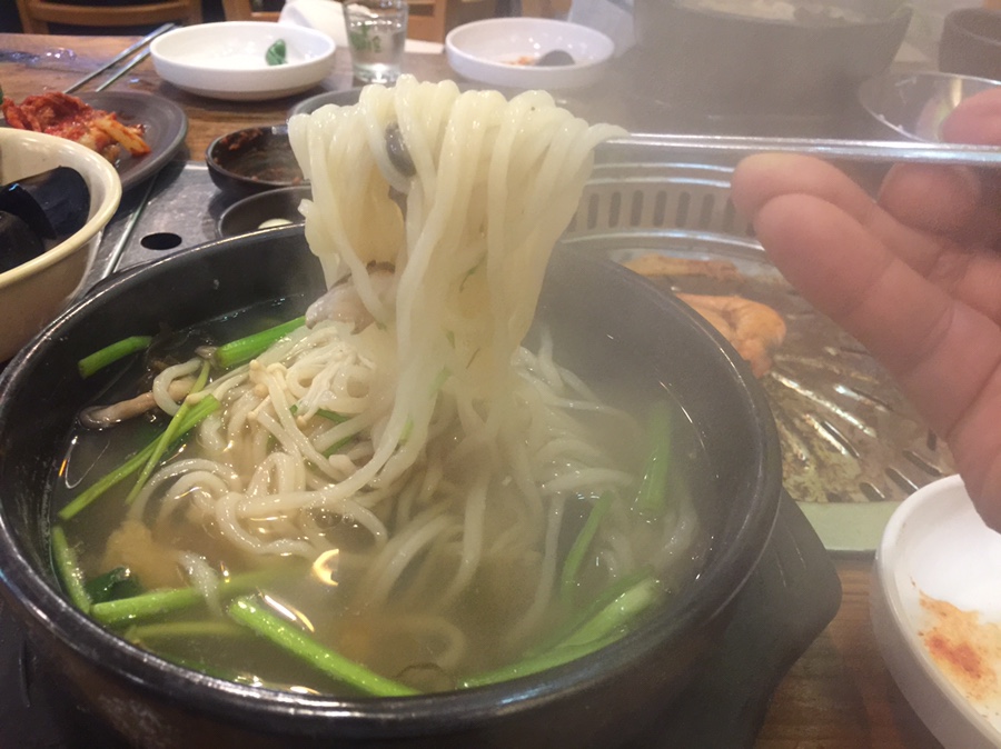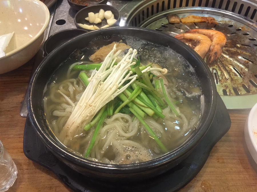 여기 주메뉴인 황태 칼국수를 주문해 보았습니다. 칼국수만 먹으려고 했으나..... 저녁에 소주 한 잔을 먹어야 했기에 고기를 구웠는데... 고기는 뭐 그냥 보통~ 양념 파체? 가 좀 있었으면 더 맛있게 먹었을 거 같음. 황태 칼국수는 맛있겠지 생각하고 기대 듬뿍하였으나.... 황태 칼국수 위 미나라.. 좀 비릿한 맛이 느껴짐... 그리고 칼국수에 들어있는 홍합.... 좀 많은 국물의 칼국수와는 안 어울림... 홍합은 얼근한 국물과 어울리는데... 칼국수 국물이 좀 비릿한 맛이 홍합에서 나는 거 같았네요. 생각보다 맛이 좀.... 아니었습니다.