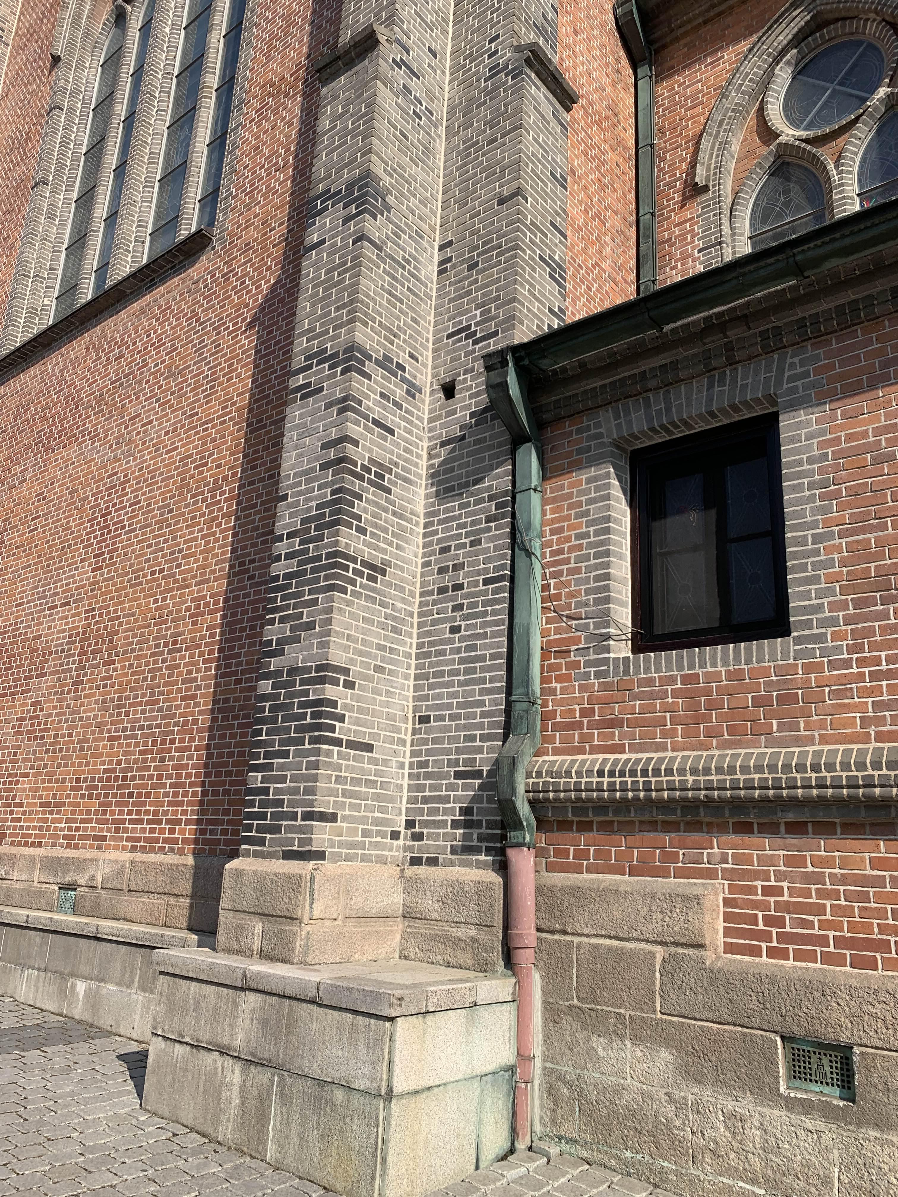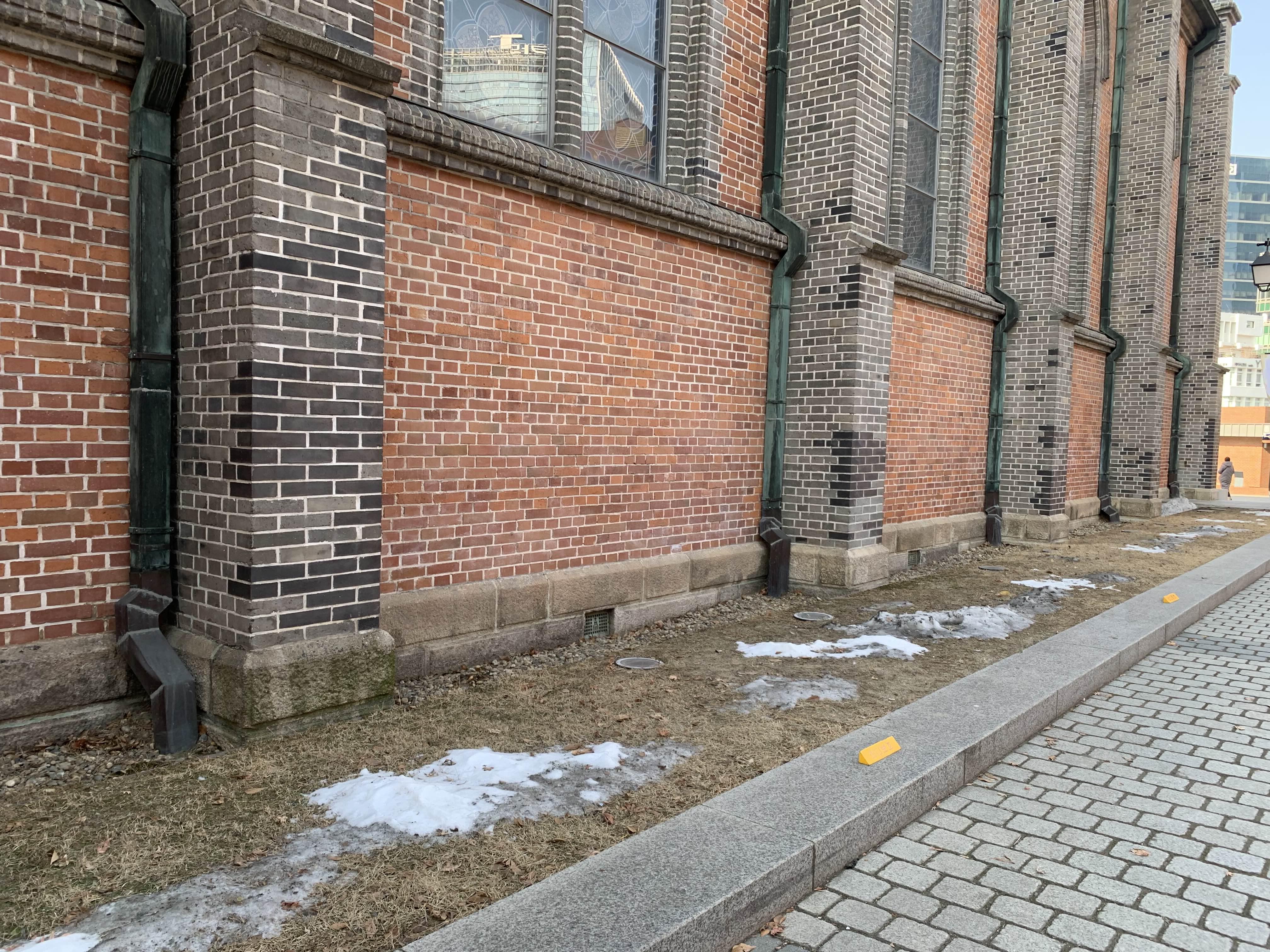 조적의 색상이 다른데... 기존 기둥부는 기존 그대로 두고... 중앙 벽면만 조적을 보수한 듯 보인다.
