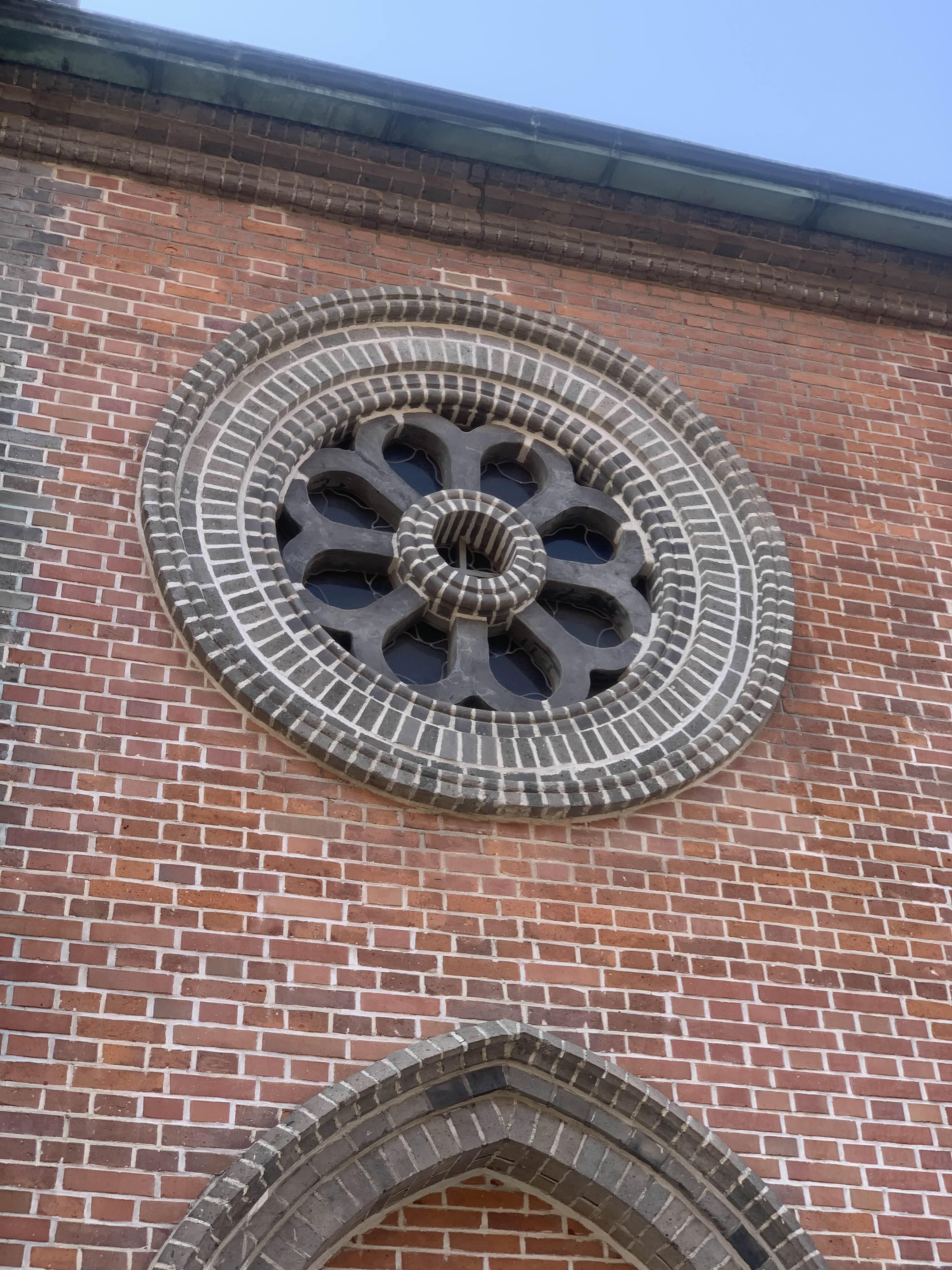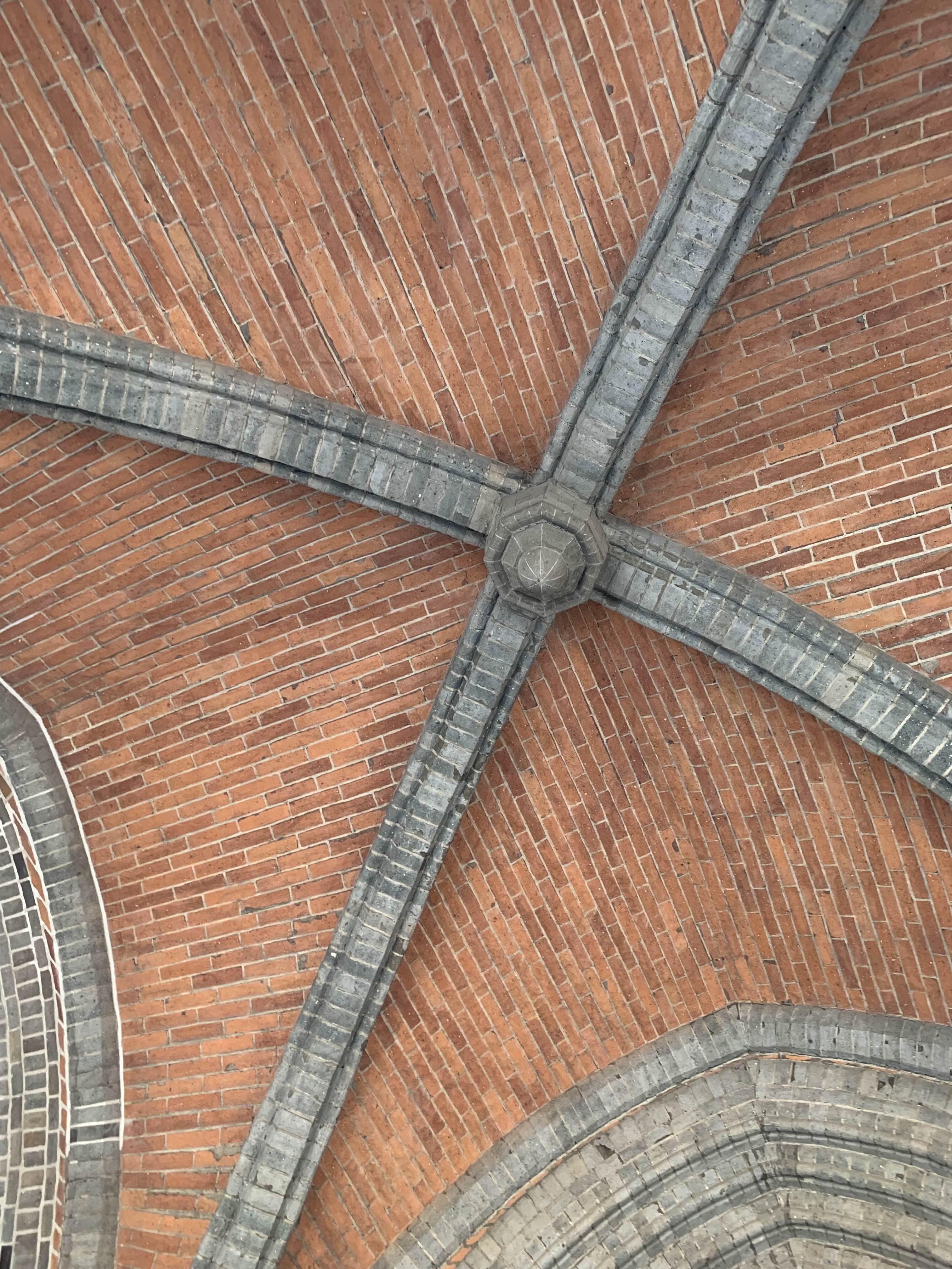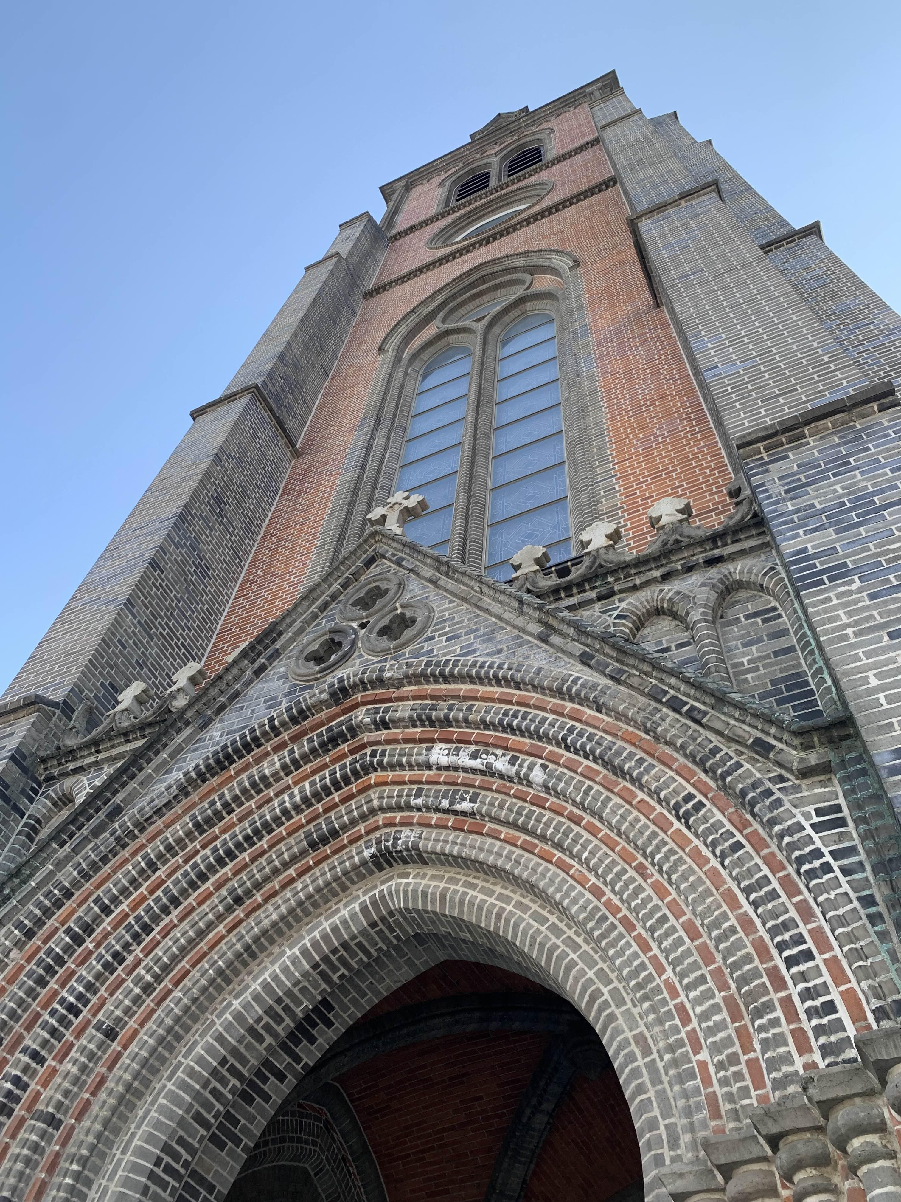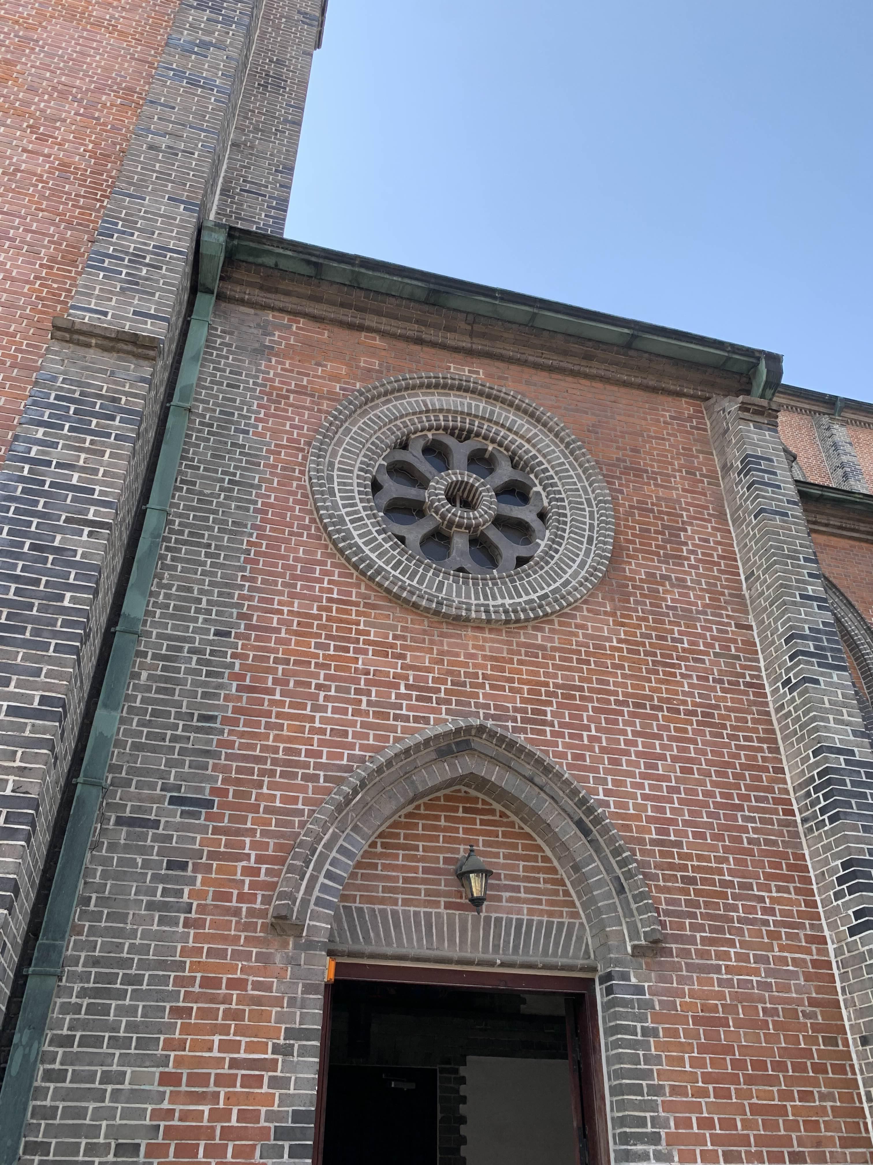 조적식으로 구축된 성당 한 기둥을 외부로 노출하여 건축물 외간의 튼튼함을 유지하며... 내부는 상대적으로 넓은 공간을 활용할 수 있도록 기둥배치를 외부에 두었다.