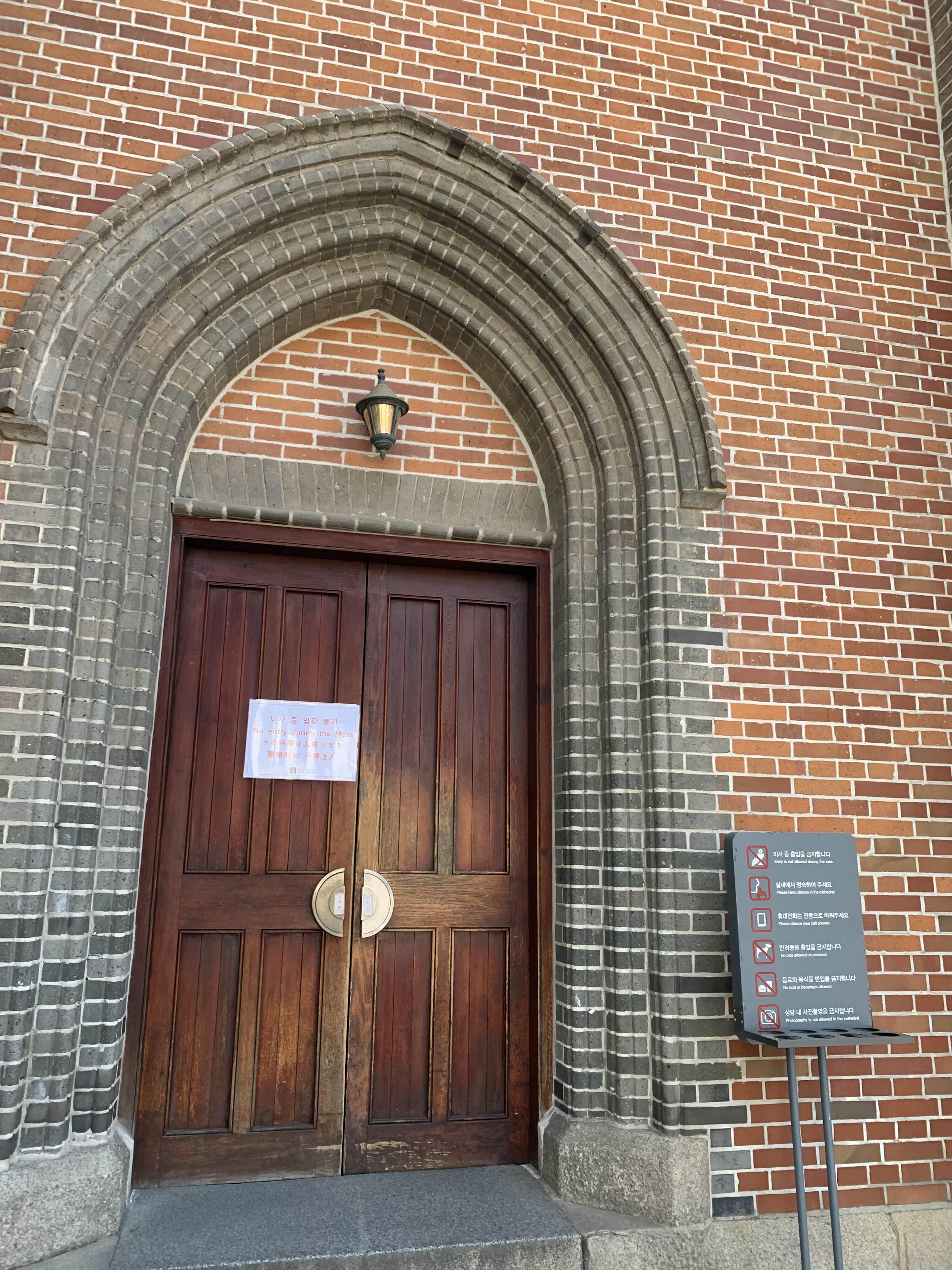중앙 출입문은 굳건하게 막혀있다. 죄우측의 출입문을 이용하여 입장이 가능하다. 기도나 드릴까 하고 문을 열어보니... 미사 중이다.