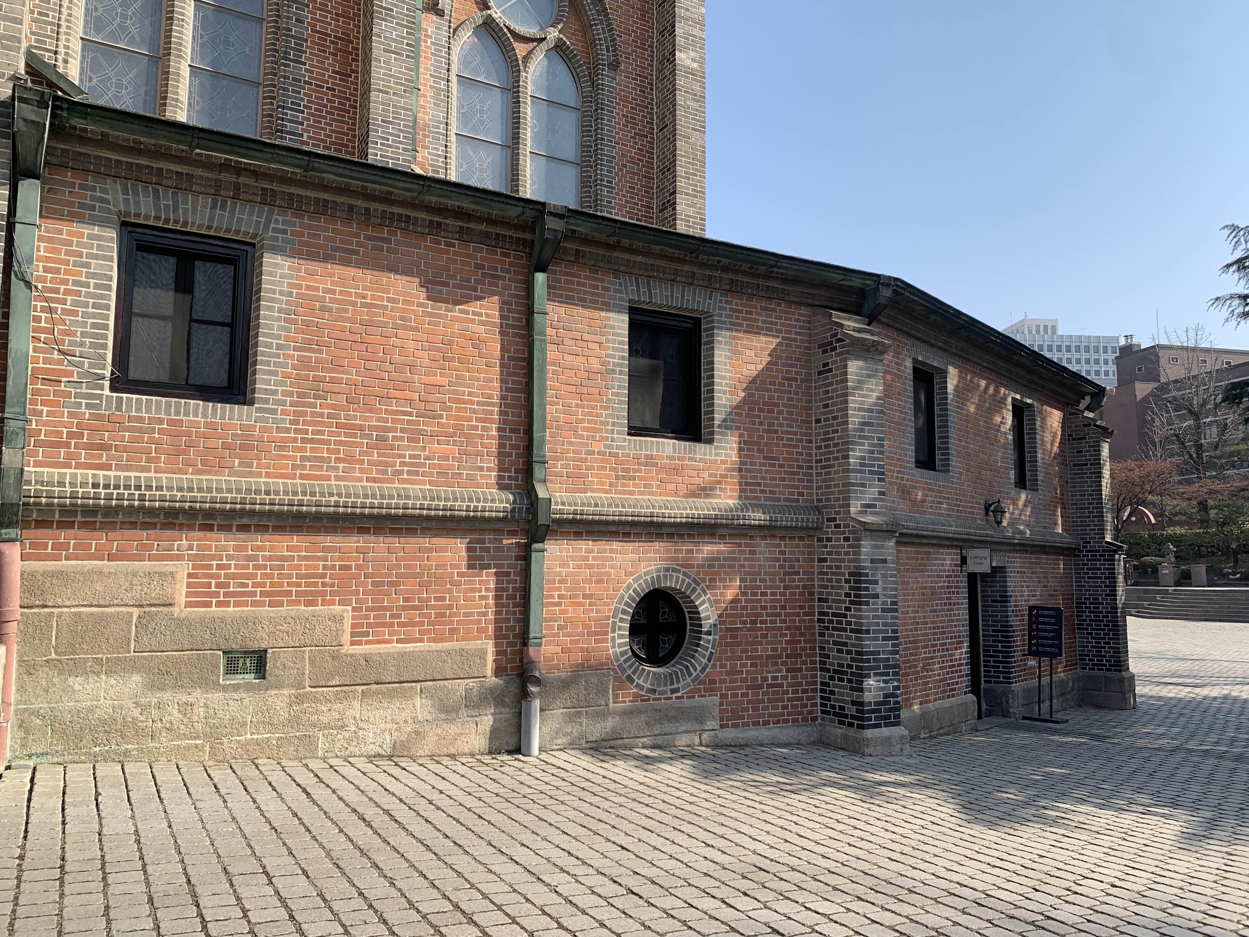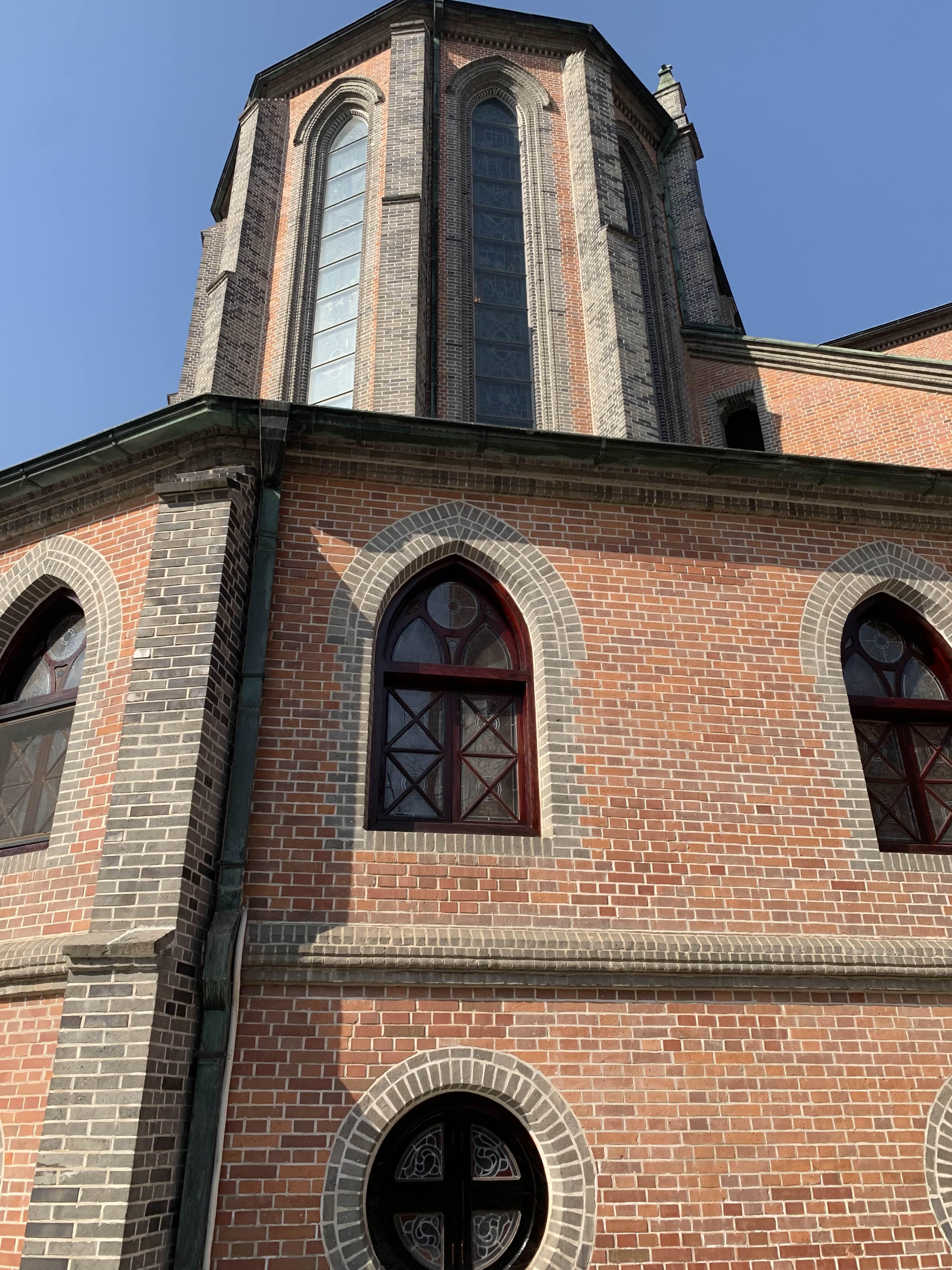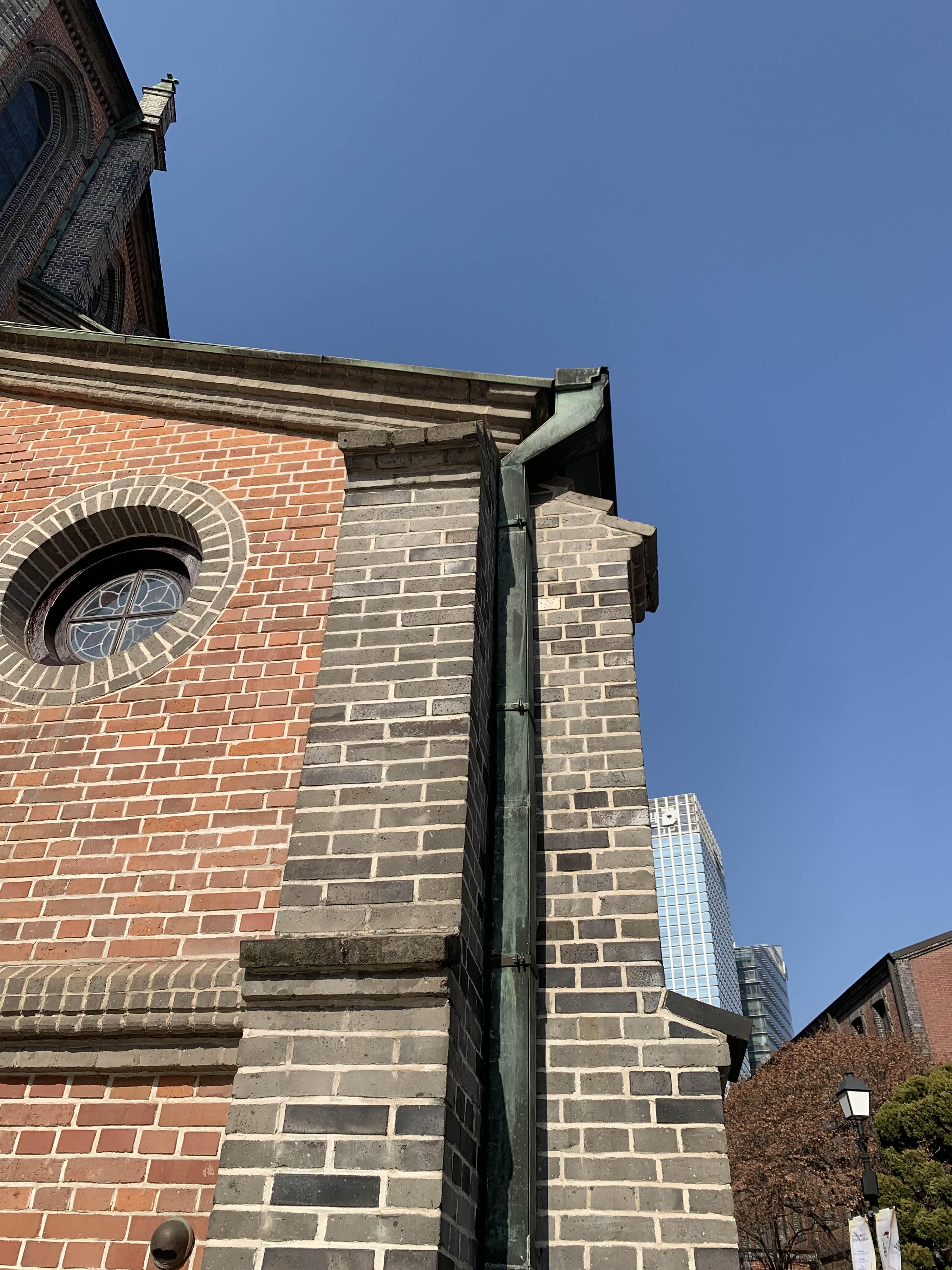 명동성당의 측면! 측면에서 눈에 들어오는 구조물은 기둥! 기둥은 벽체의 중심 쪽에 위치한다. 현대식 건물에서는 기둥을 내측에 두어.. 기둥이 외측면에 보이지 않는 구조를 많이 이용하는데,