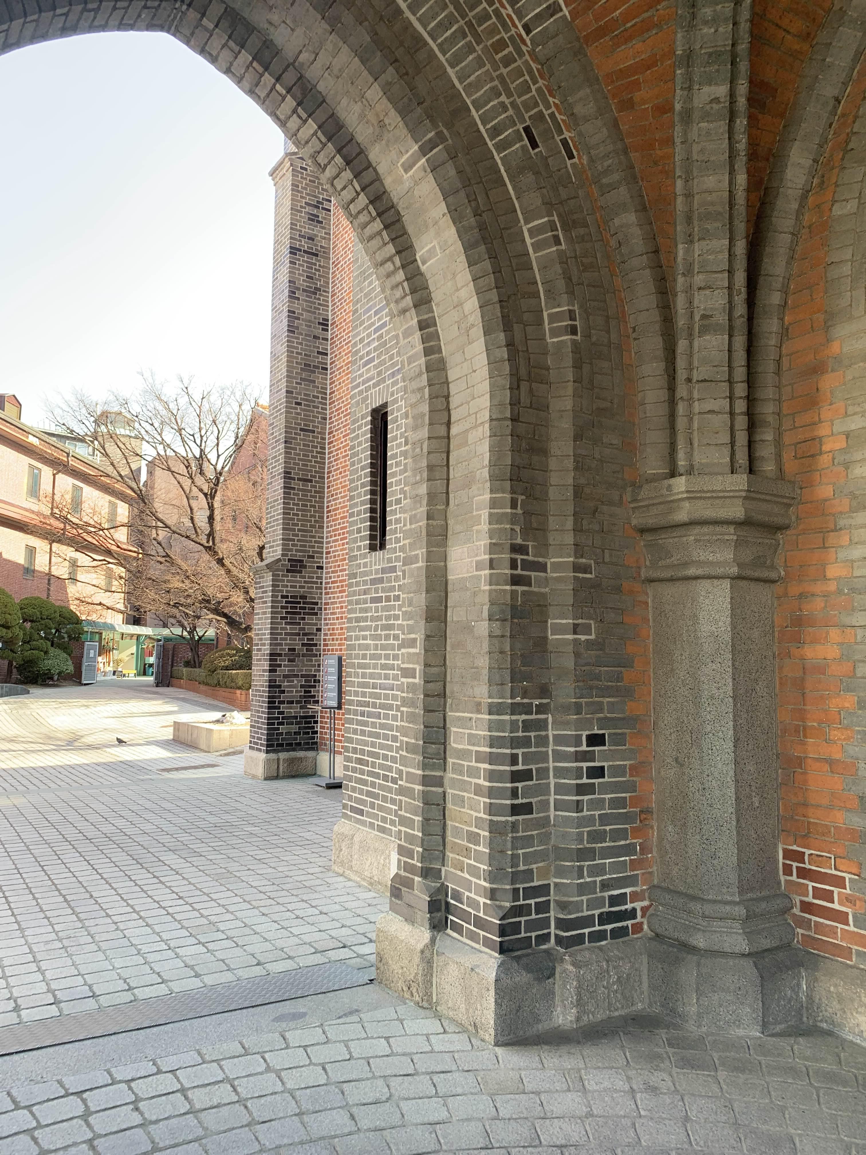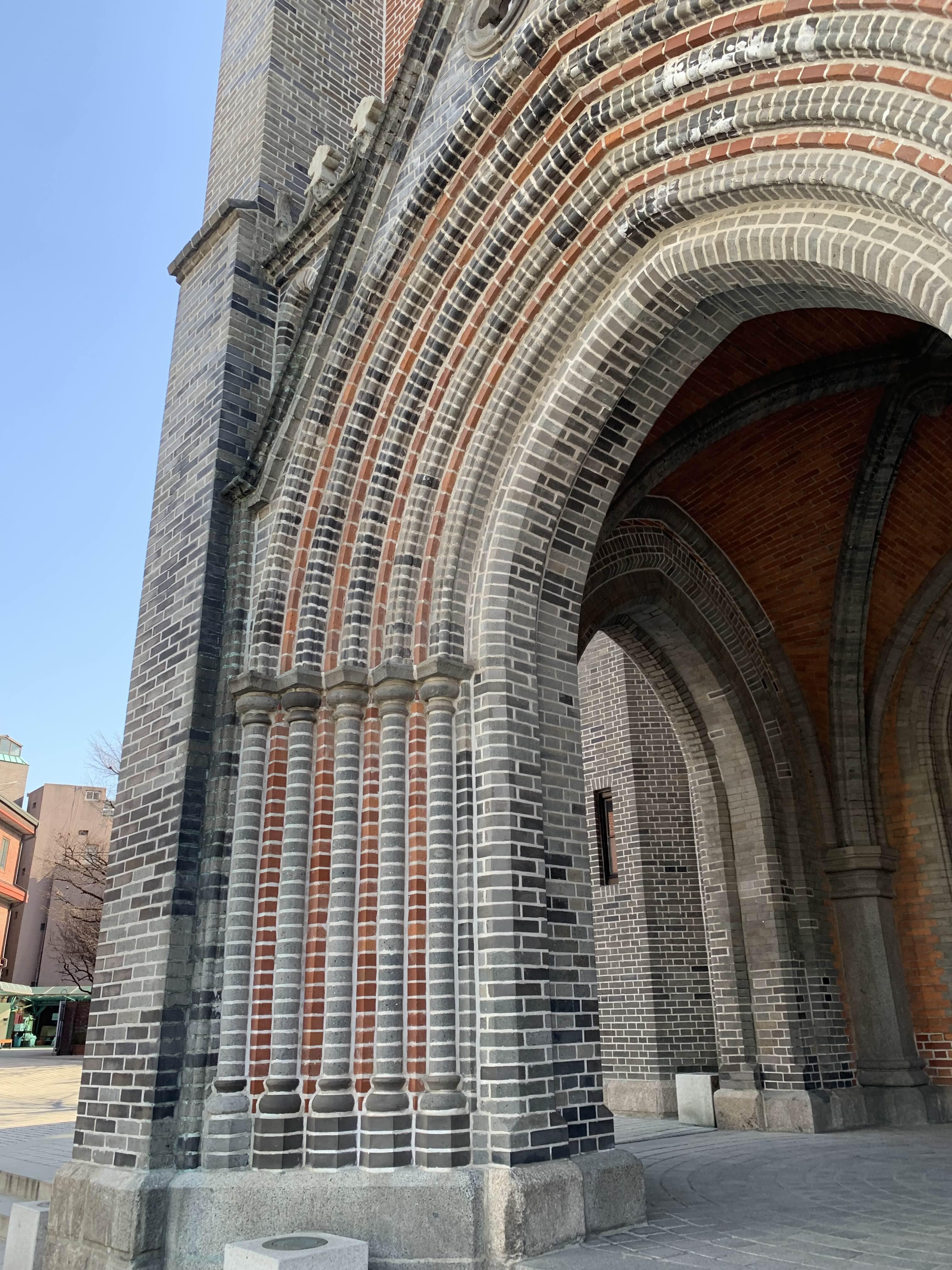 명동성당의 주출입구는 아치! 조적식 아치형으로.... 예전에는 조적에 기능공들이 많이 있어서.. 이런 아치를 쌓을 수 있는 기술자가 많이 있었지만... 지금은? 기술자들이 많이 줄어서.... 이런 아치를 쌓을 수 있는 사람들이 몇이나 될지...