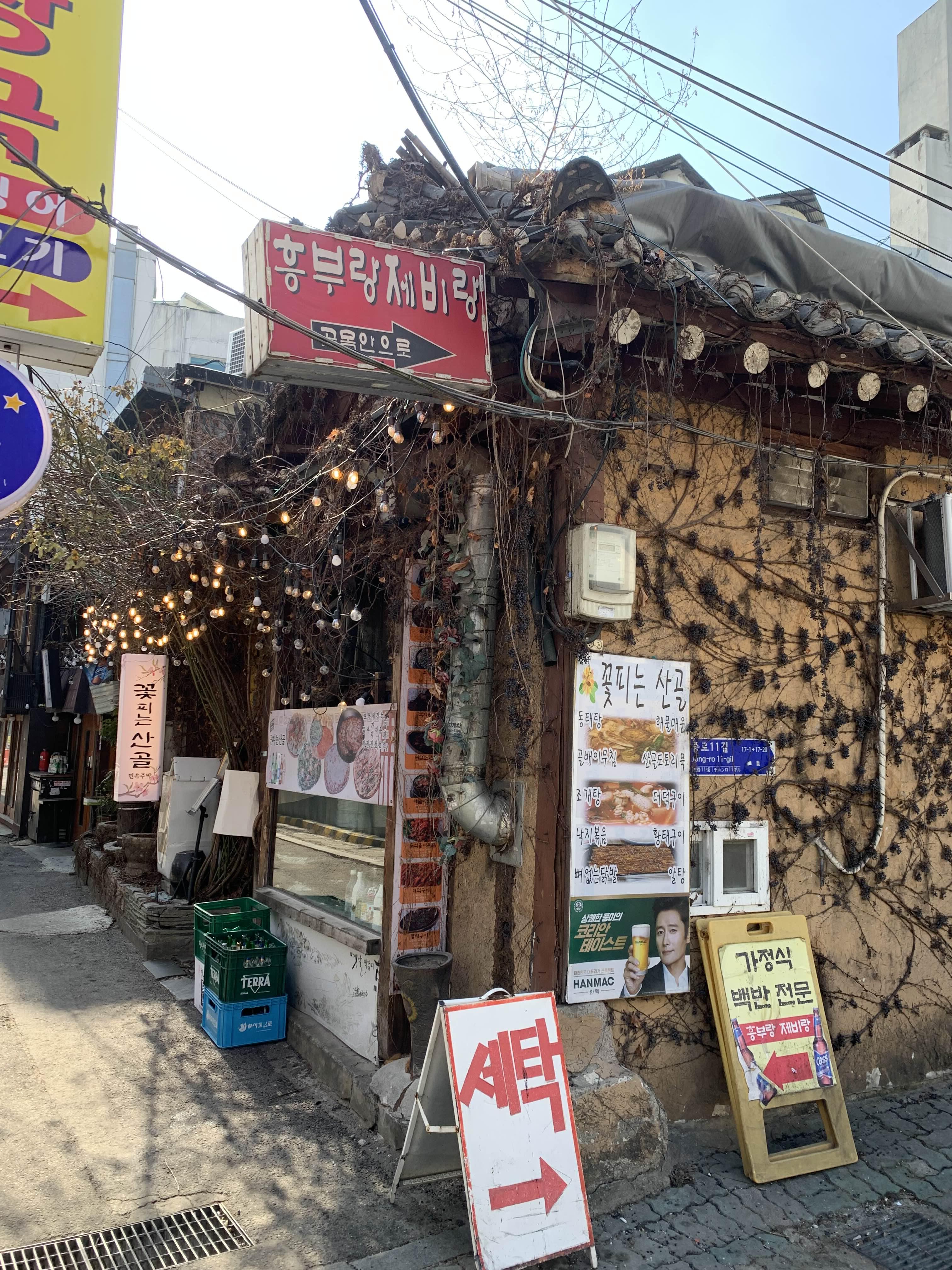명동성당을 구경하고.... 인사동으로 이동하는 길목! 청계천과 막걸리가 생각나는 식당과 간식 라면집에 눈에 들어온다.