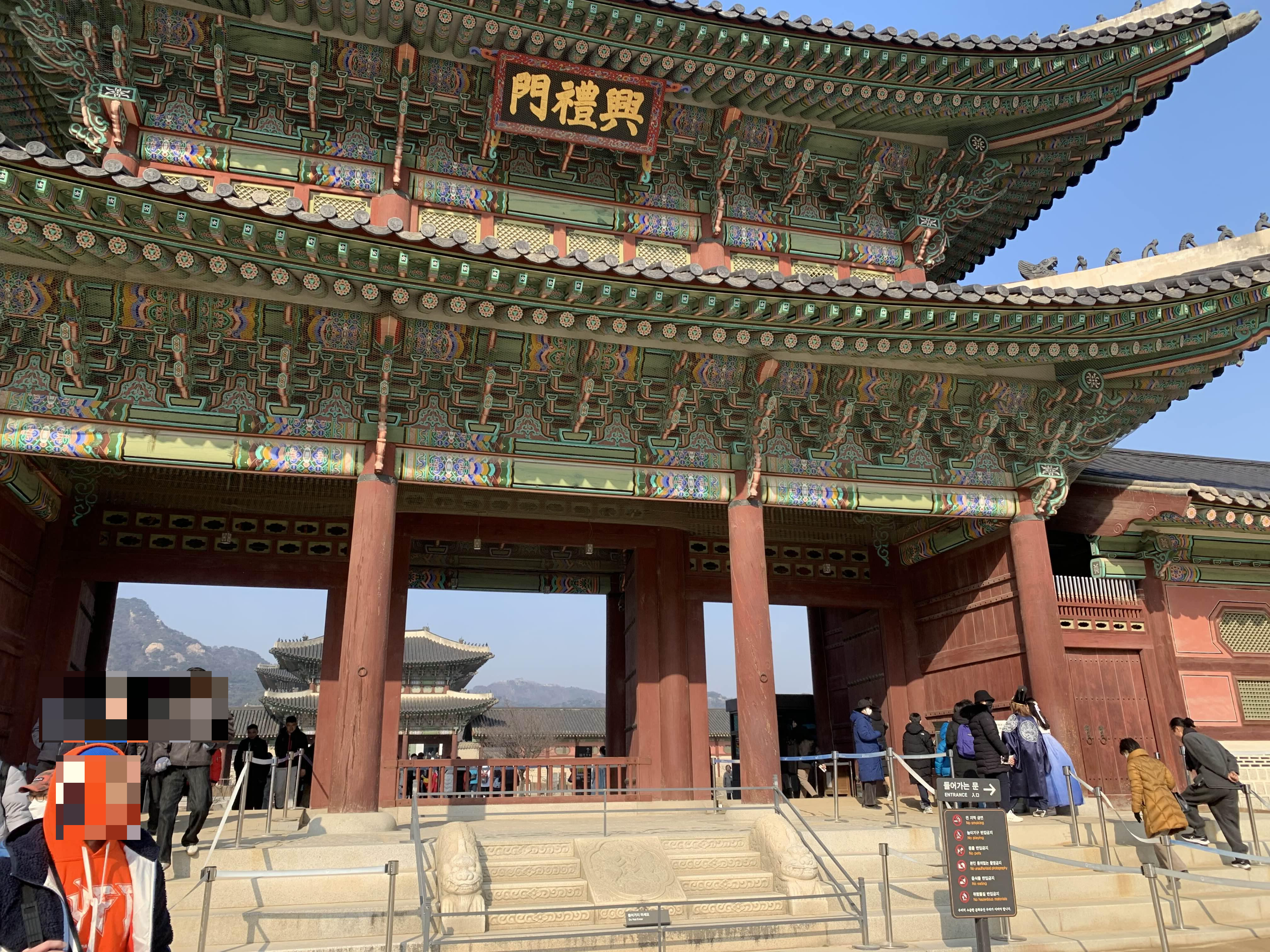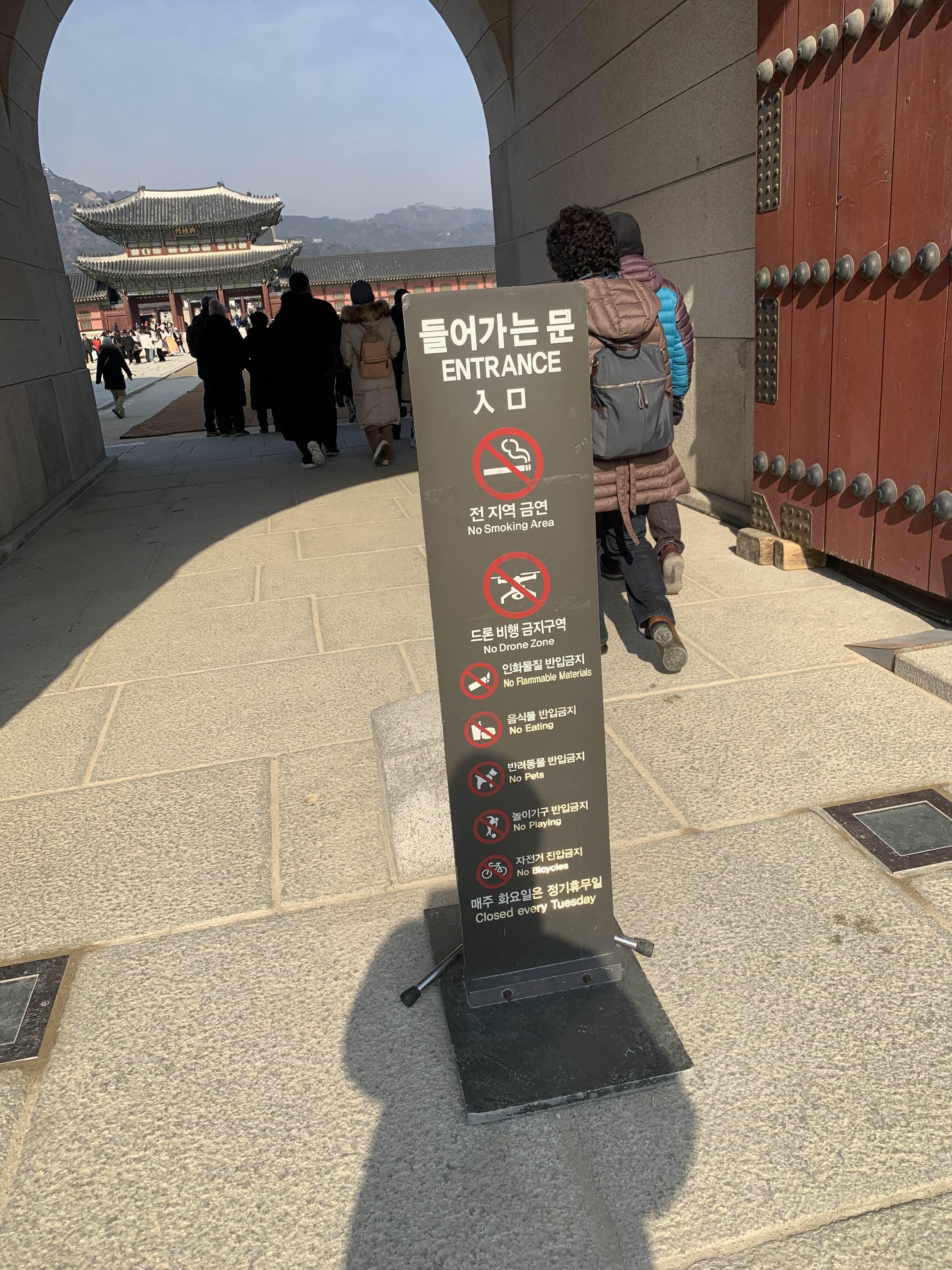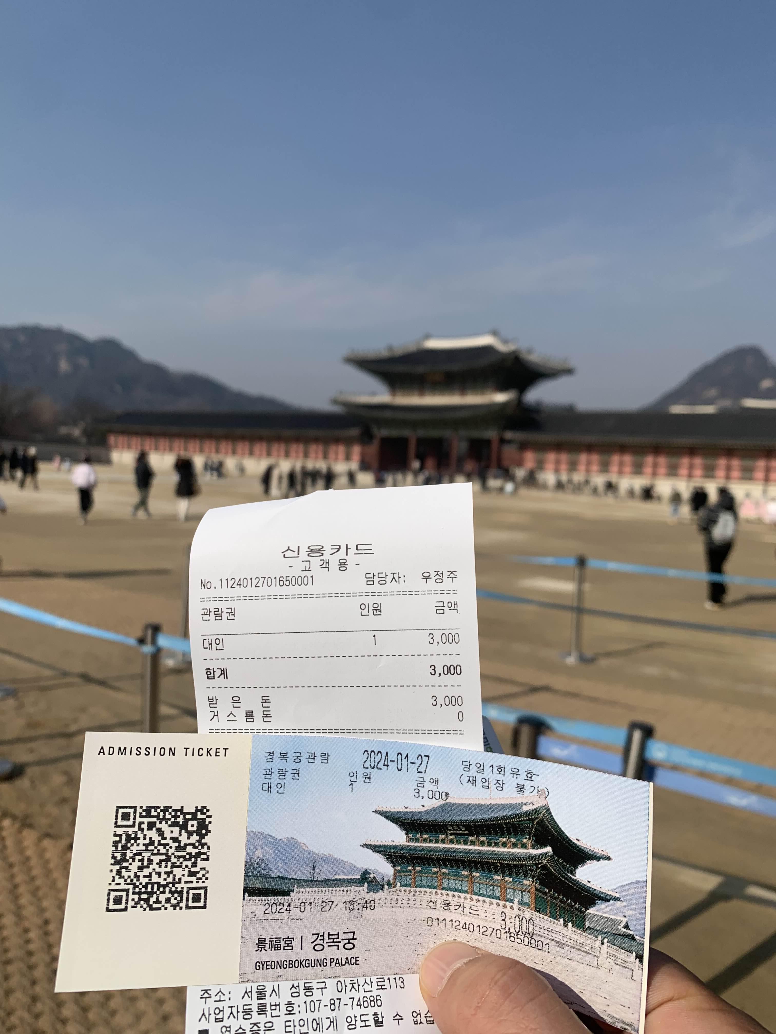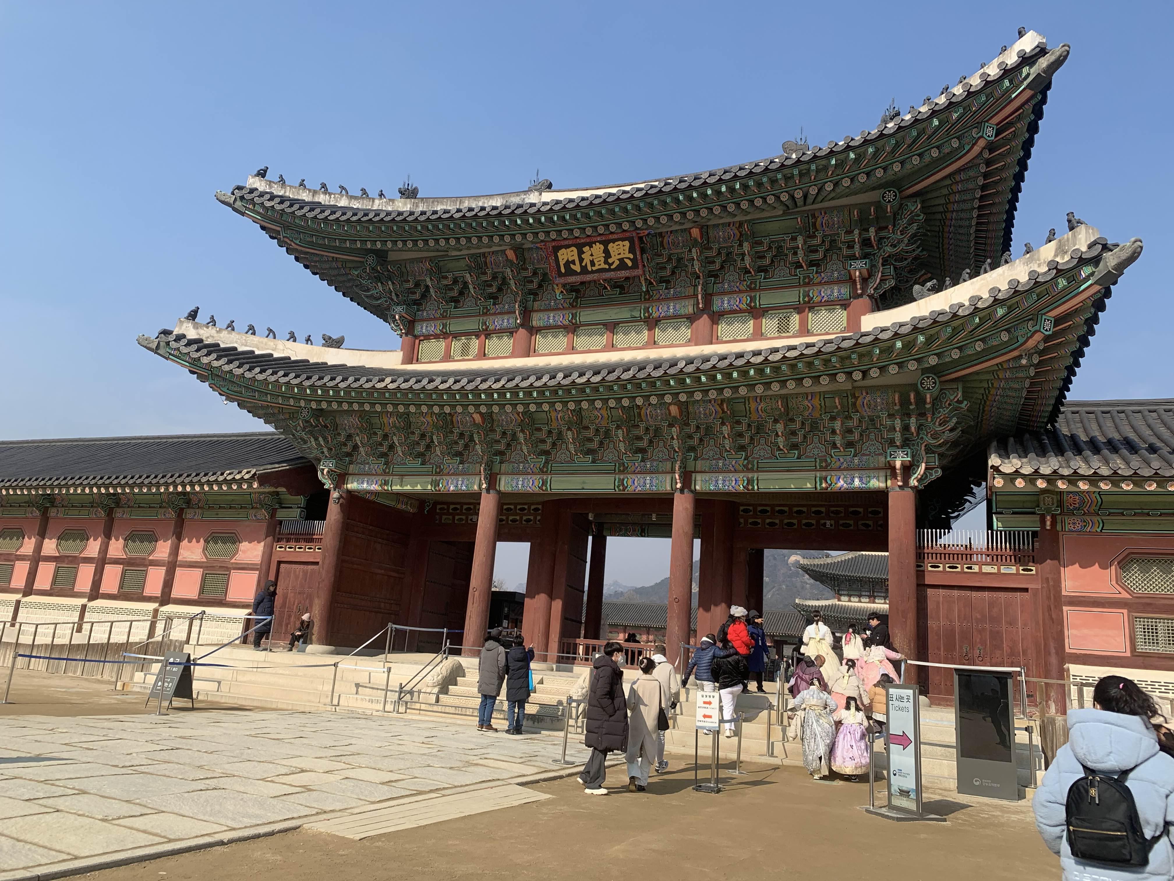 경복궁의 남대문으로 입장하여야 한다. 남대문은 2008년도에 화재로 인하여 홀라당 타버린 이력을 가지고 있다. 남대문 복원을 통해서 기존 출입문이 하나에서 세 개의 출입문으로 변경된 듯하다.