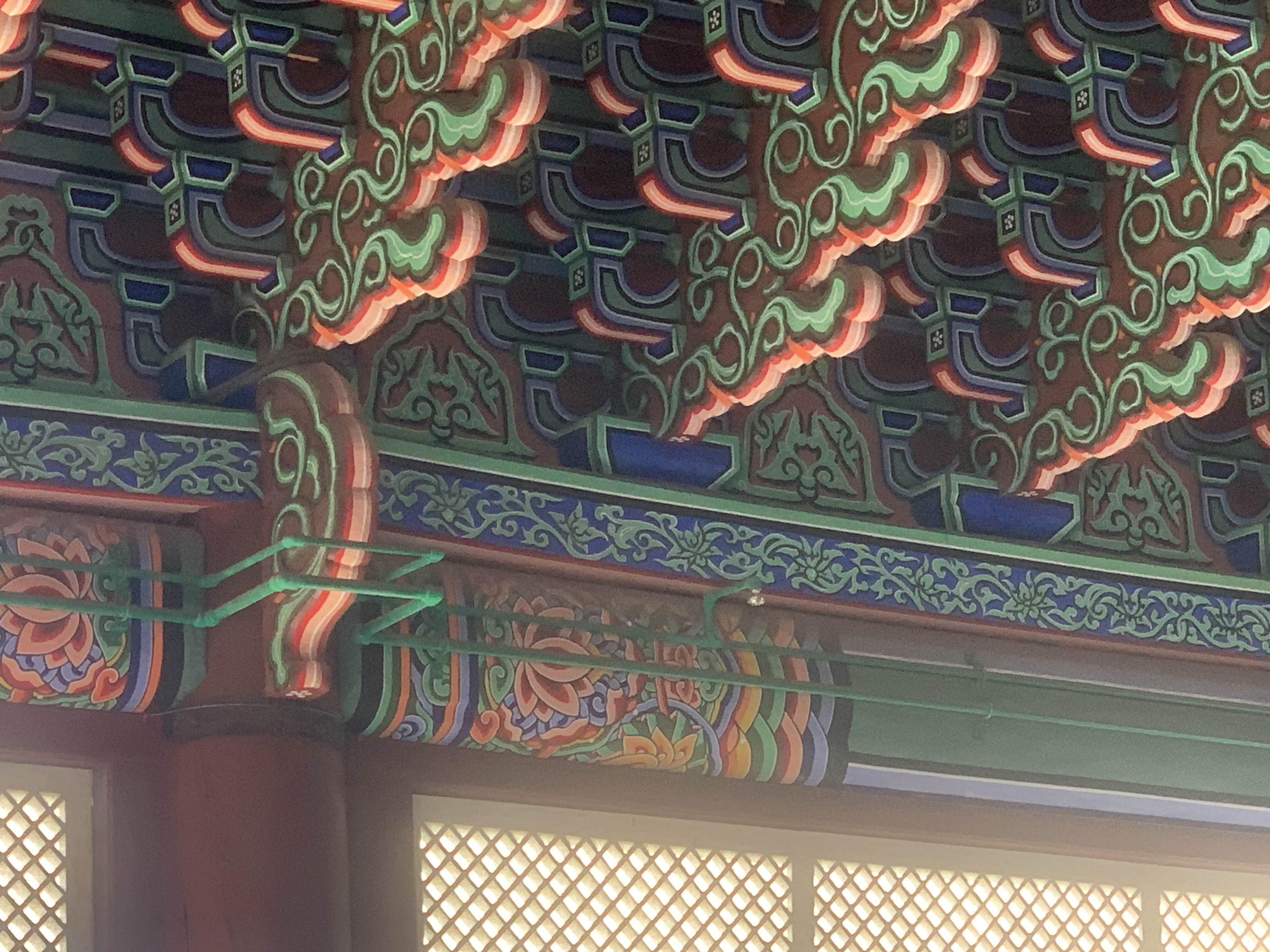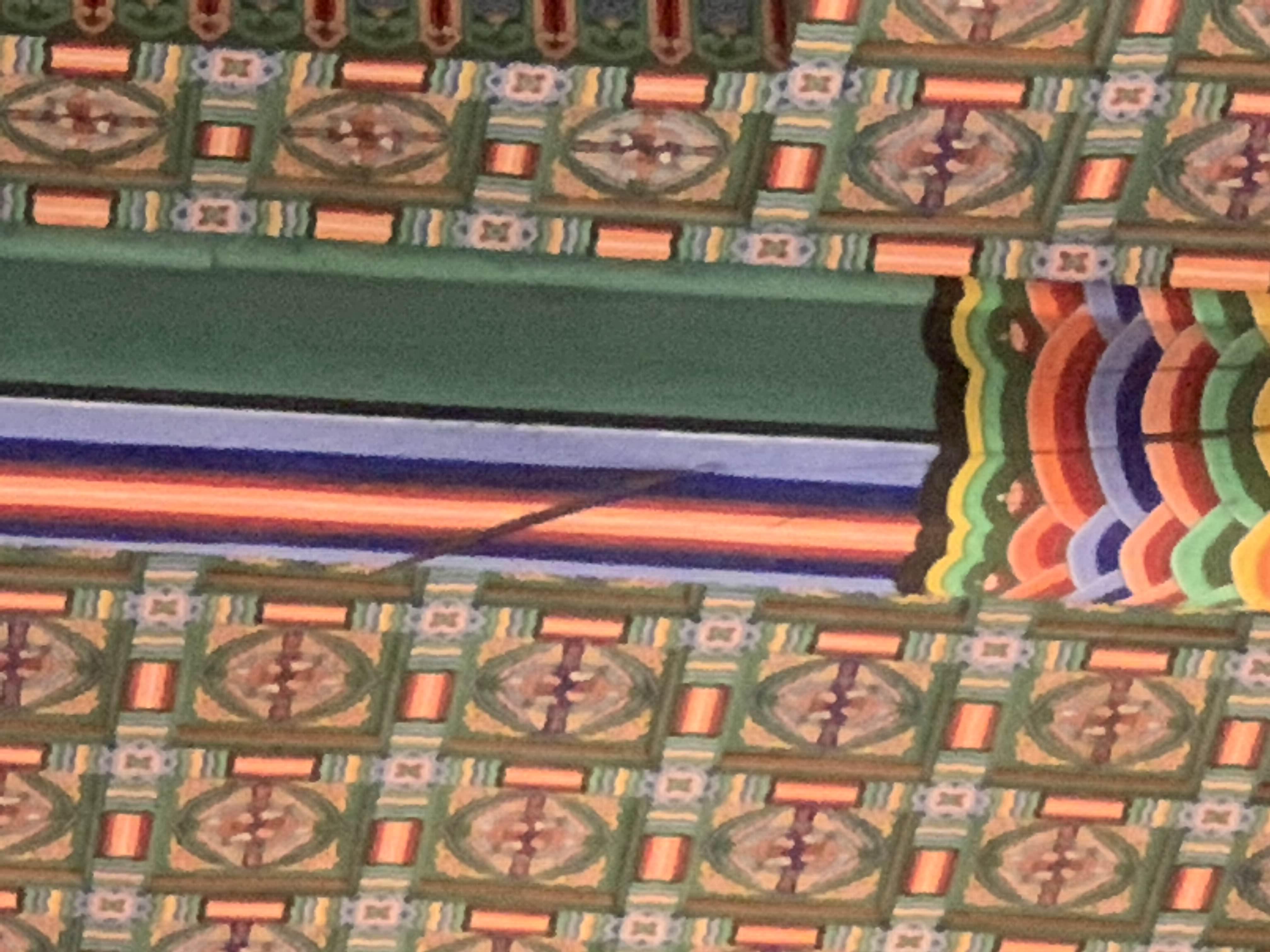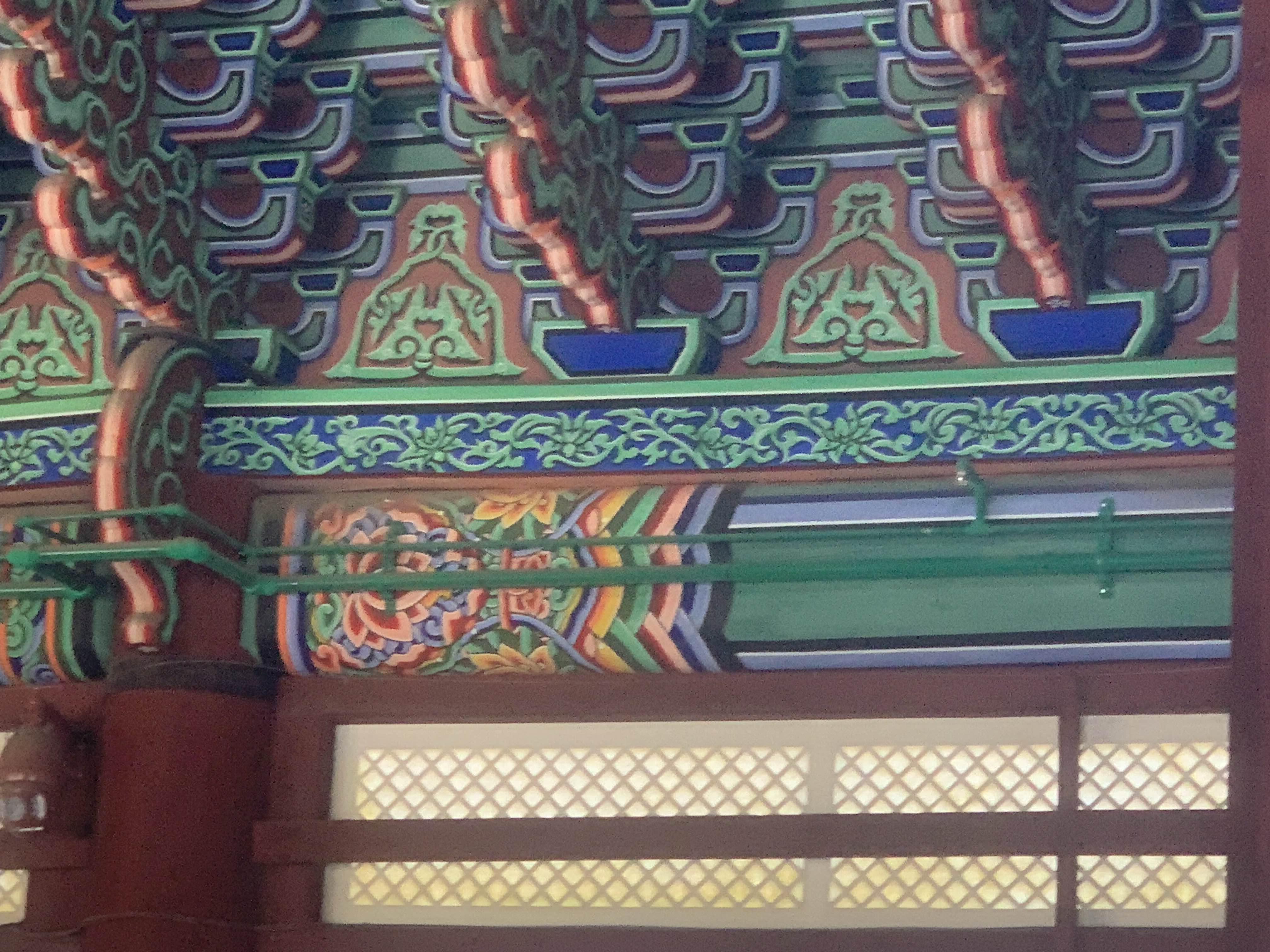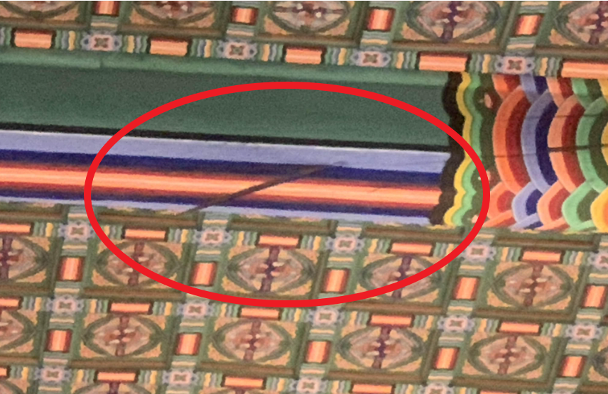 근정전 지붕은 콘크리트 구조물?이라 생각이 되지만.... 이 부분의 양성 바르기에 해당하여, 기존과 동일하게 복원이 되었을 텐데... 대들보의 크렉은 왜 생겼을까?라는 의문이 든다.