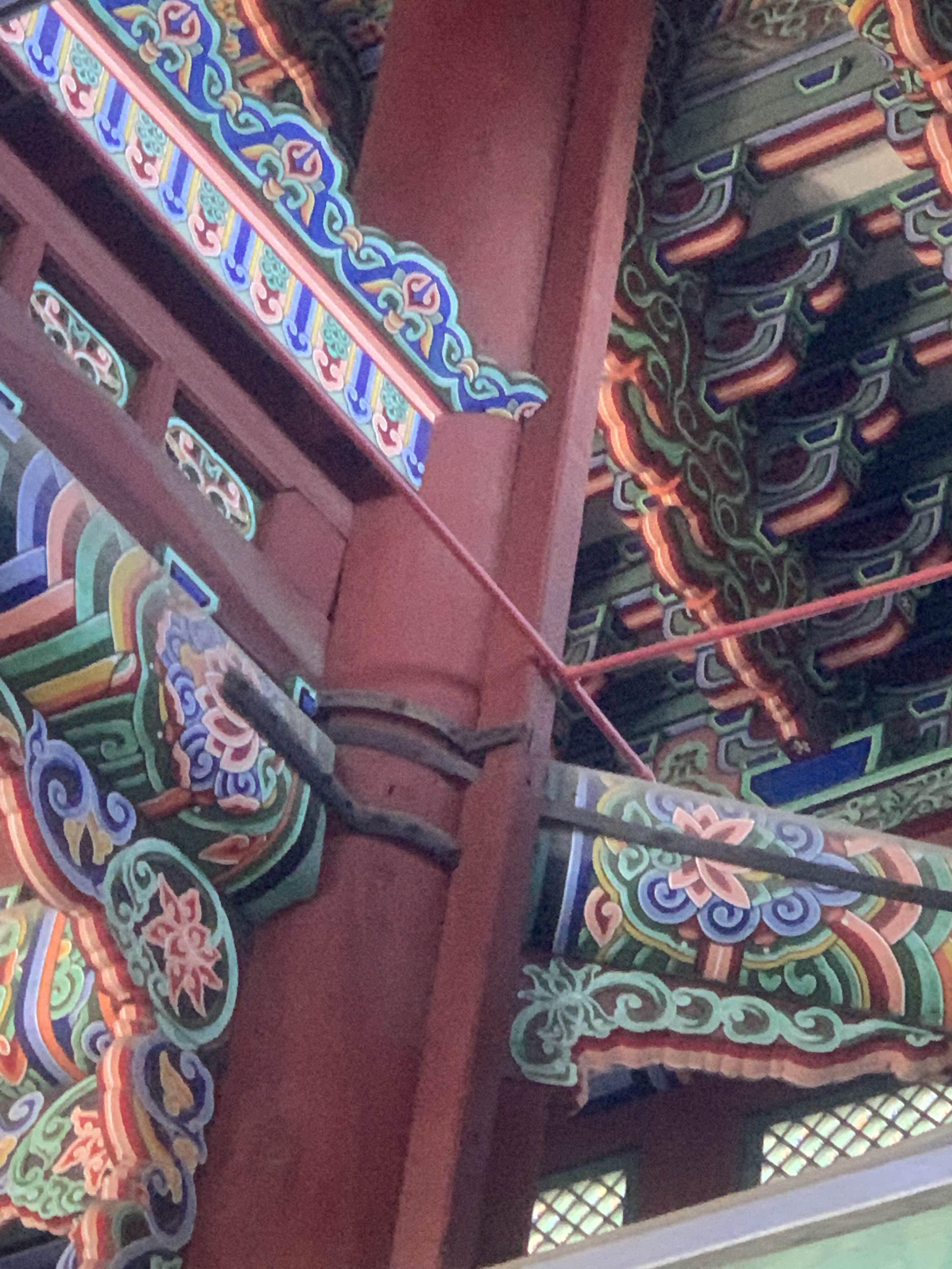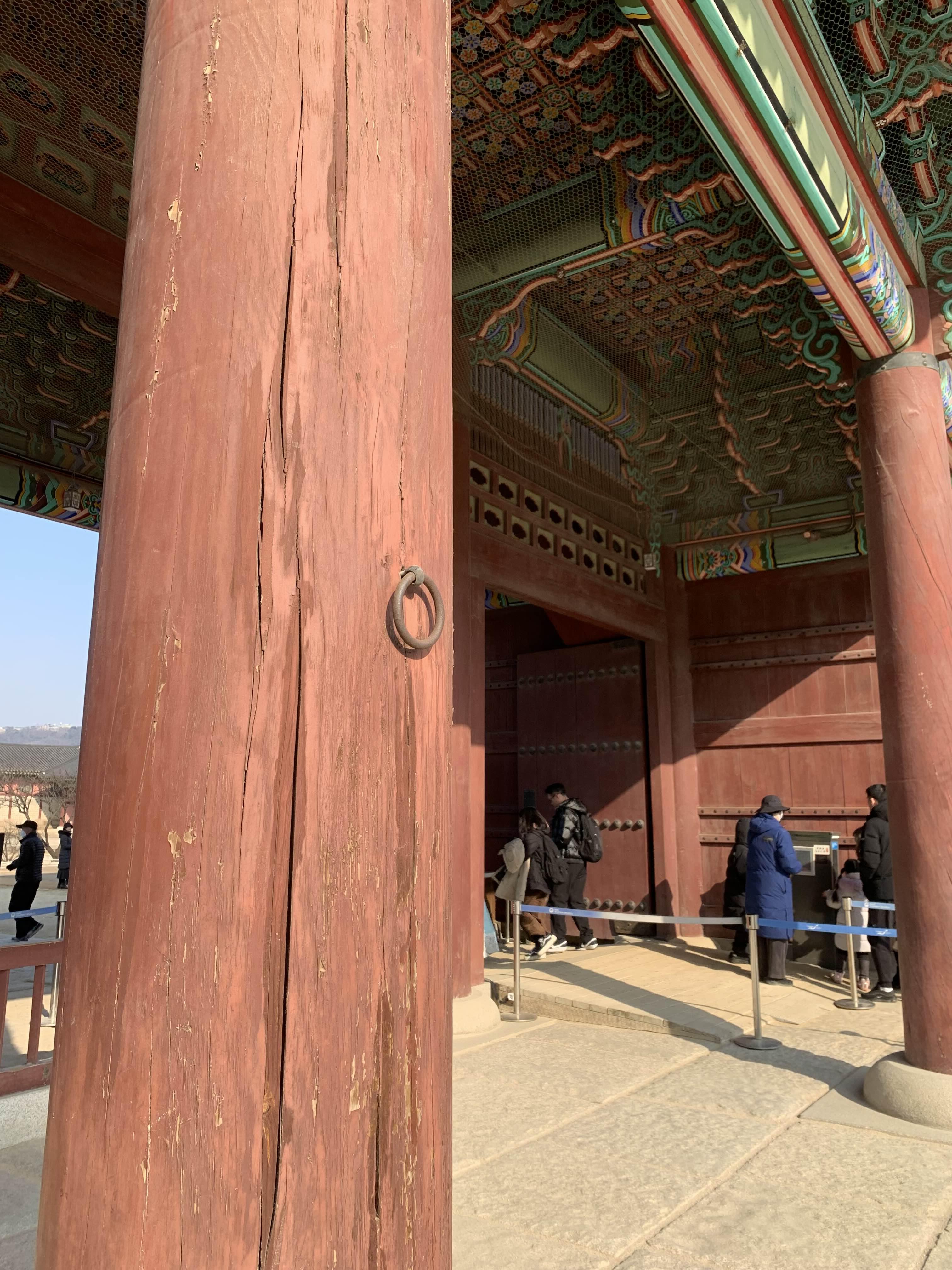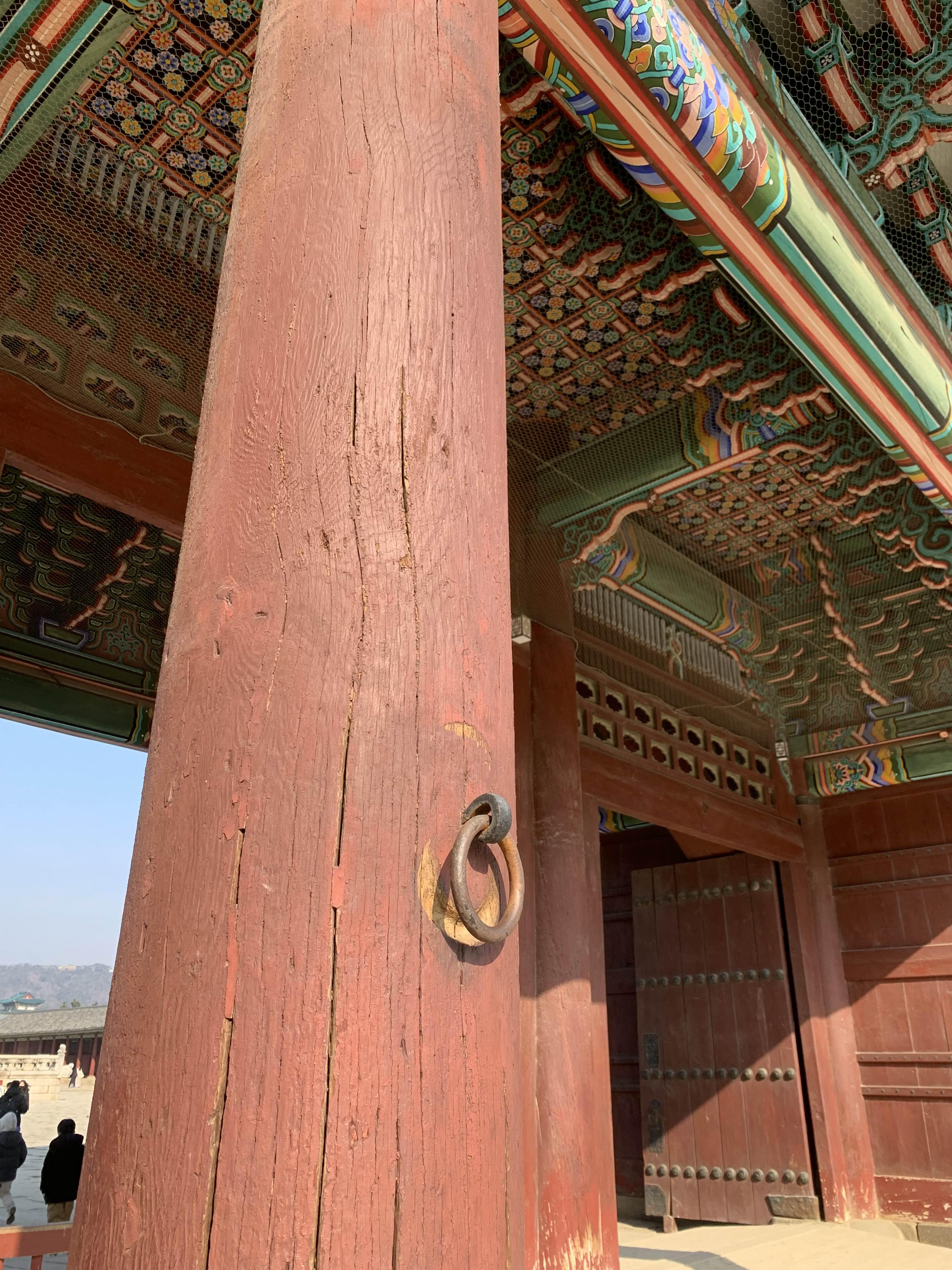 근정전 지붕은 콘크리트 구조물?이라 생각이 되지만.... 이 부분의 양성 바르기에 해당하여, 기존과 동일하게 복원이 되었을 텐데... 대들보의 크렉은 왜 생겼을까?라는 의문이 든다.
