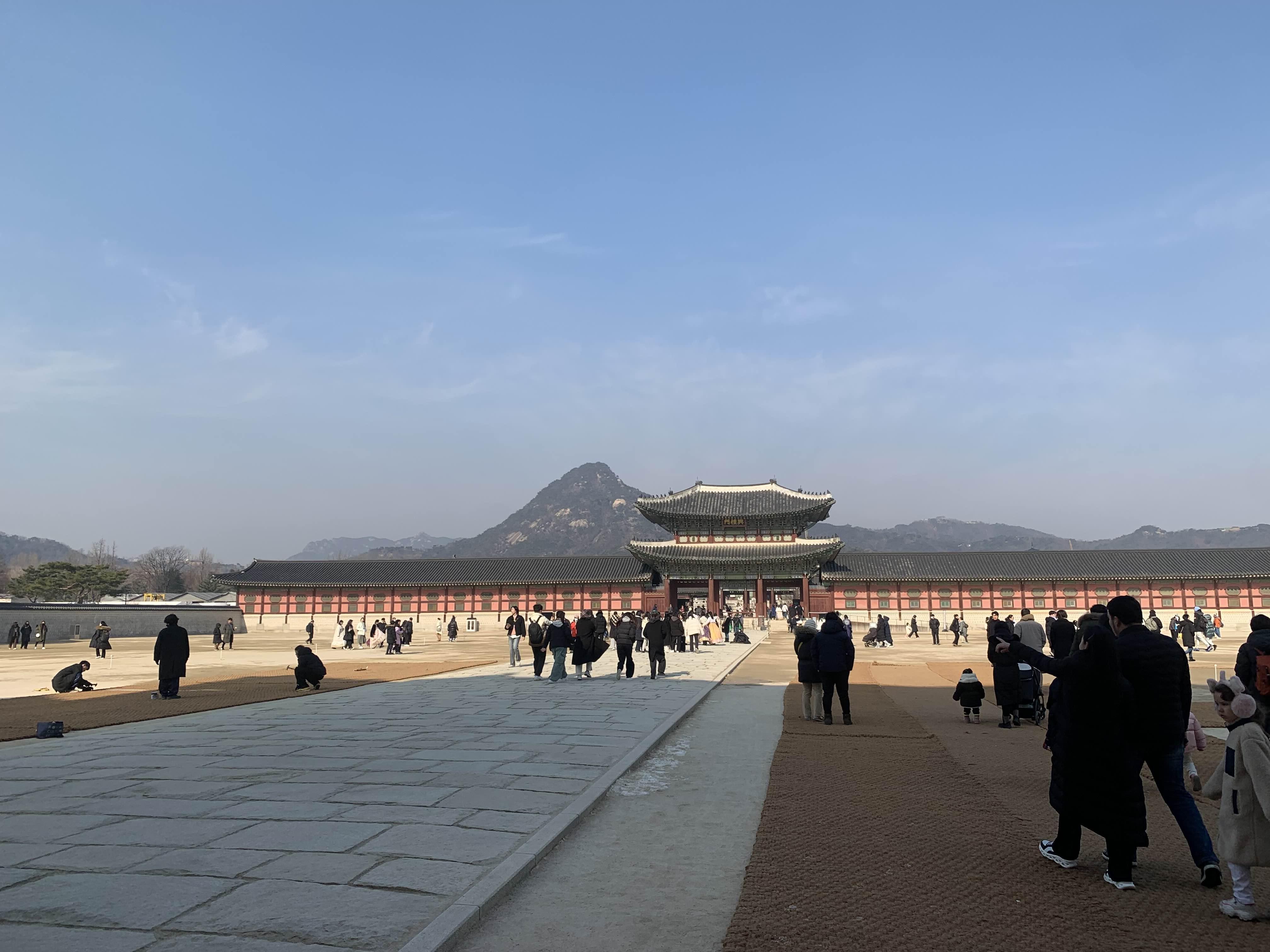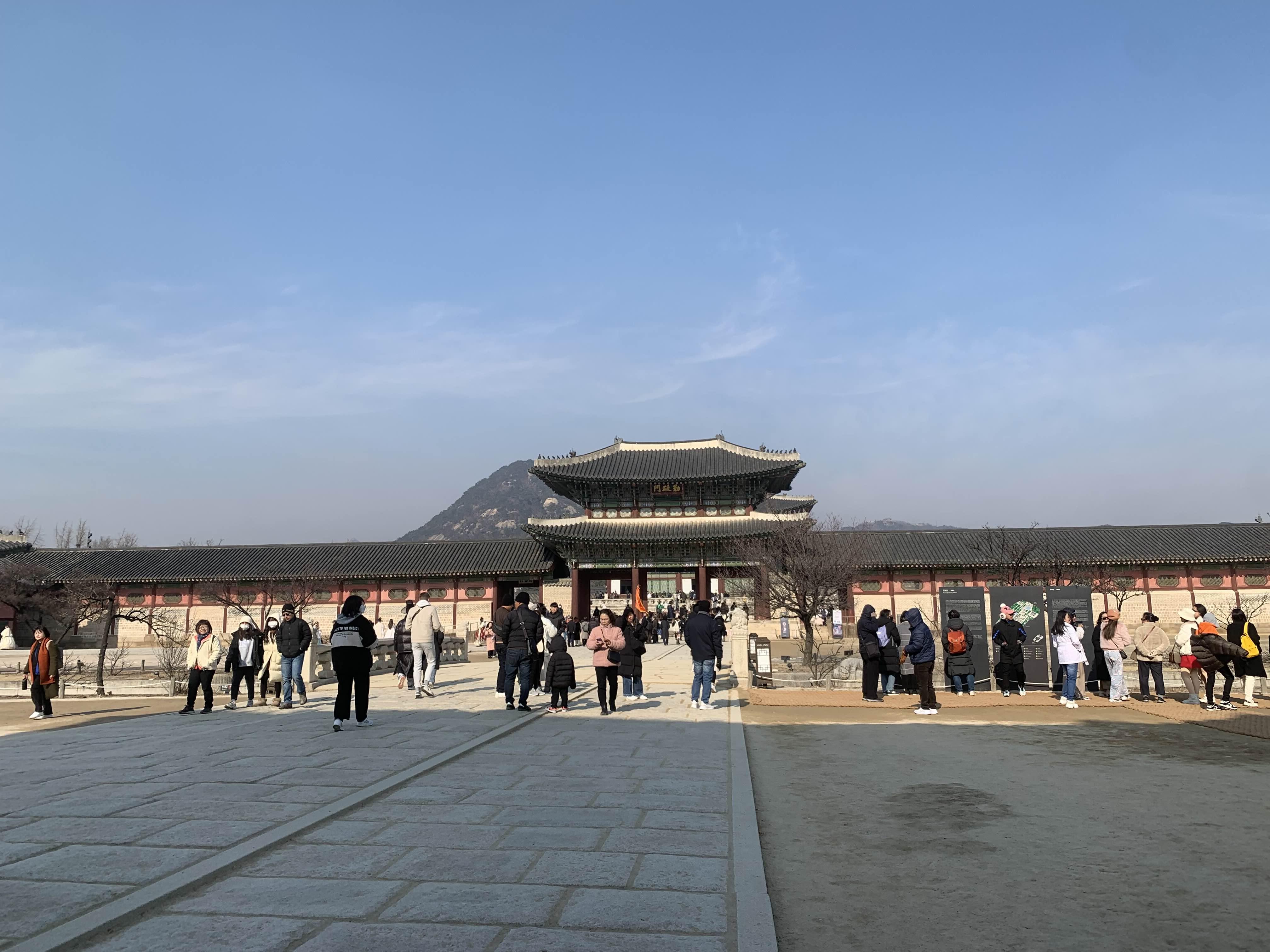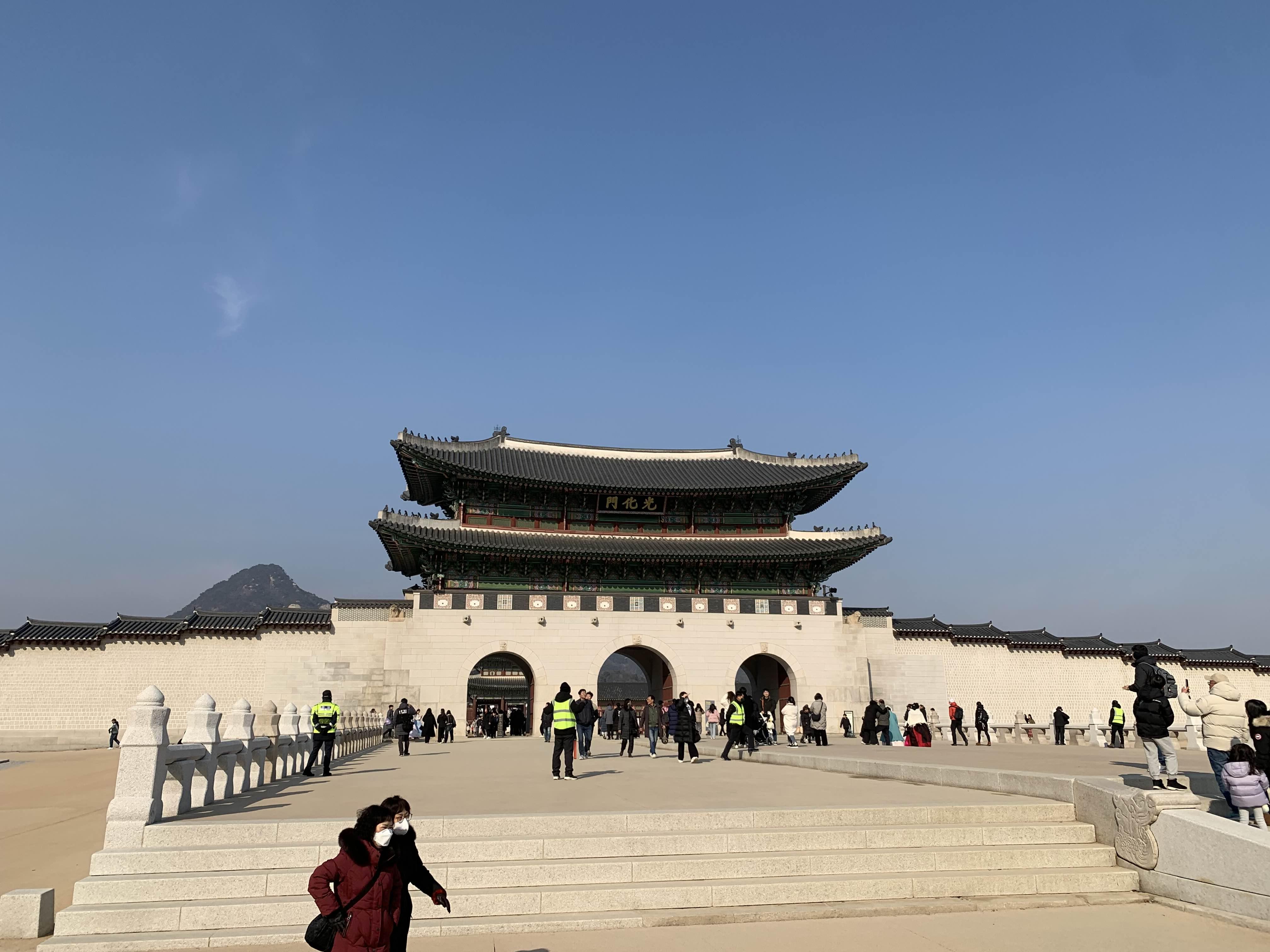 추운 날씨에도 불구하고 많은 사람들이 경복궁을 관람하신다.