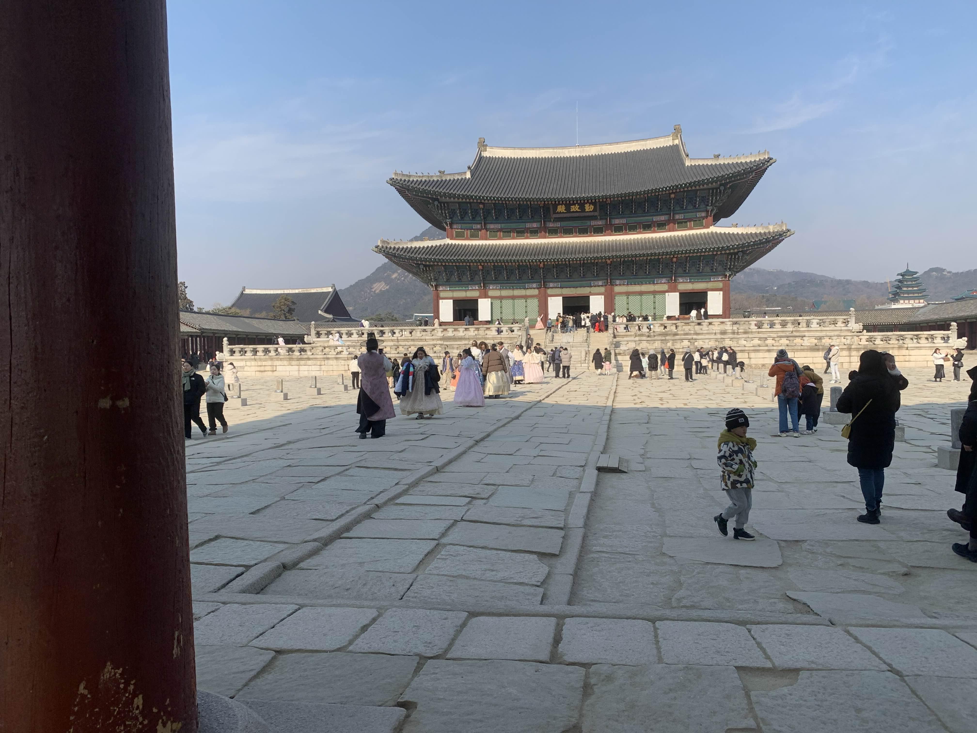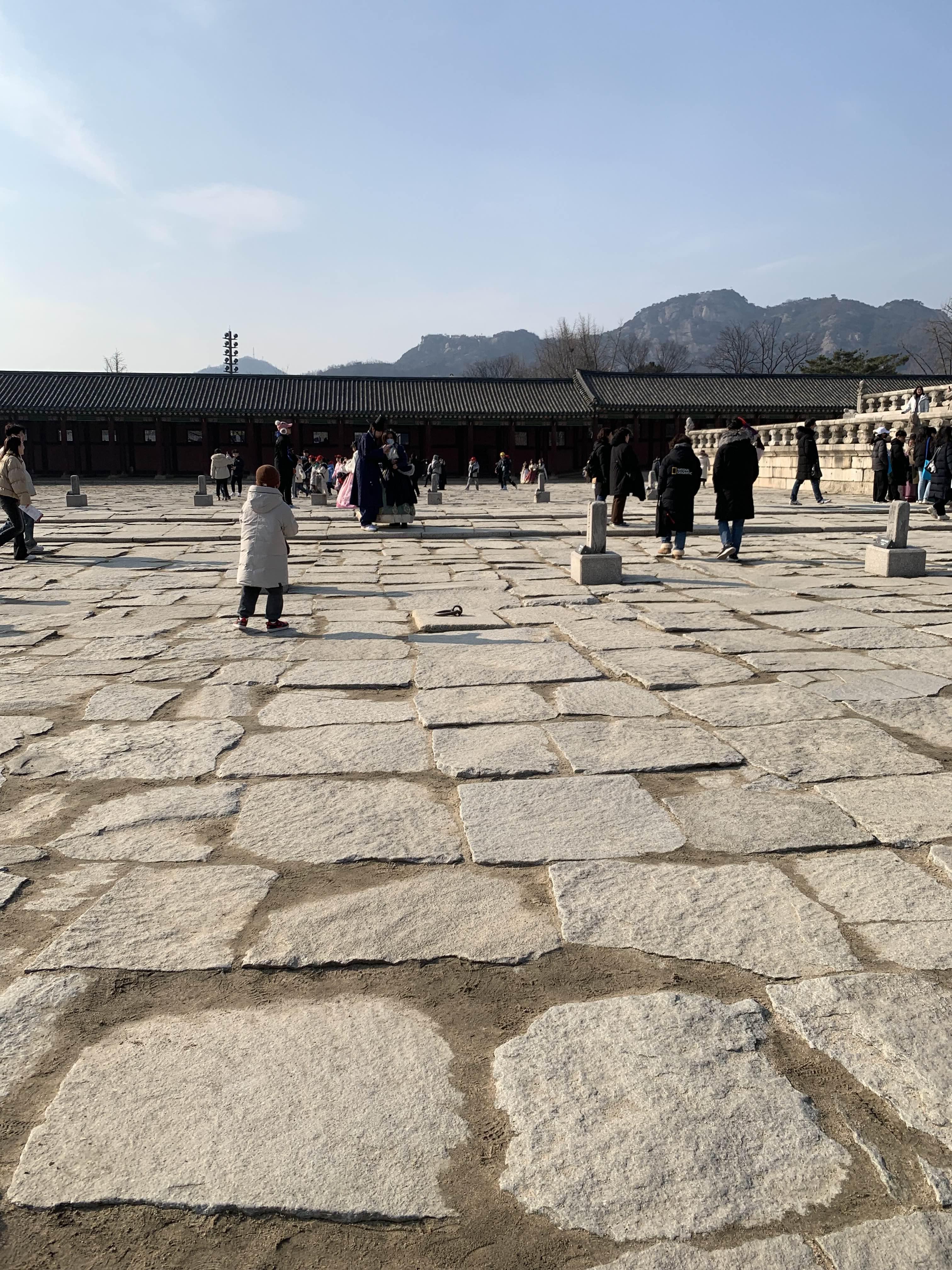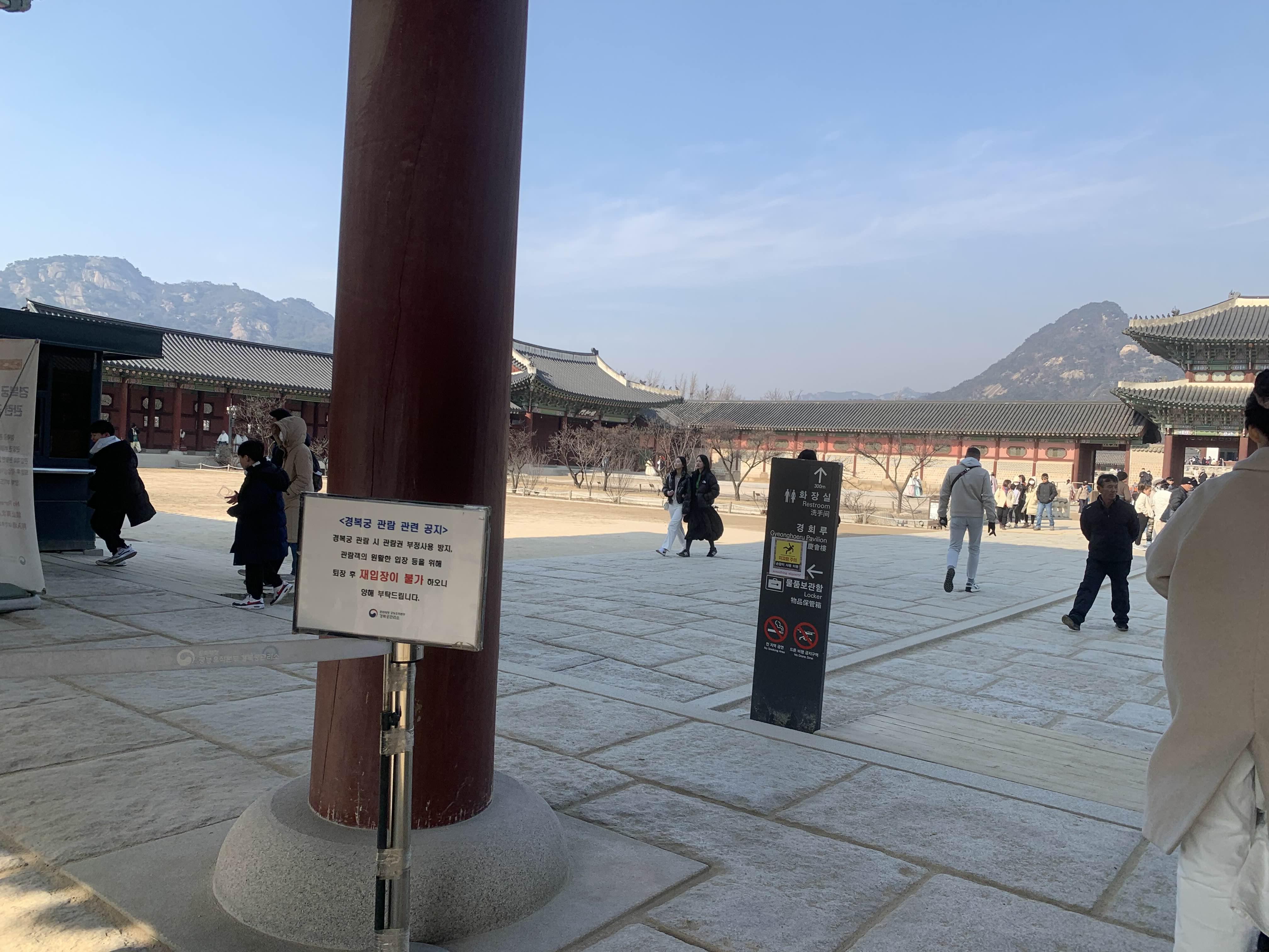 추운 날씨에도 불구하고 많은 사람들이 경복궁을 관람하신다.