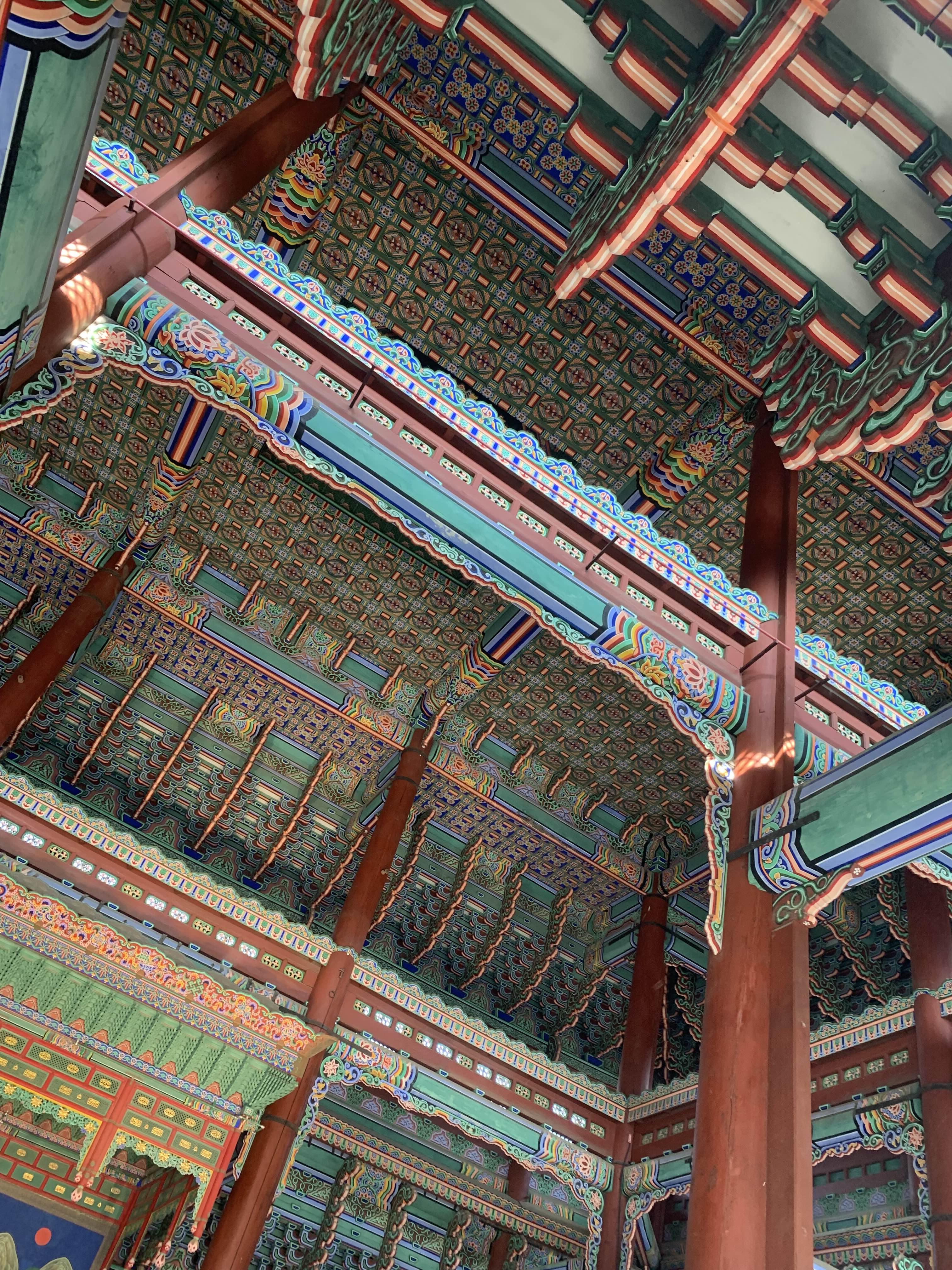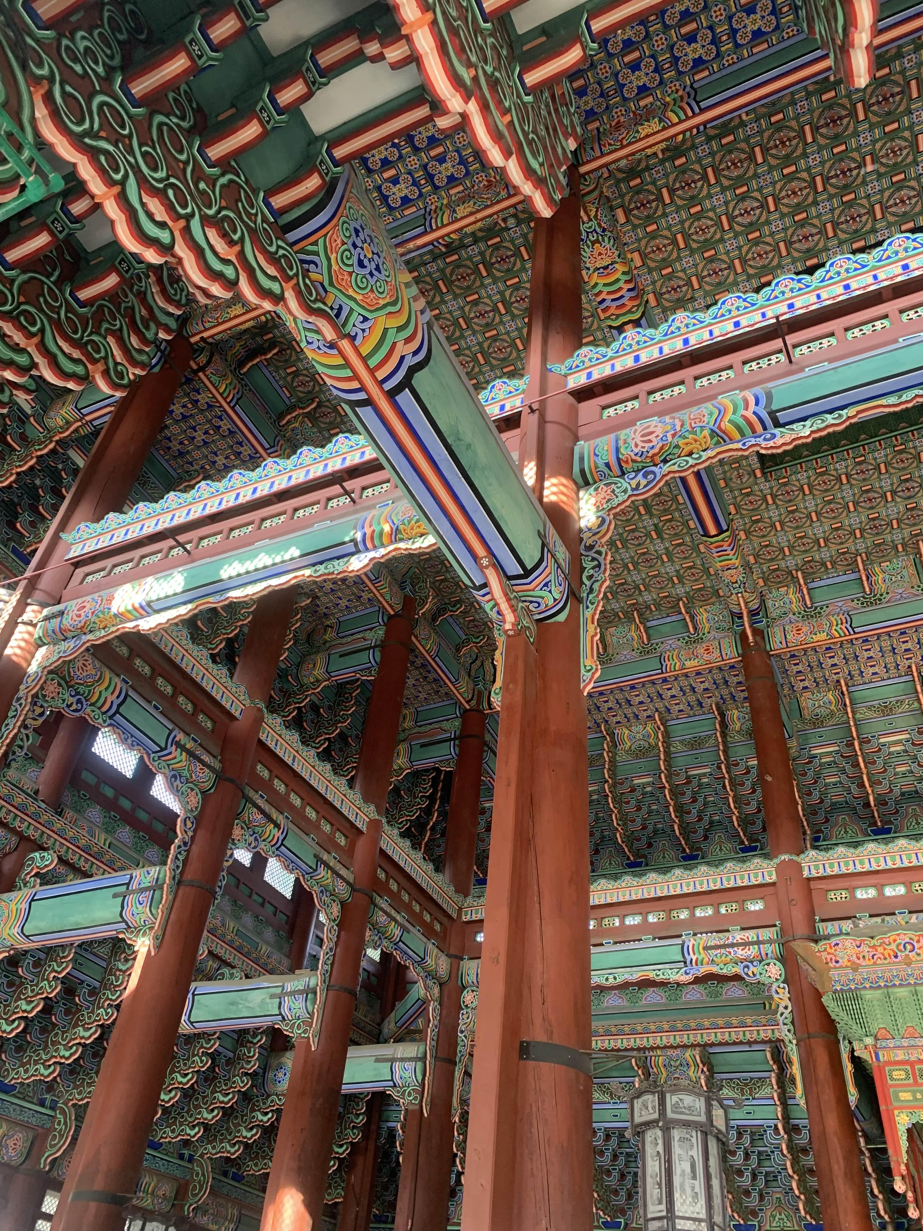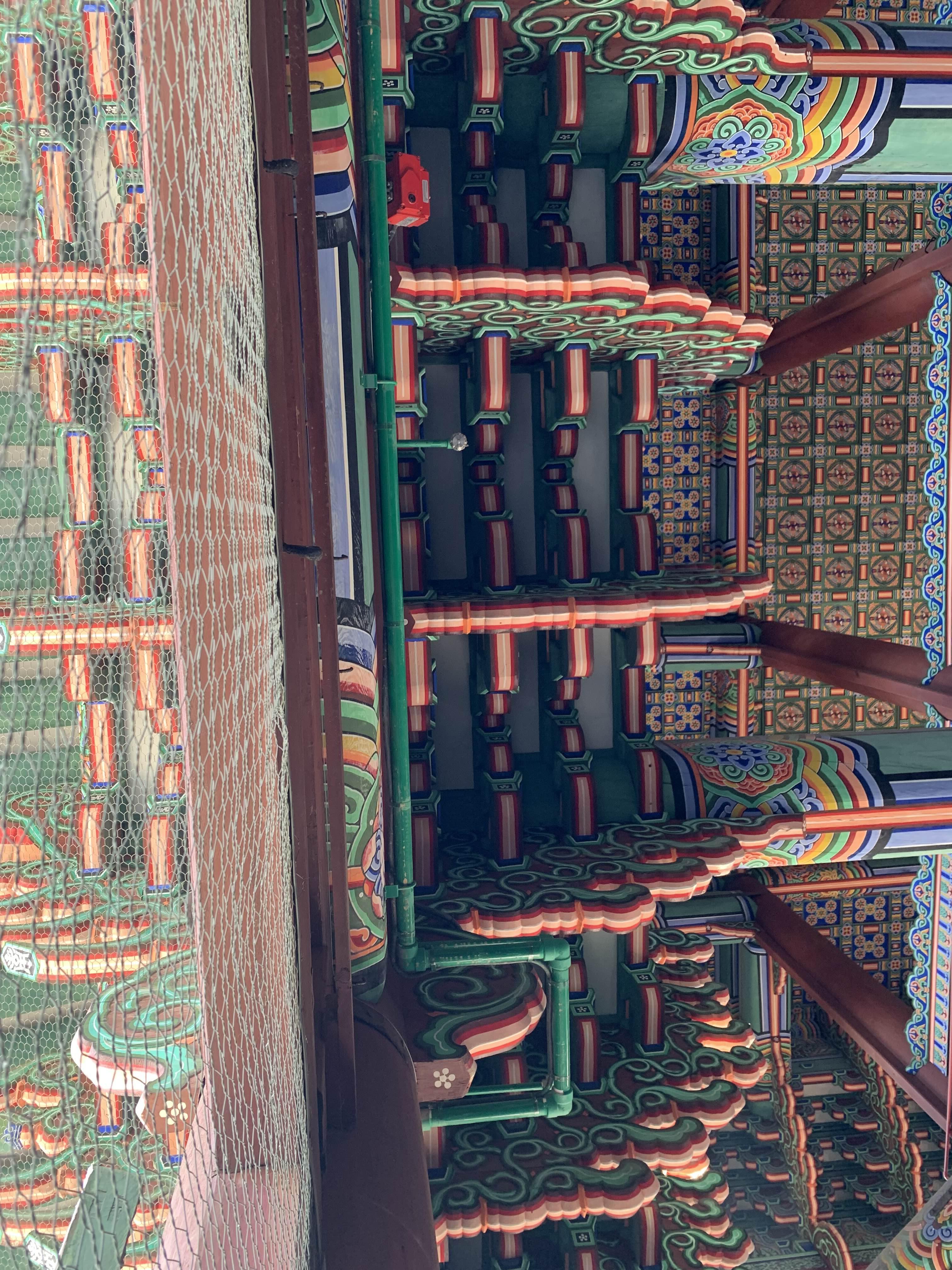 소화배관의 색상이 근정전내부 색상에 맞추어 도색되어... 배관이 눈에 잘 들어오지는 않지만! 유심히 찾아보면 그리 어렵지 않게 보인다.