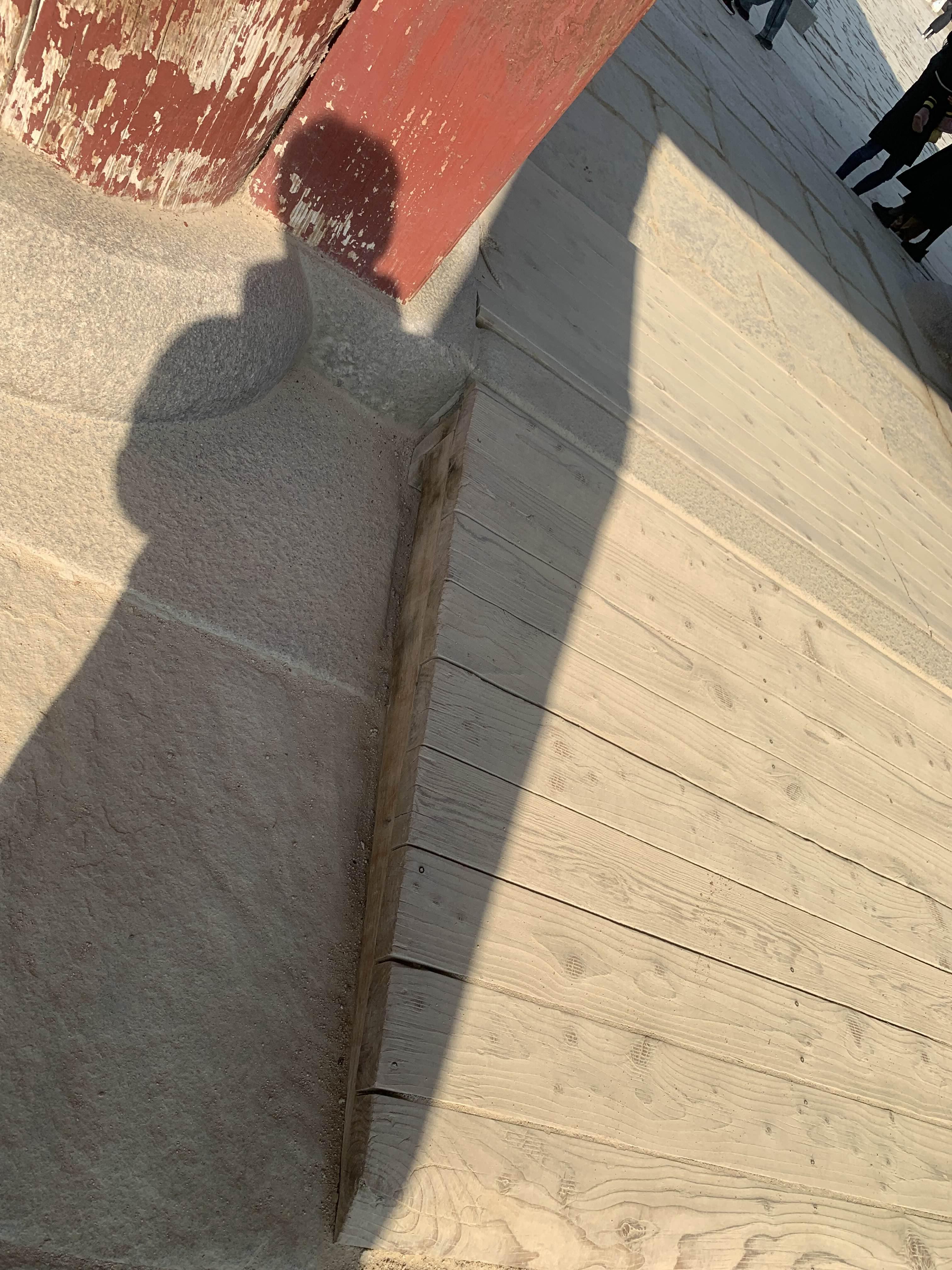 출입문의 단차.... 목재 경사로로 완만하게 만들어 놓았다.