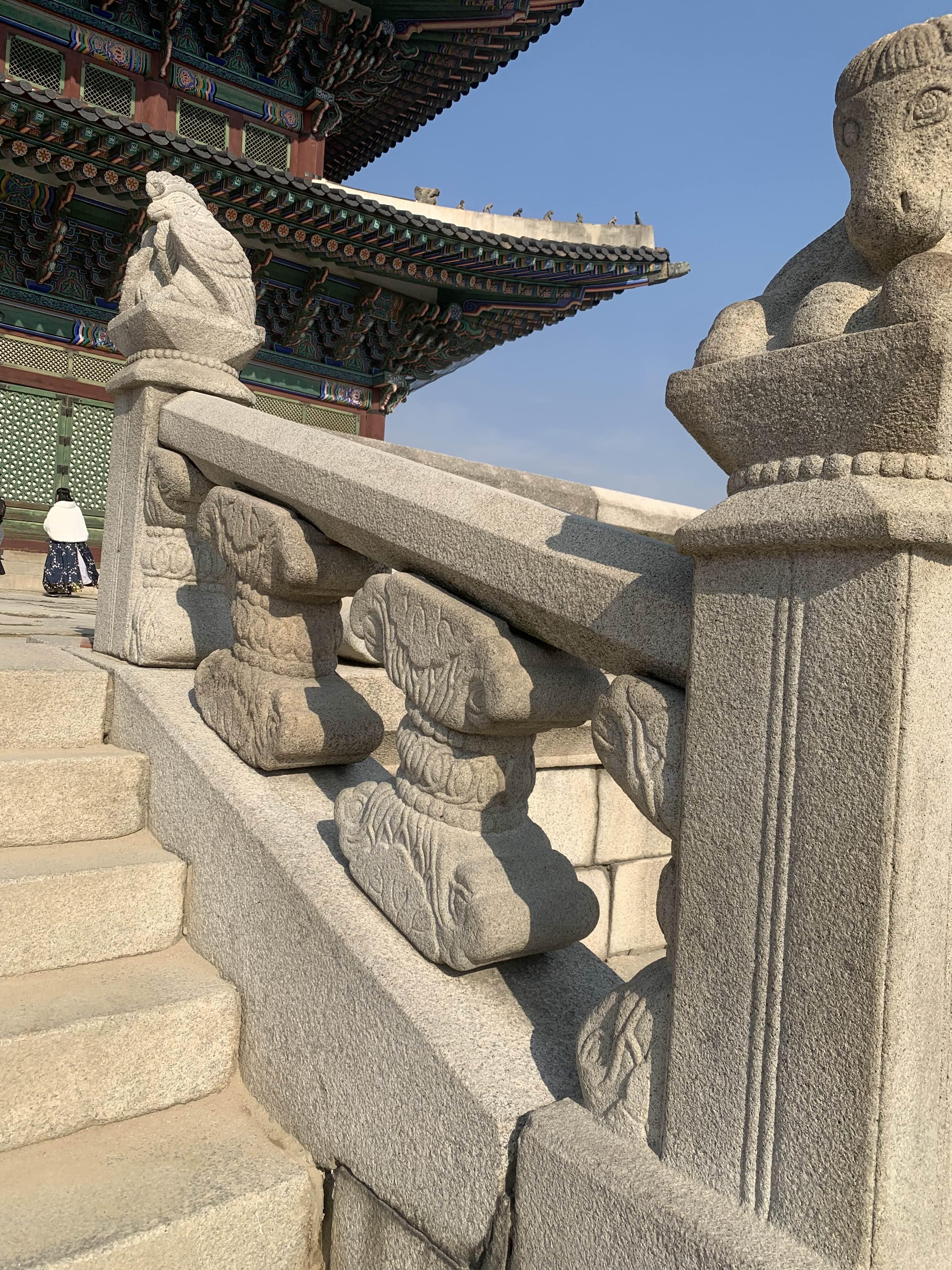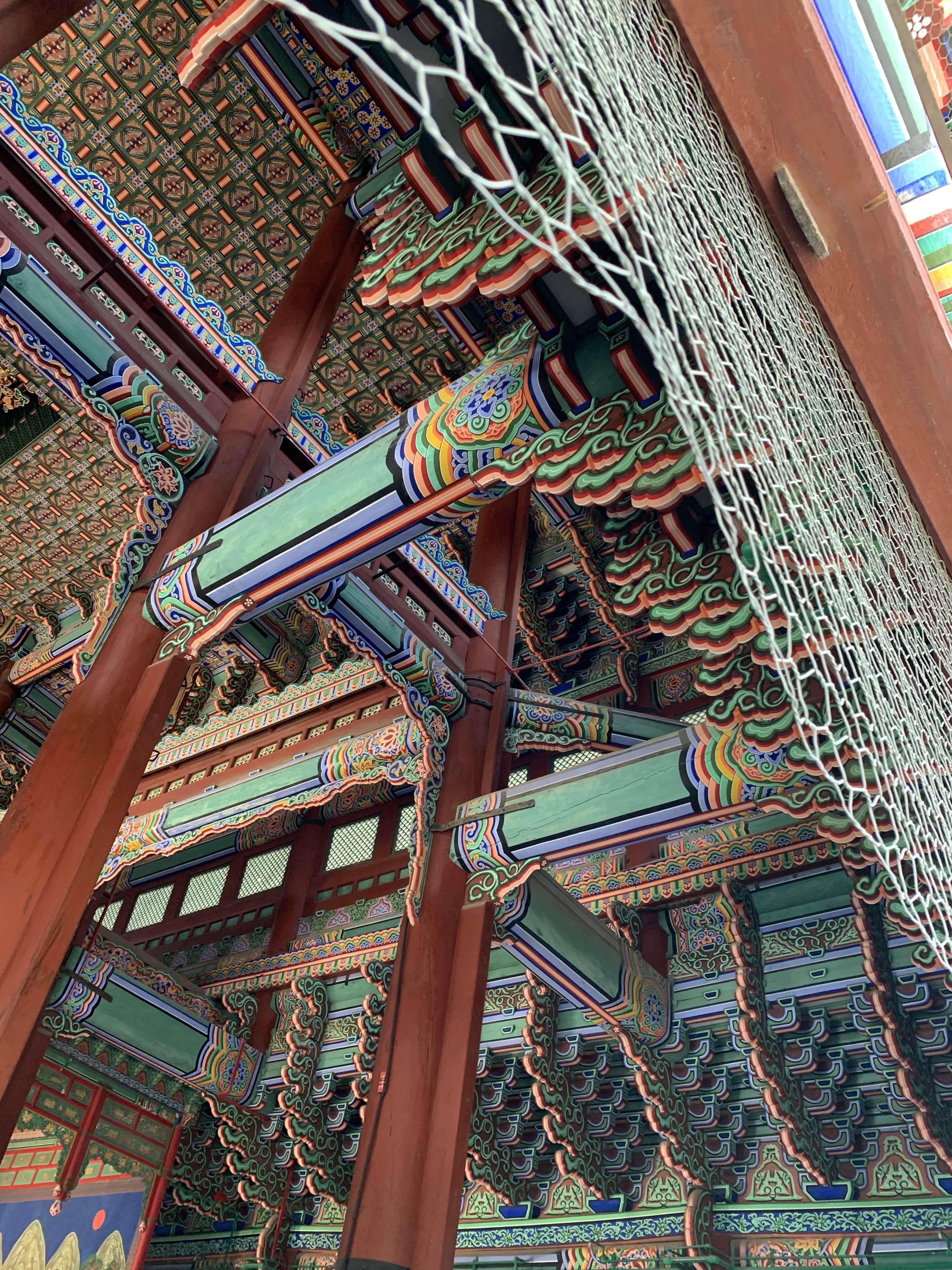 근정전 외부로는 그물말이 있는데.... 새들의 접근을 막는 용도로 설치한 것 같다. 그러면? 예전에도 이런 그물망이 있었을까? 그 당시에도 새들은 있었을 테고.... 새들이 접근하여 건축물을 손상망 지를 위한 시설이 있지 않았을까?라는 생각을 해보았다.