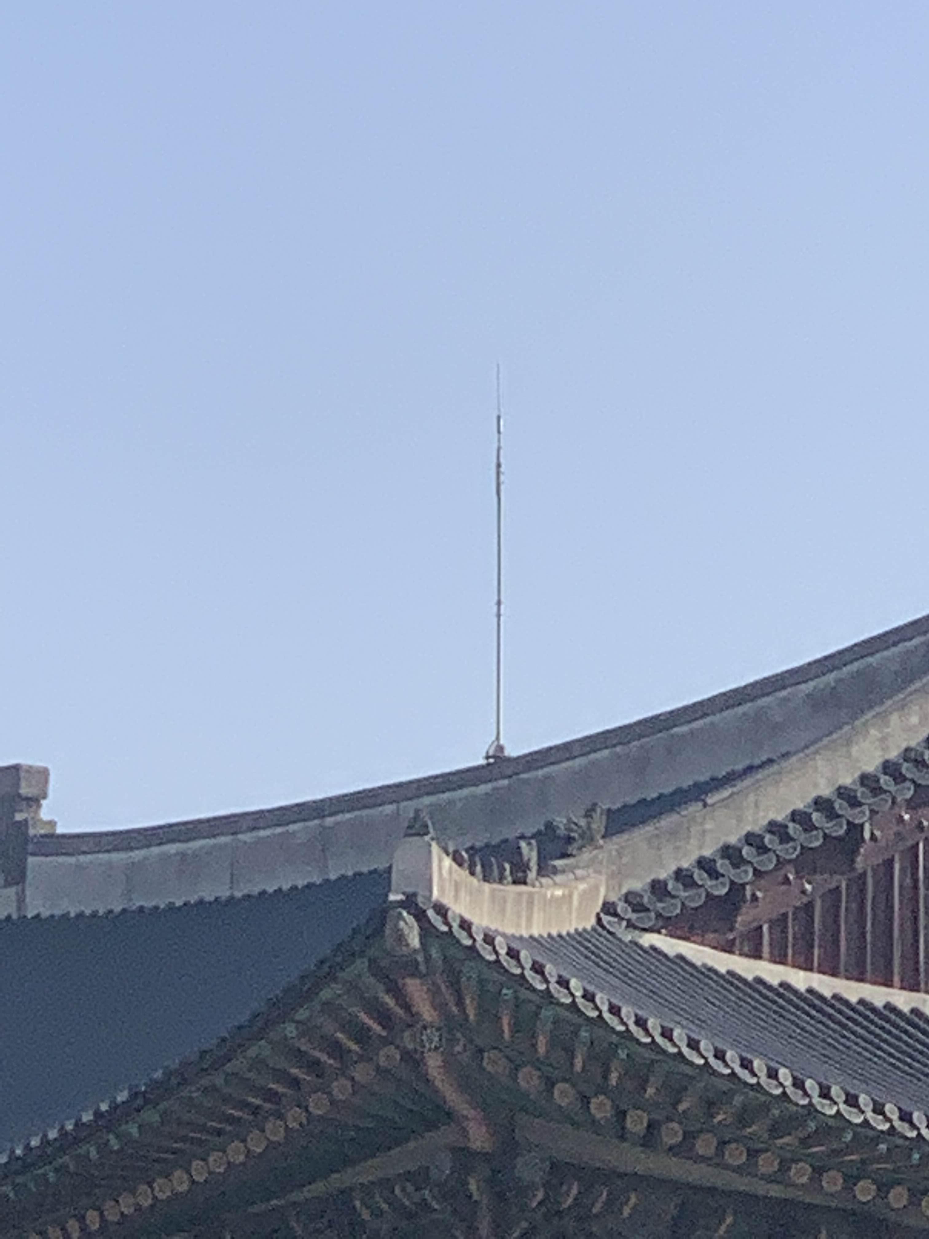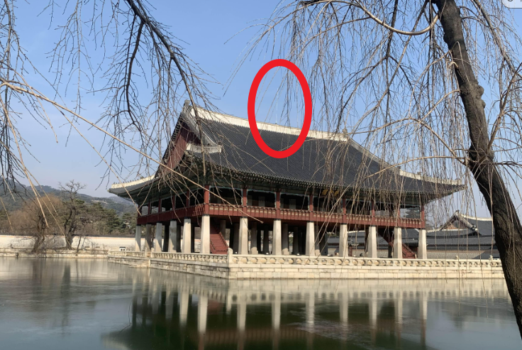 경회루 중앙에 설치된 피뢰침! 경복궁 근처의 높은 건축물이 없다 보니.... 피뢰침을 설치하여 낙뢰에 대비한 시설이다.