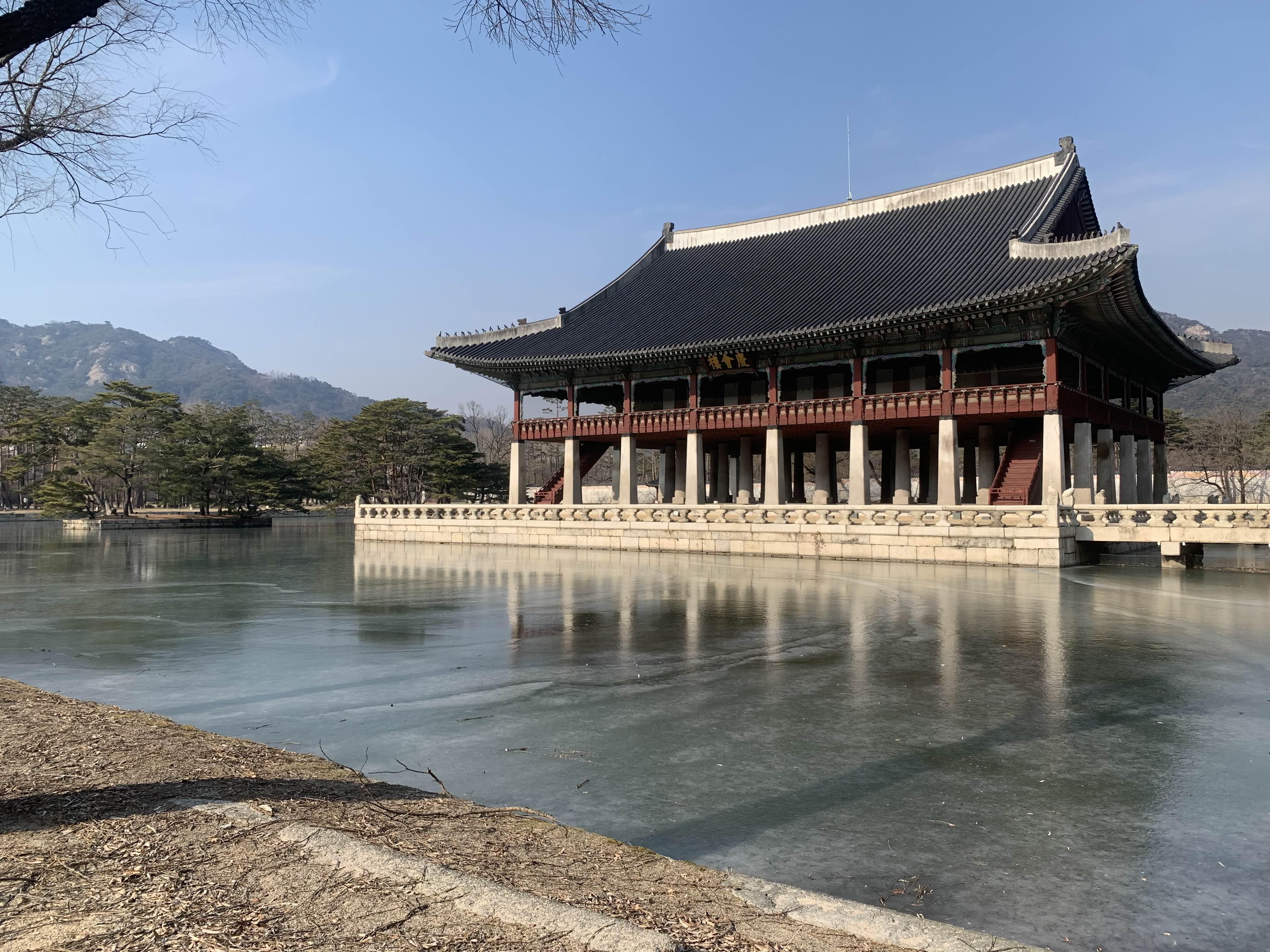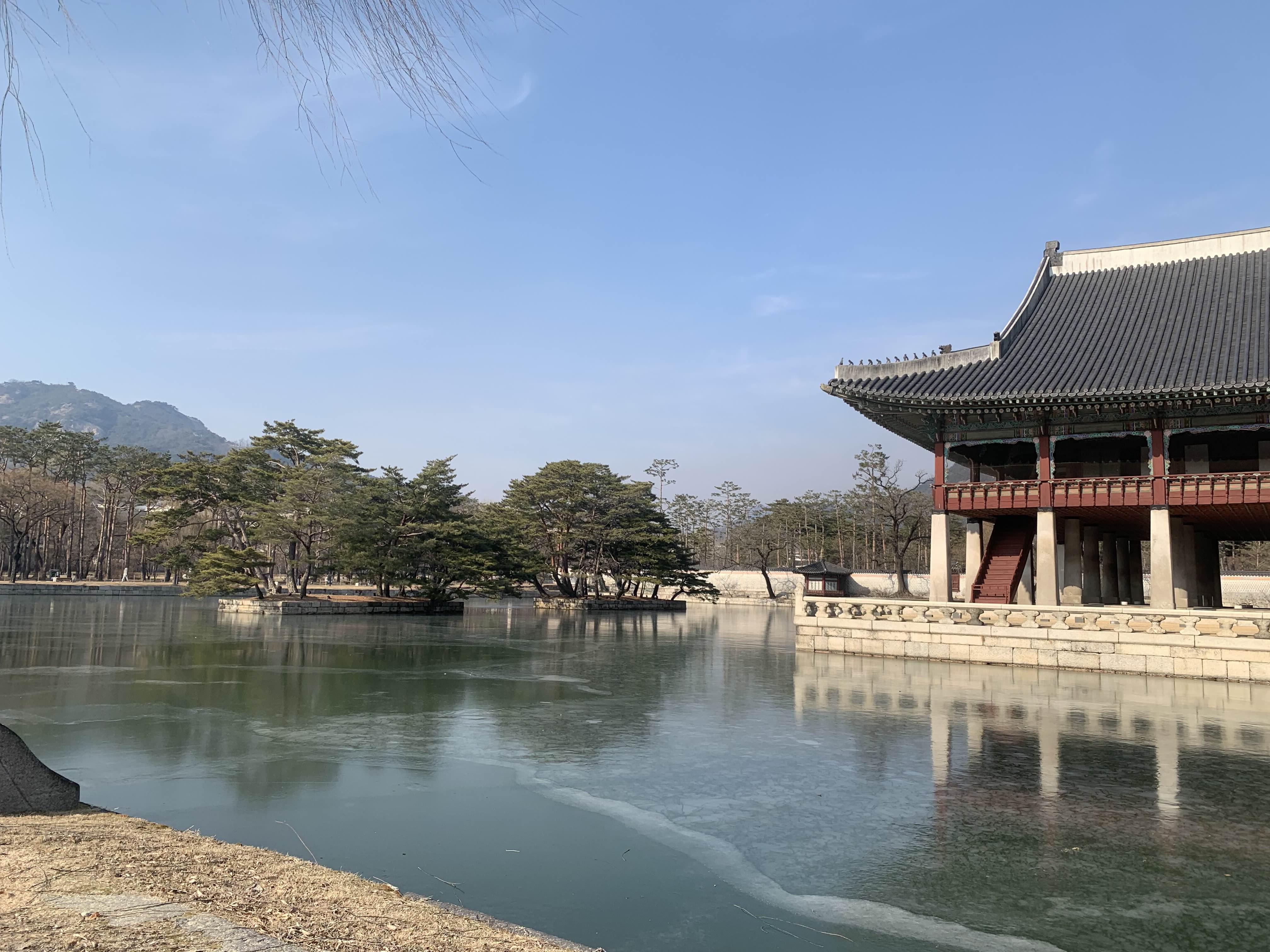 야외수영장? 경회루는 추운 날씨에 꽁꽁 얼었다.