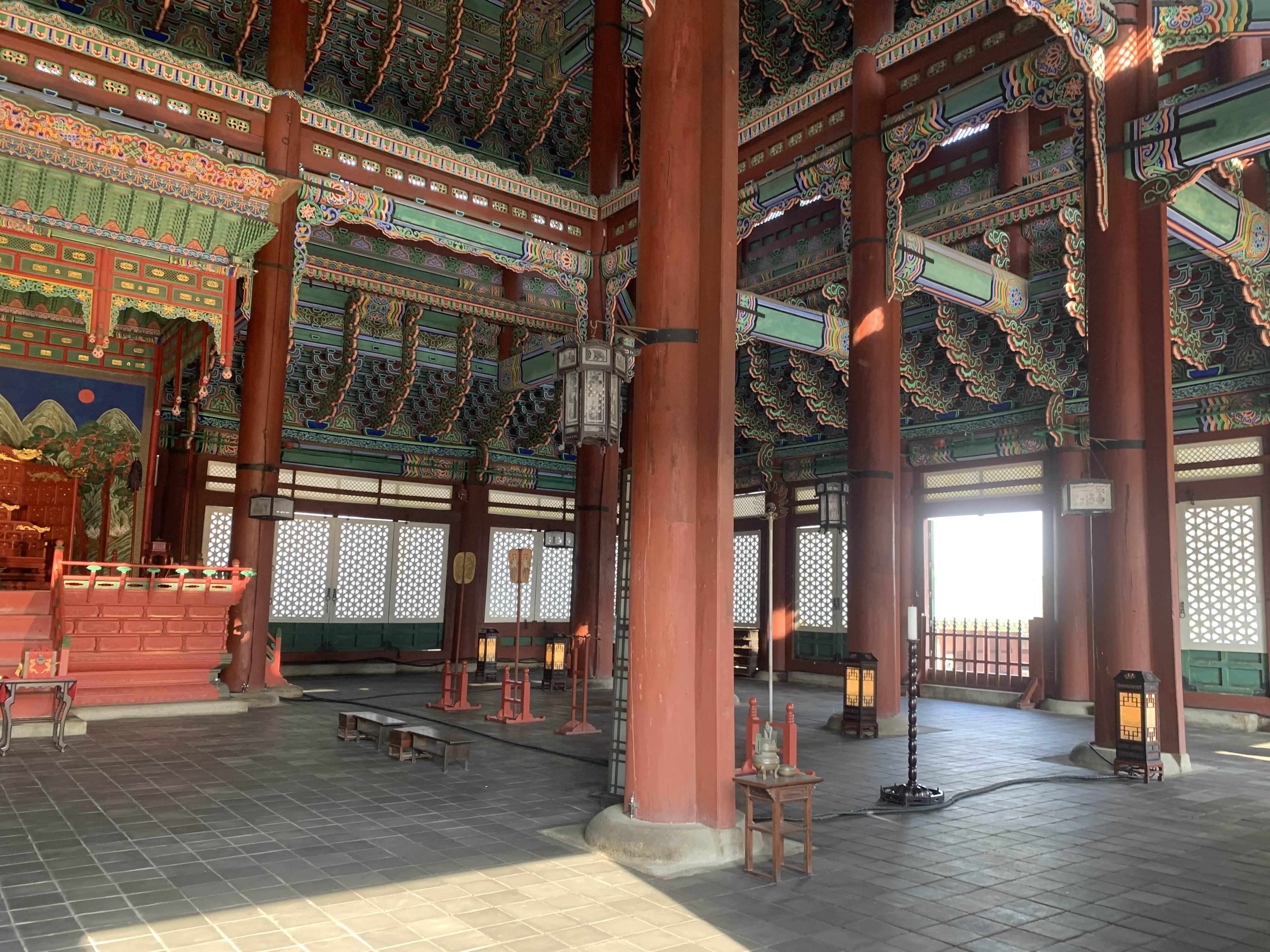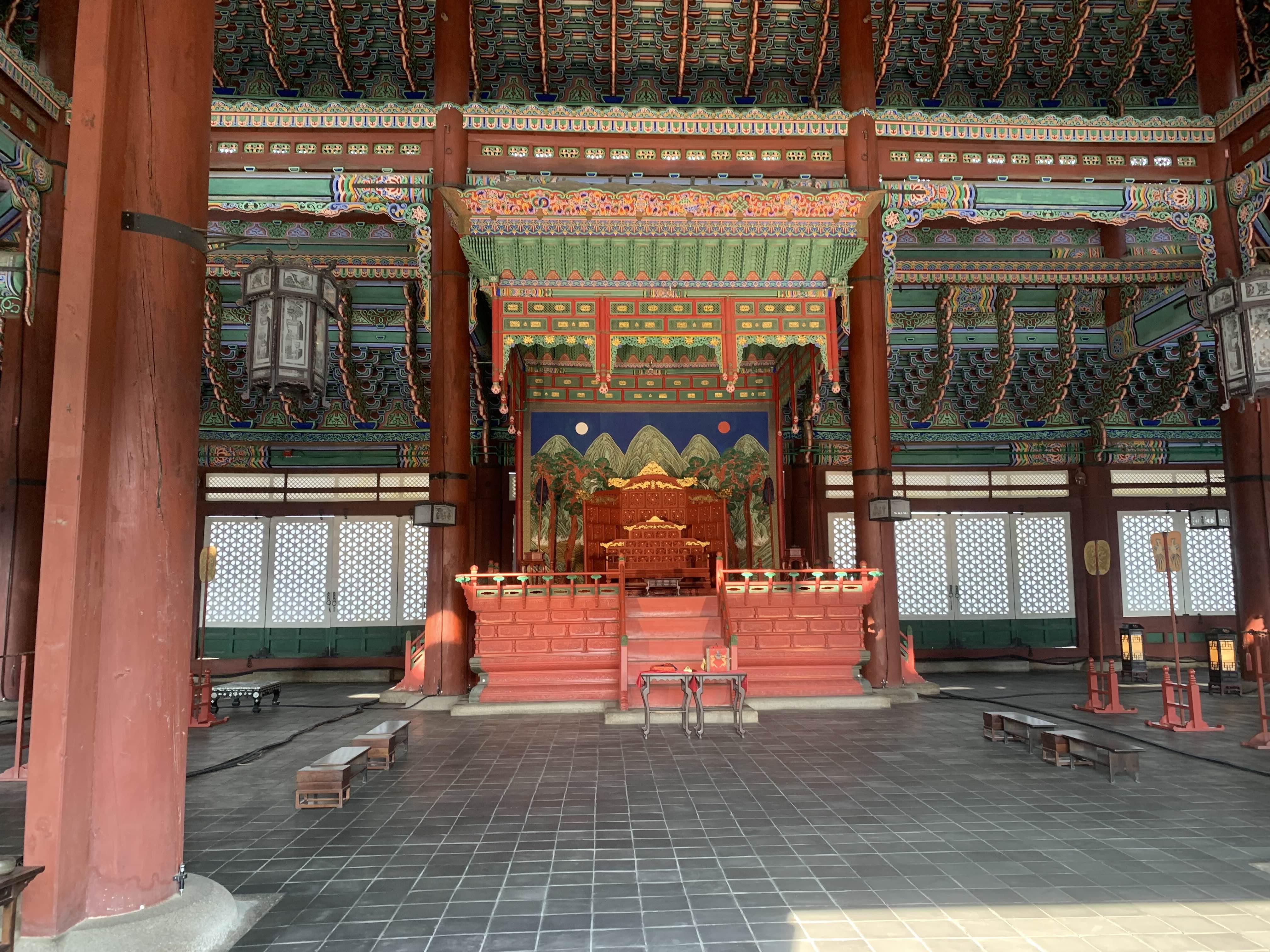 근정전 내부 모습이다. 왕이 등장하는 드라마/영화에서 많이 보았던 장소....