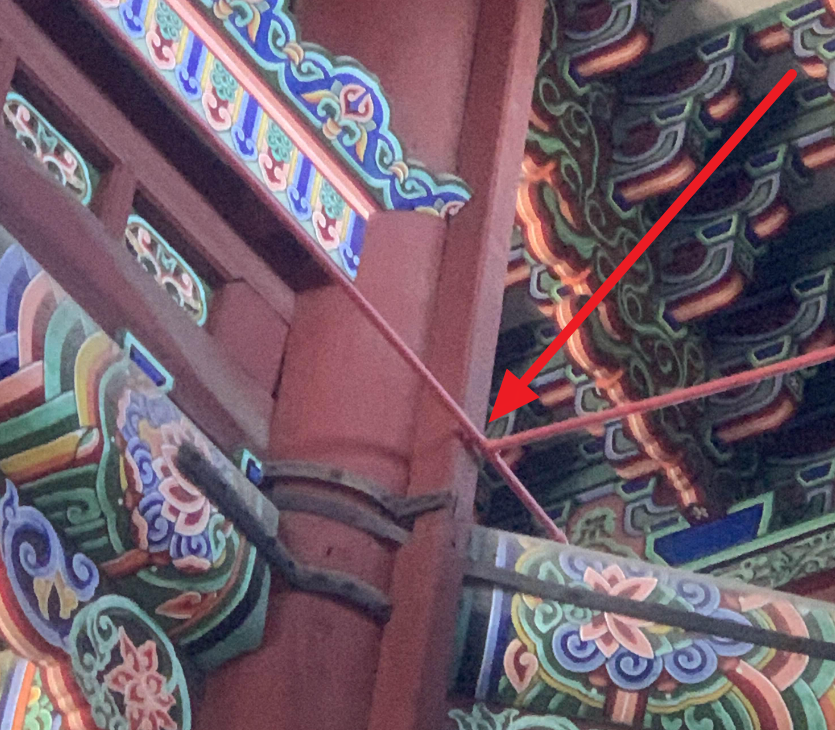 근정전의 보 주변으로 소화배관이 연결되어 있다.