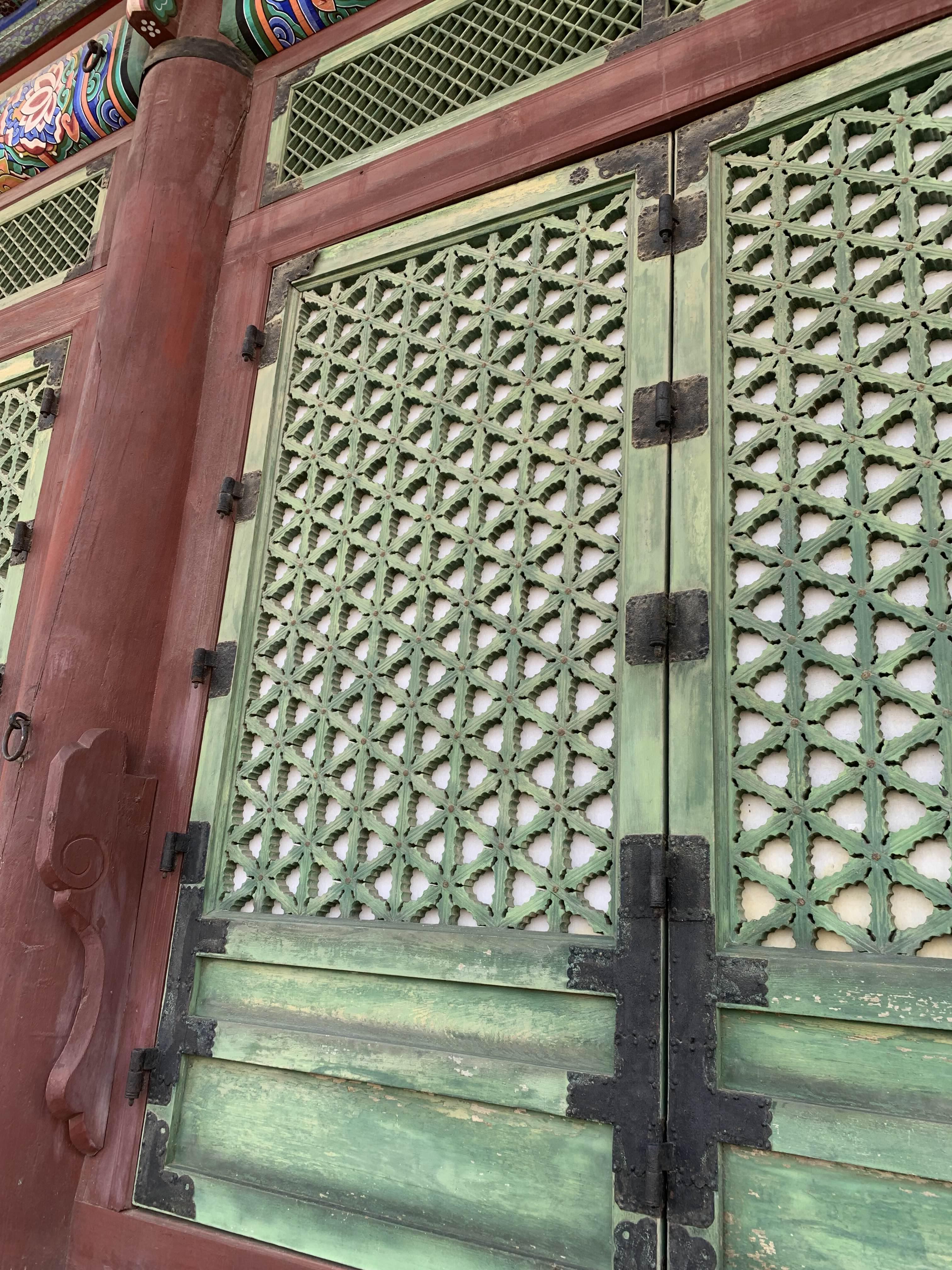 근정전의 문살을 화려하지는 않지만.... 꽃문 모양으로 문살이 설치되어 있다.