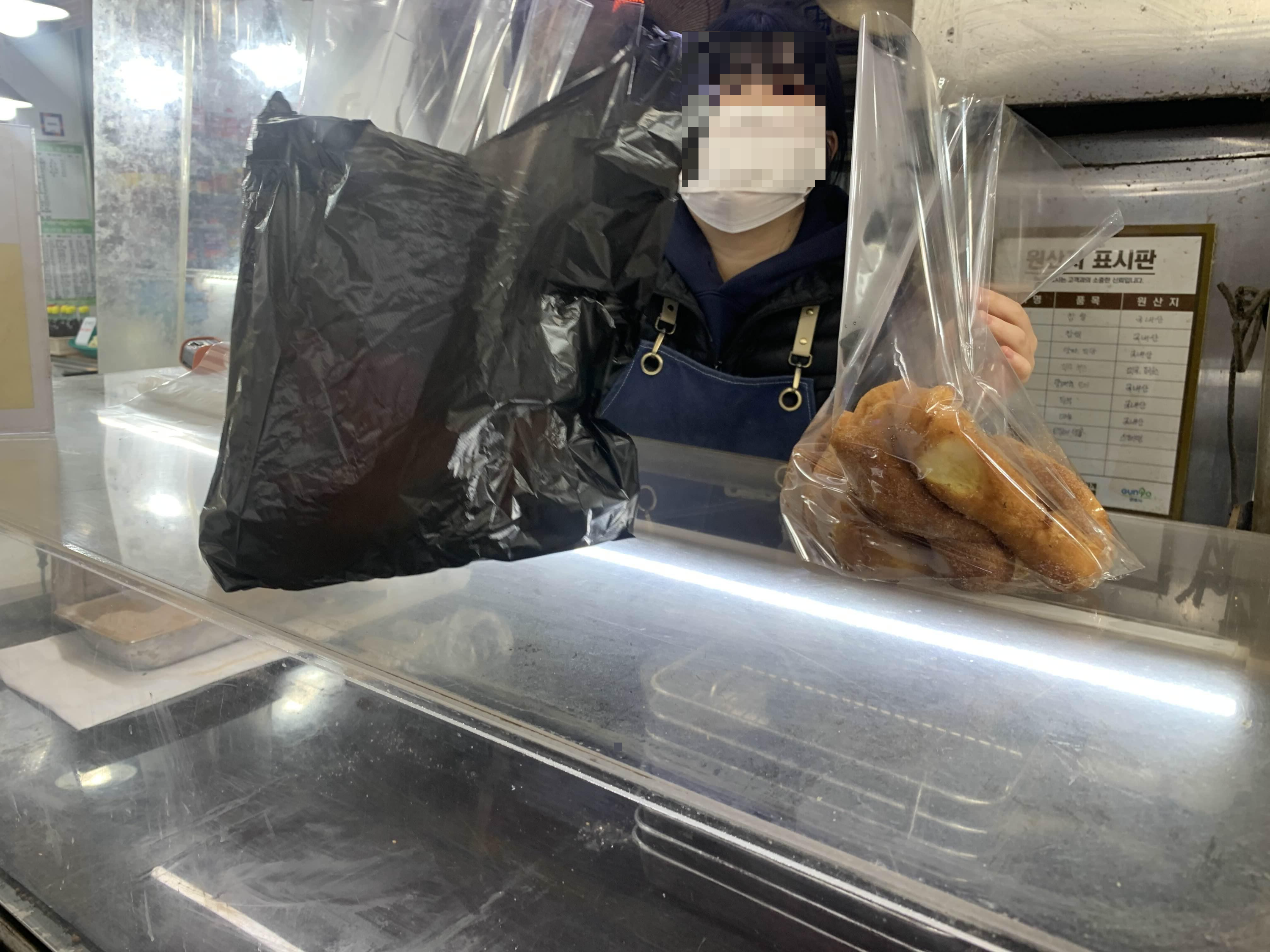 산본시장을 나가려던 찰나!! 팥도넛과 꽈배기 한봉기를 4,000원 행사를 하고 있었다.