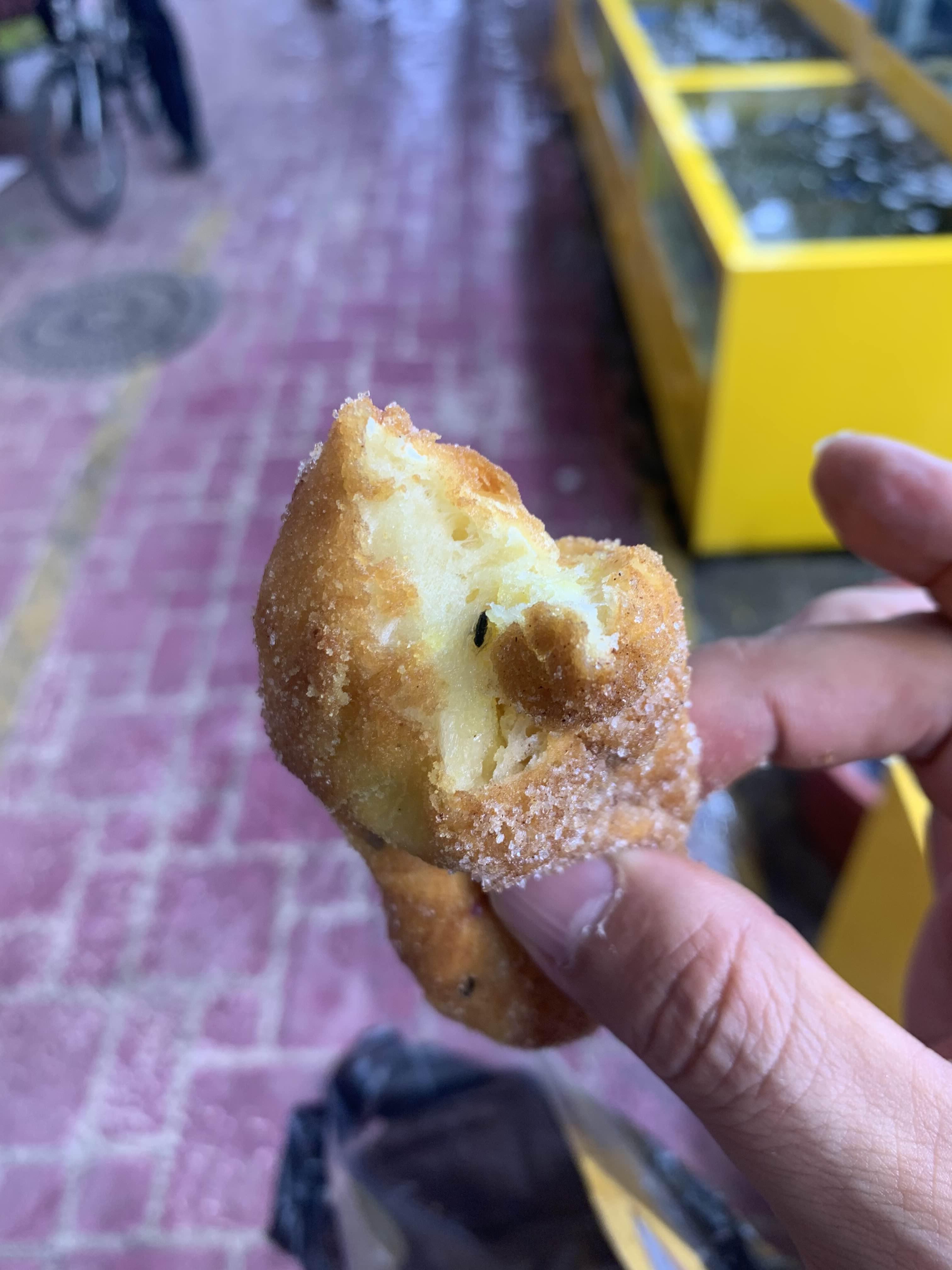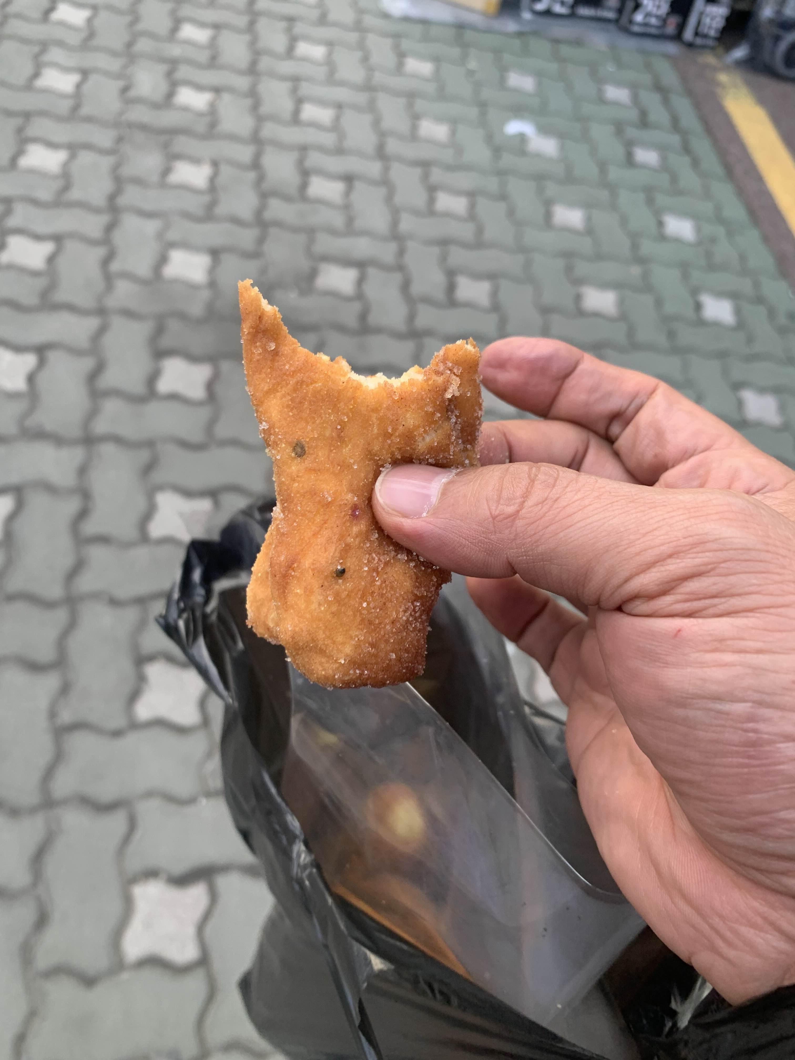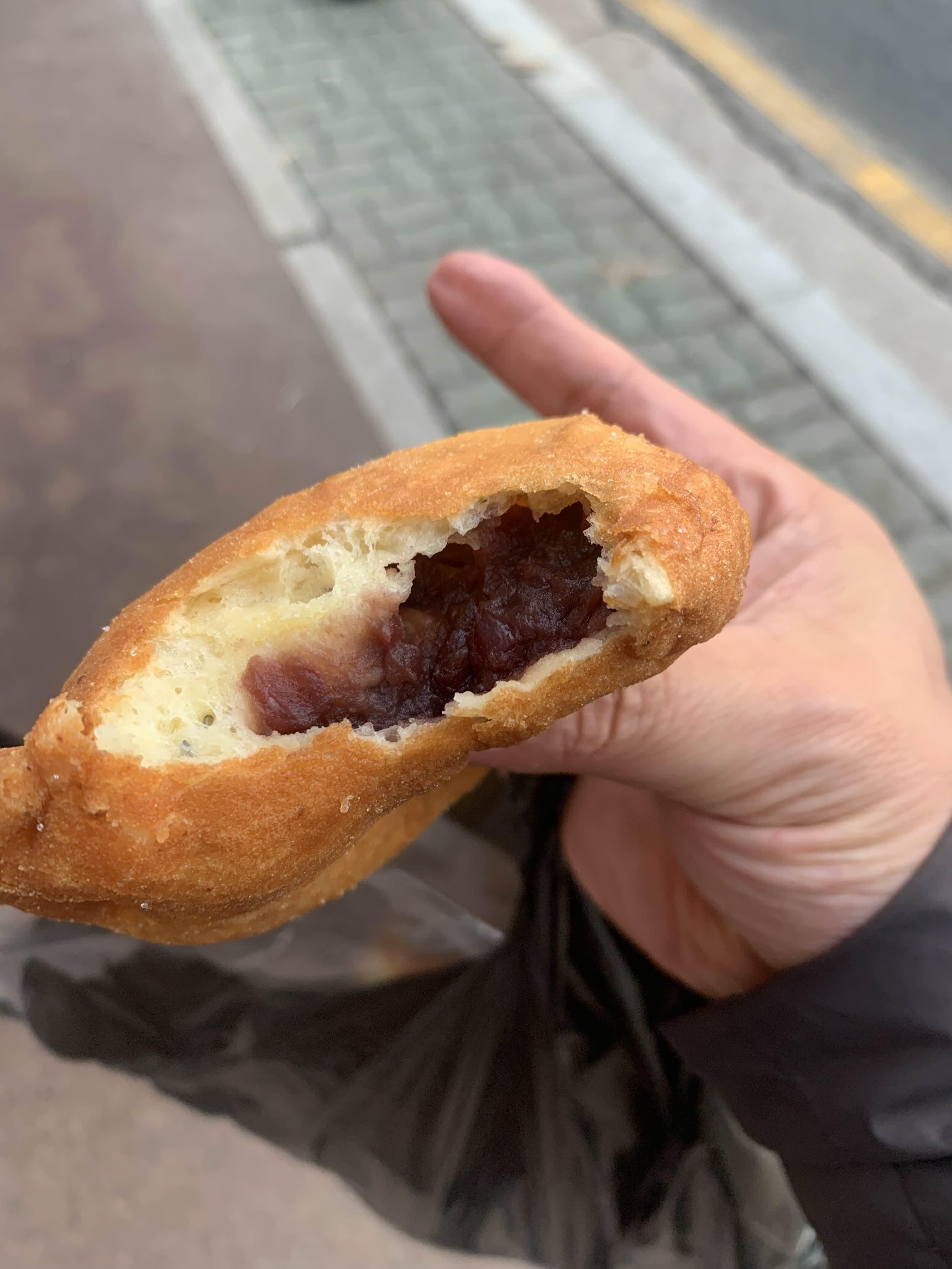 팥도넛 3개, 꽈배기 4개... 총 7개에... 가격도 가격이지만... 이제 막 만들어서 따뜻하다! 한 봉지를 구입해서... 맛보기로 한다.