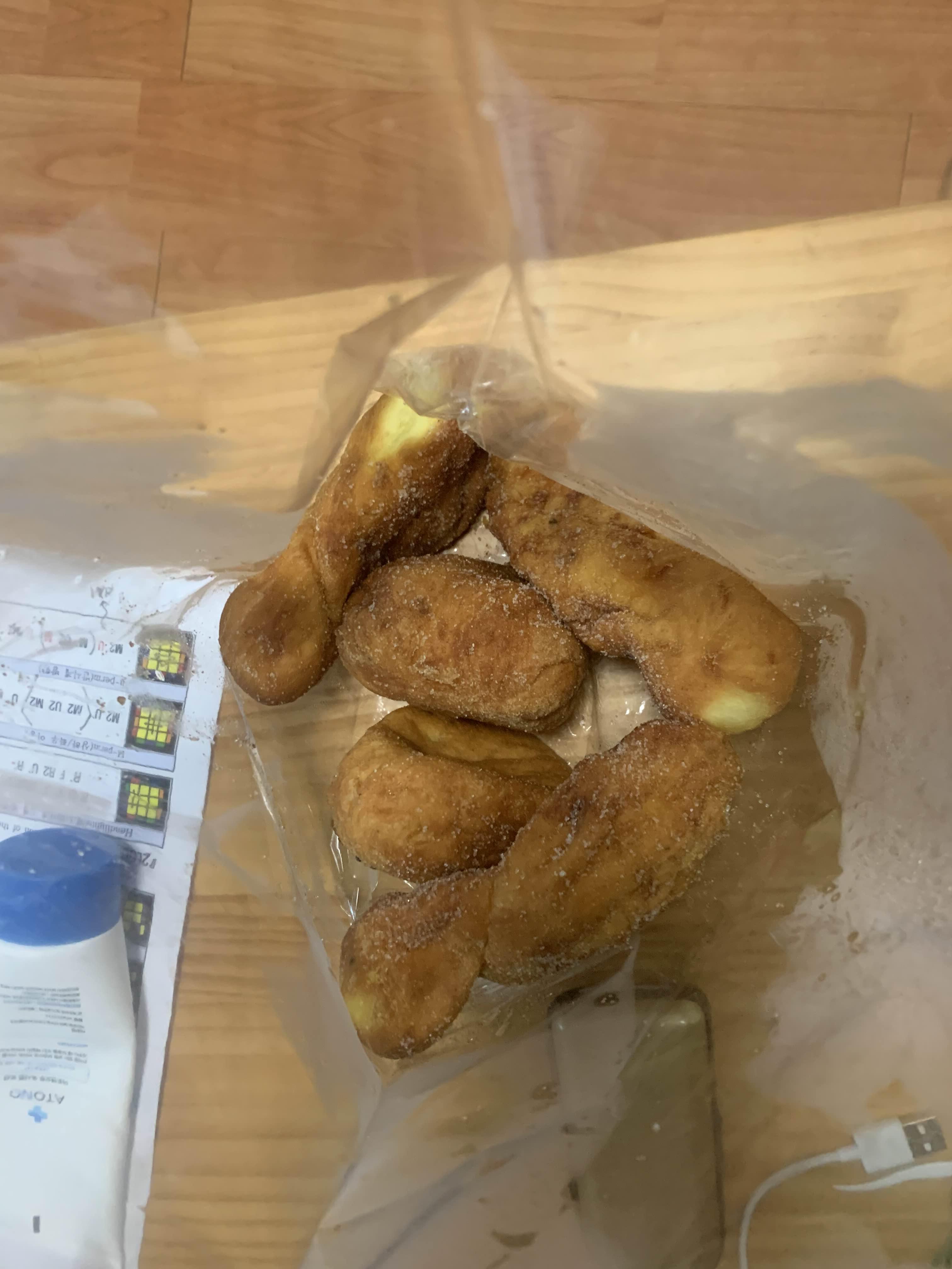 도넛..... 방금 구워서 그런지.... 손이 뜨겁다.ㅎㅎ