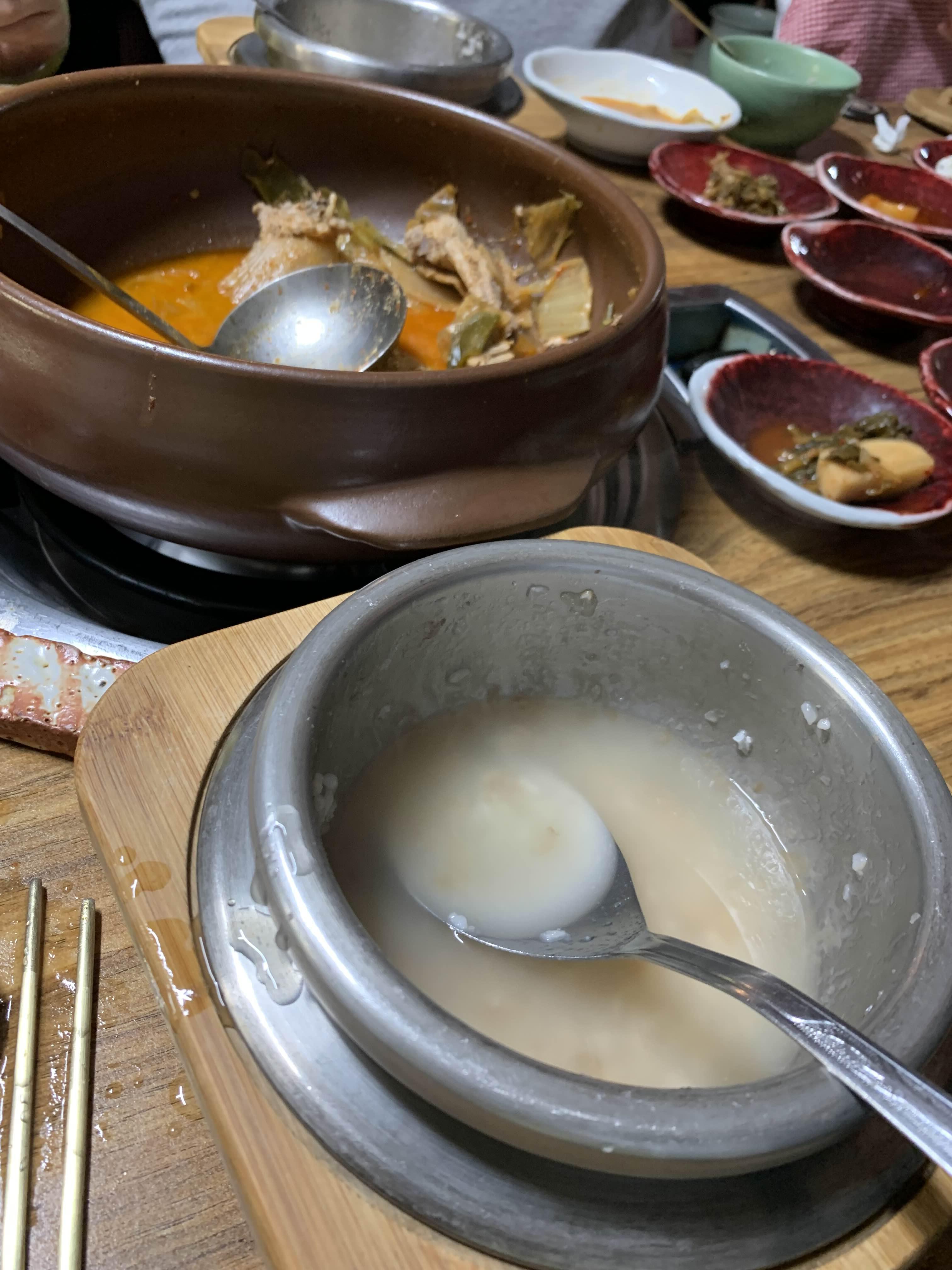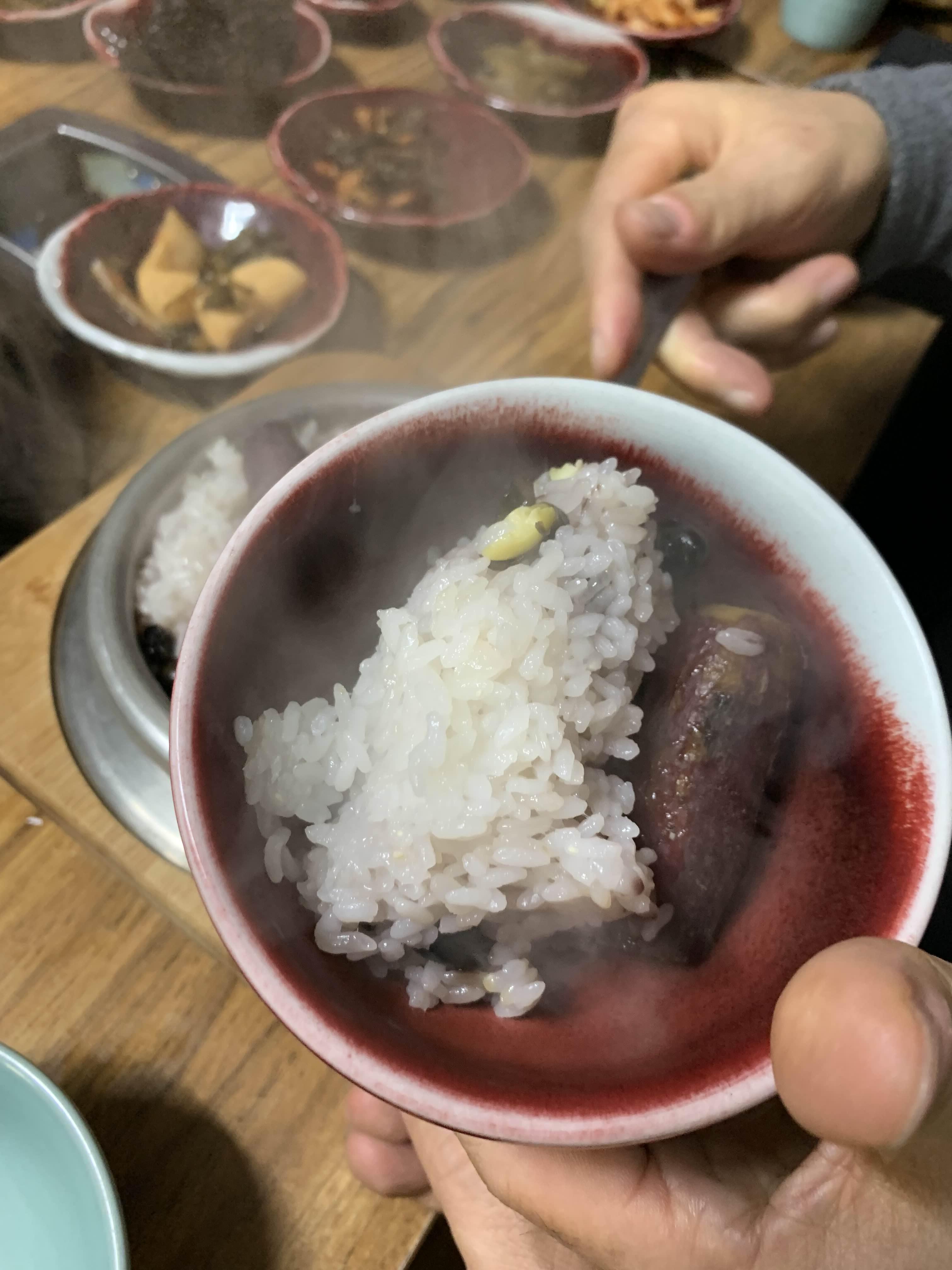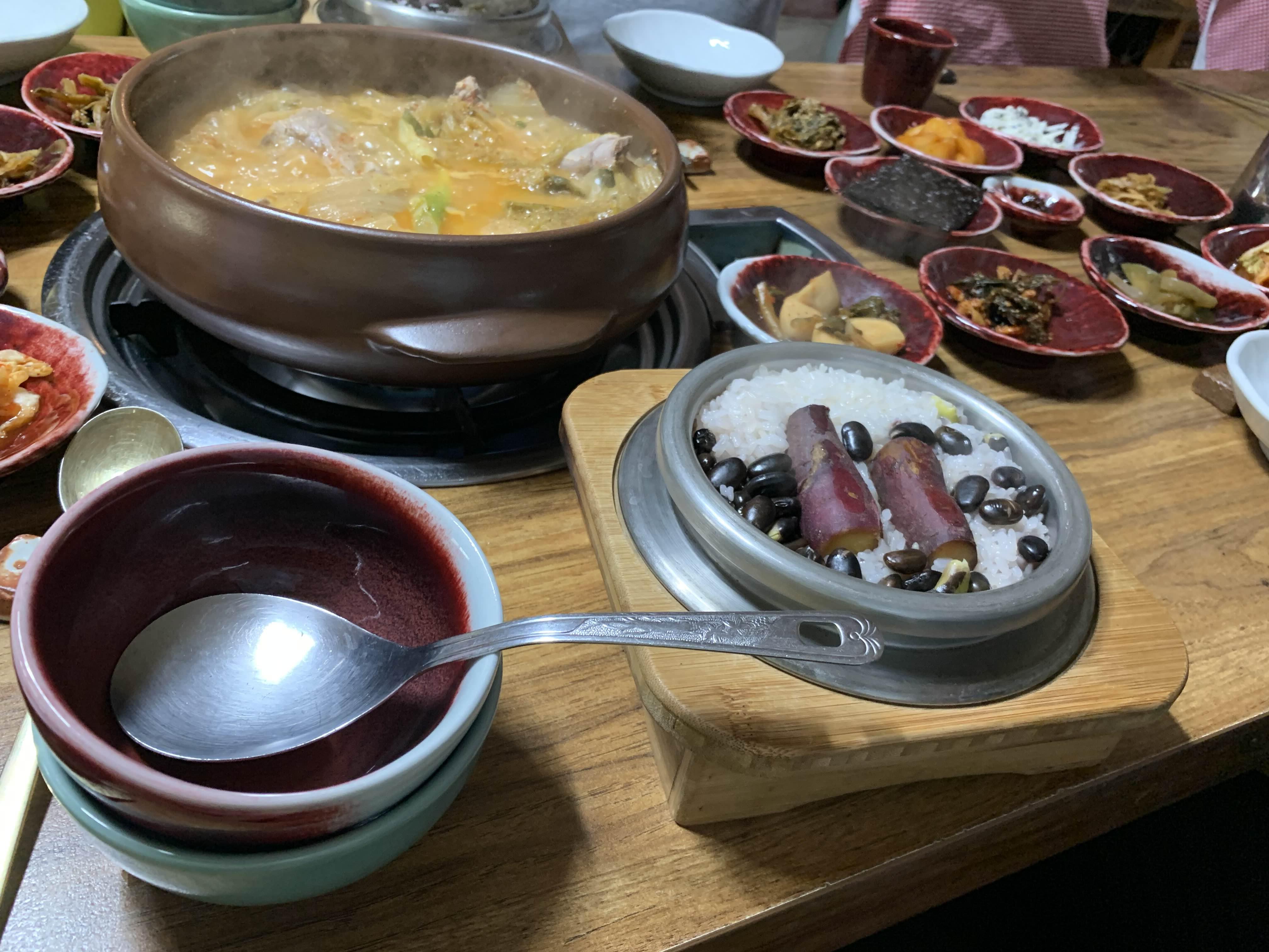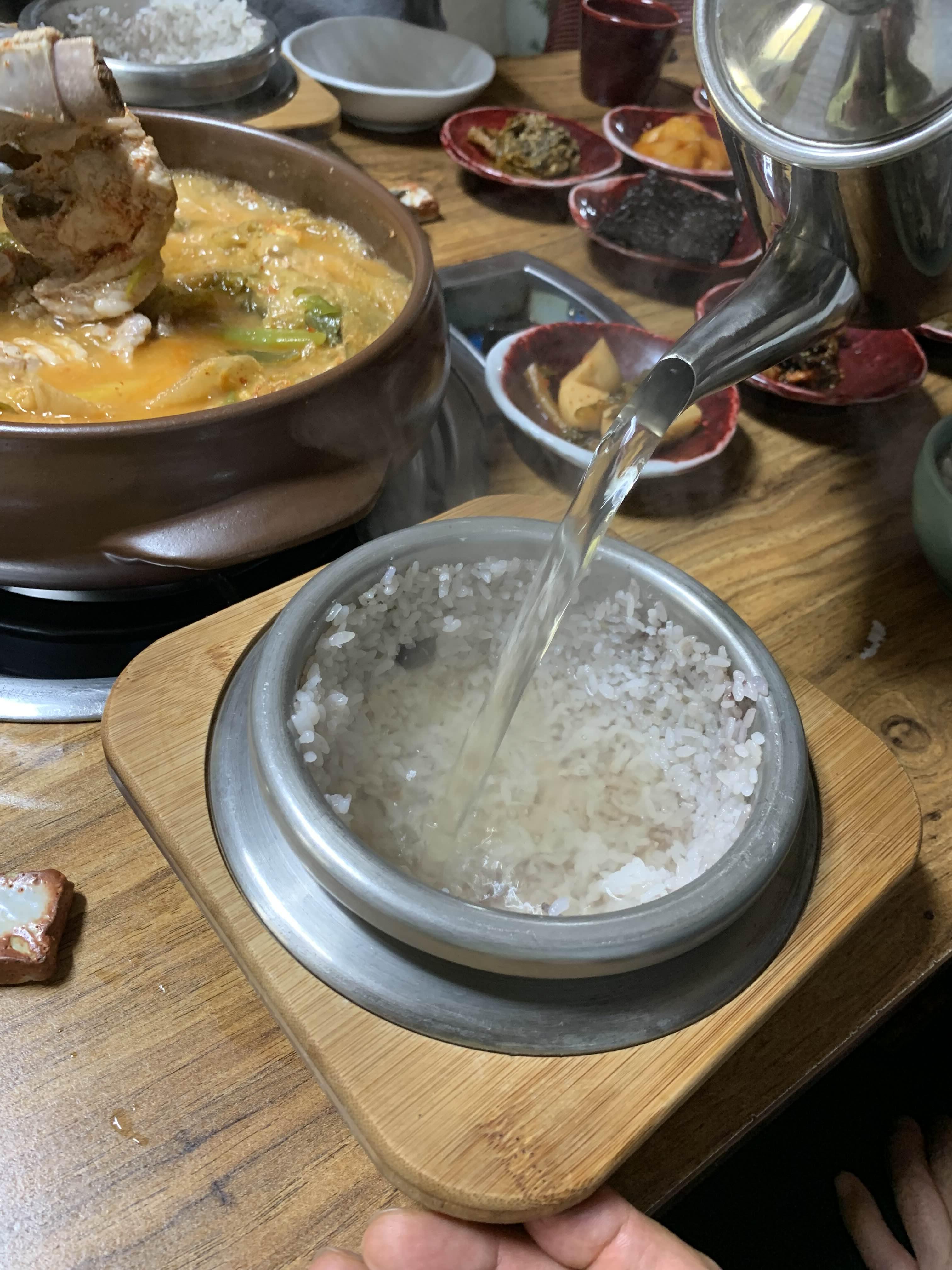갈비전골이 끊어 오르는 시간을 기다리니.... 솥밥이 나오더군요. 솥밥은 1개를 2명이 나누어 먹는 방식!!