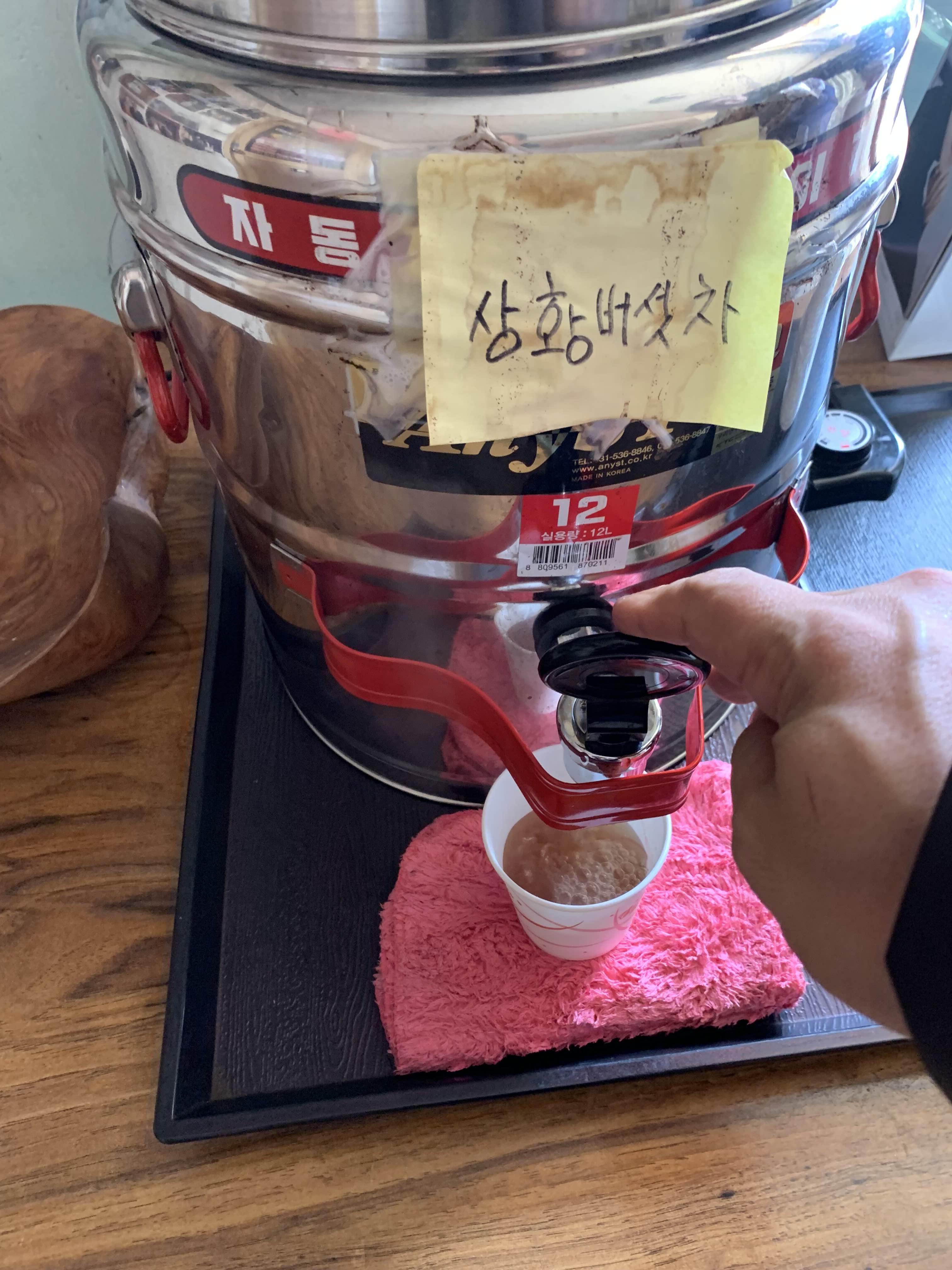 요 후식으로 제공되는 상황버섯차는 상당히 달달한 느낌이랄까?