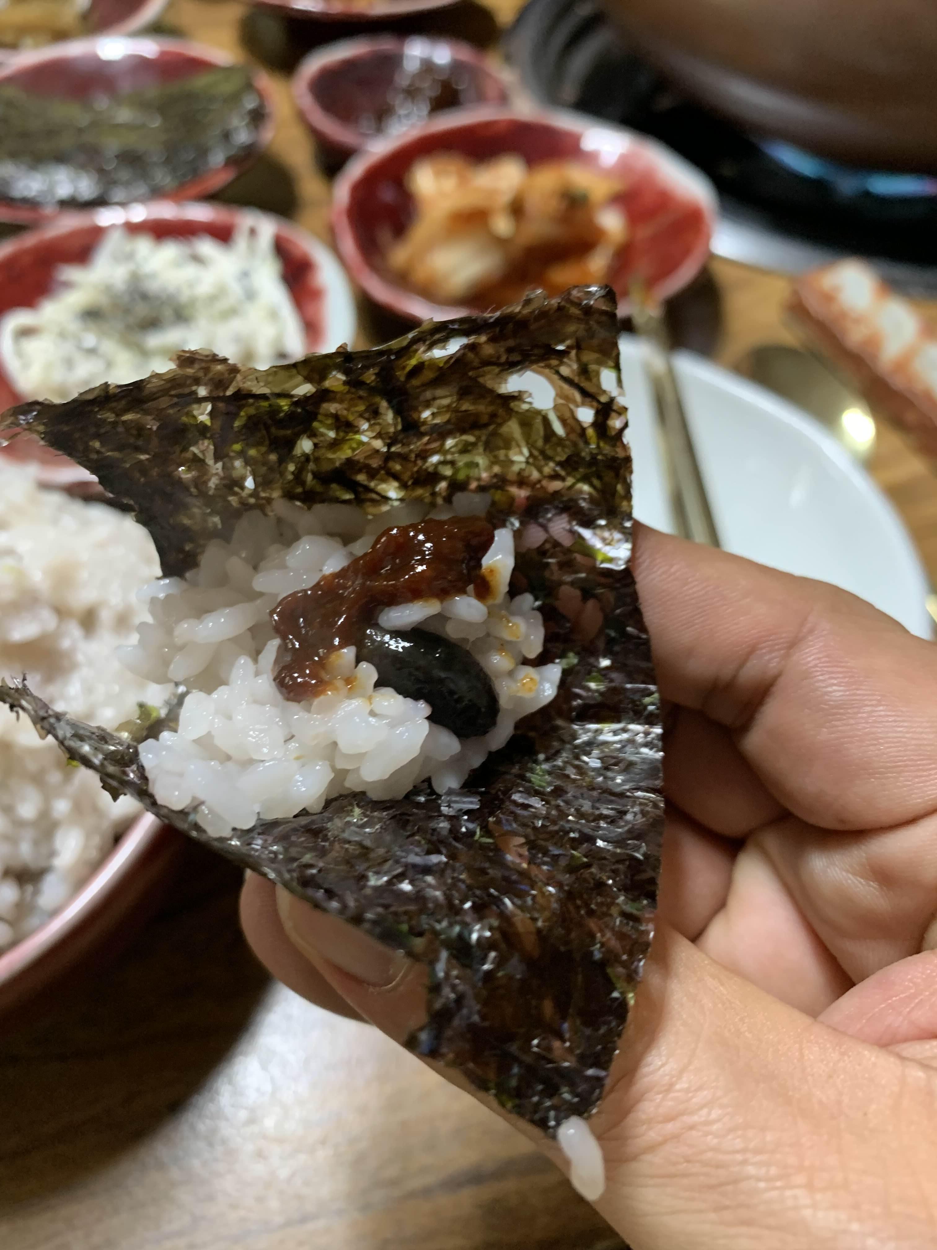 갓 지은 솥밥을 김 싸서 쌈장을 넣어서 한입!!!