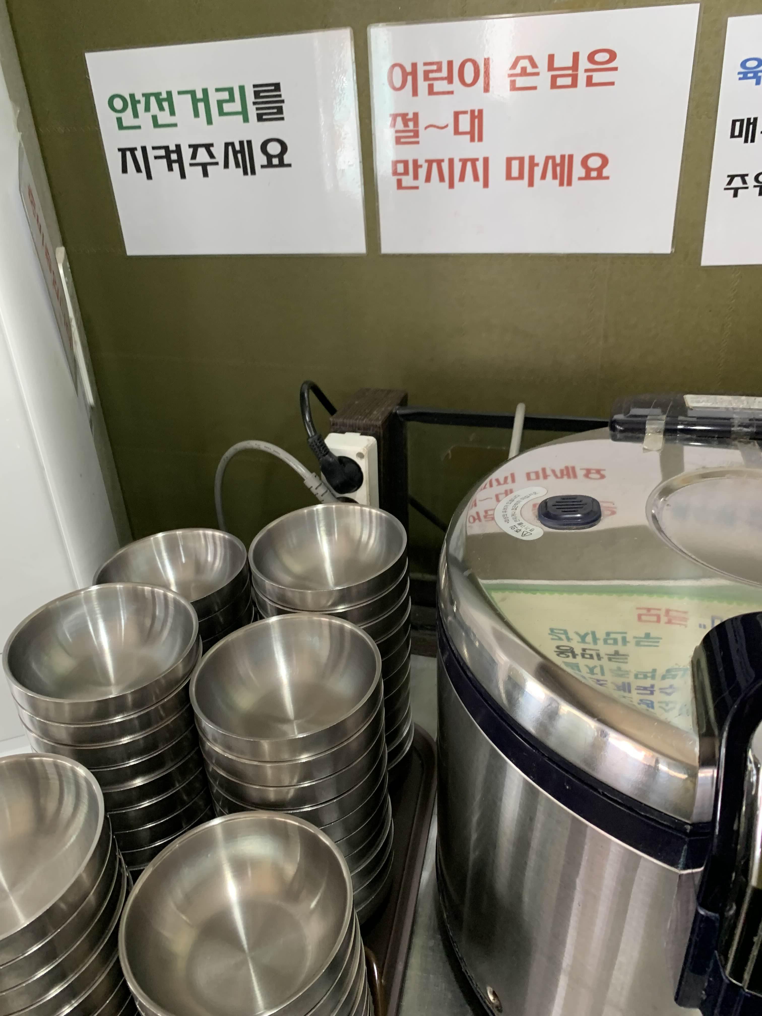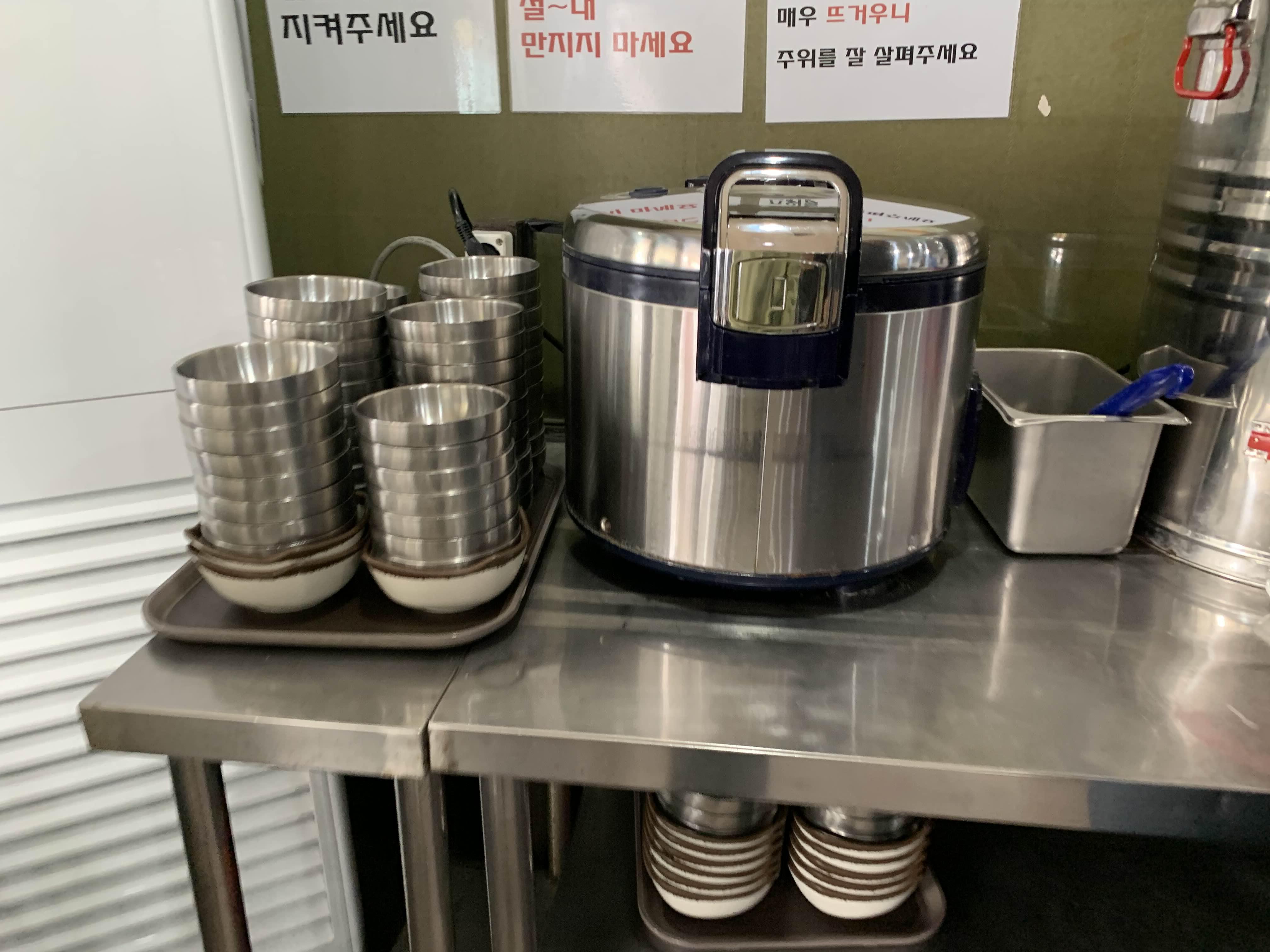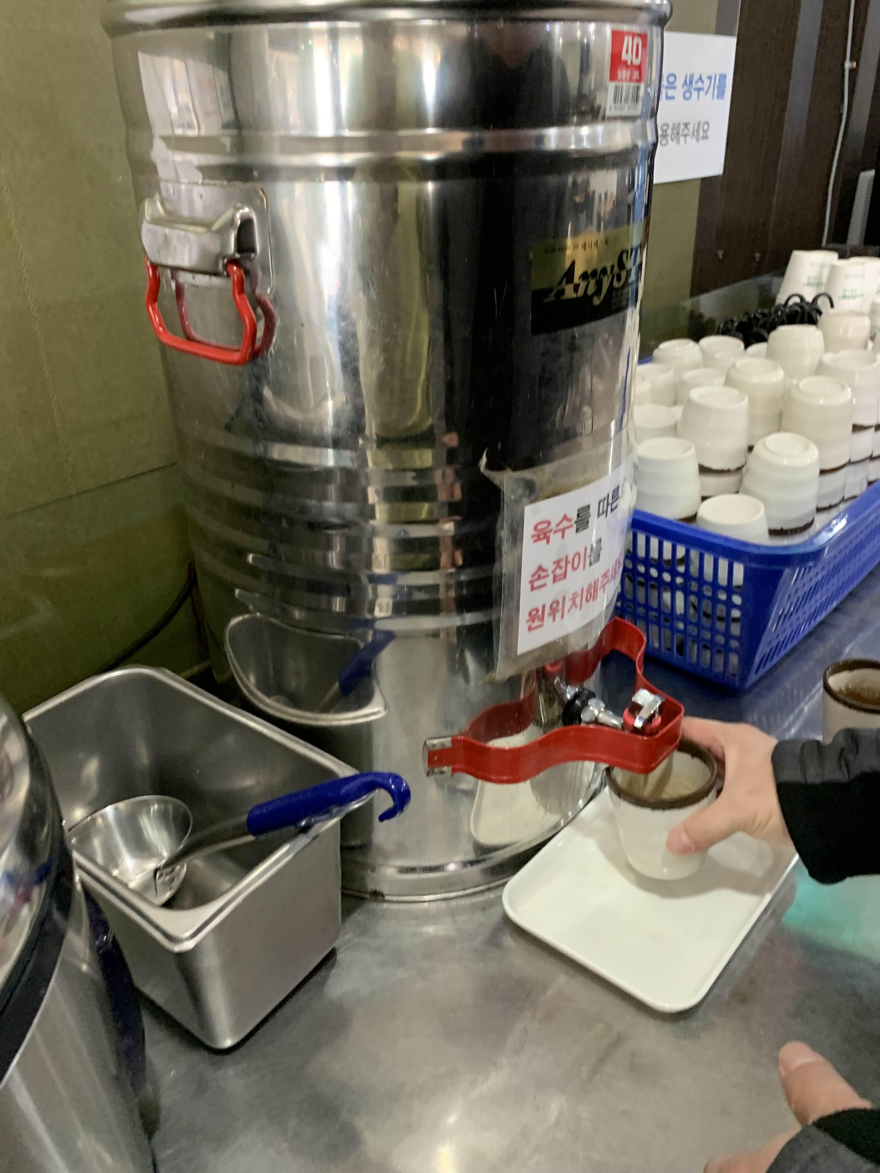 셀프코너에는 따듯한 육수와 숭늉이 마련되어 있다.