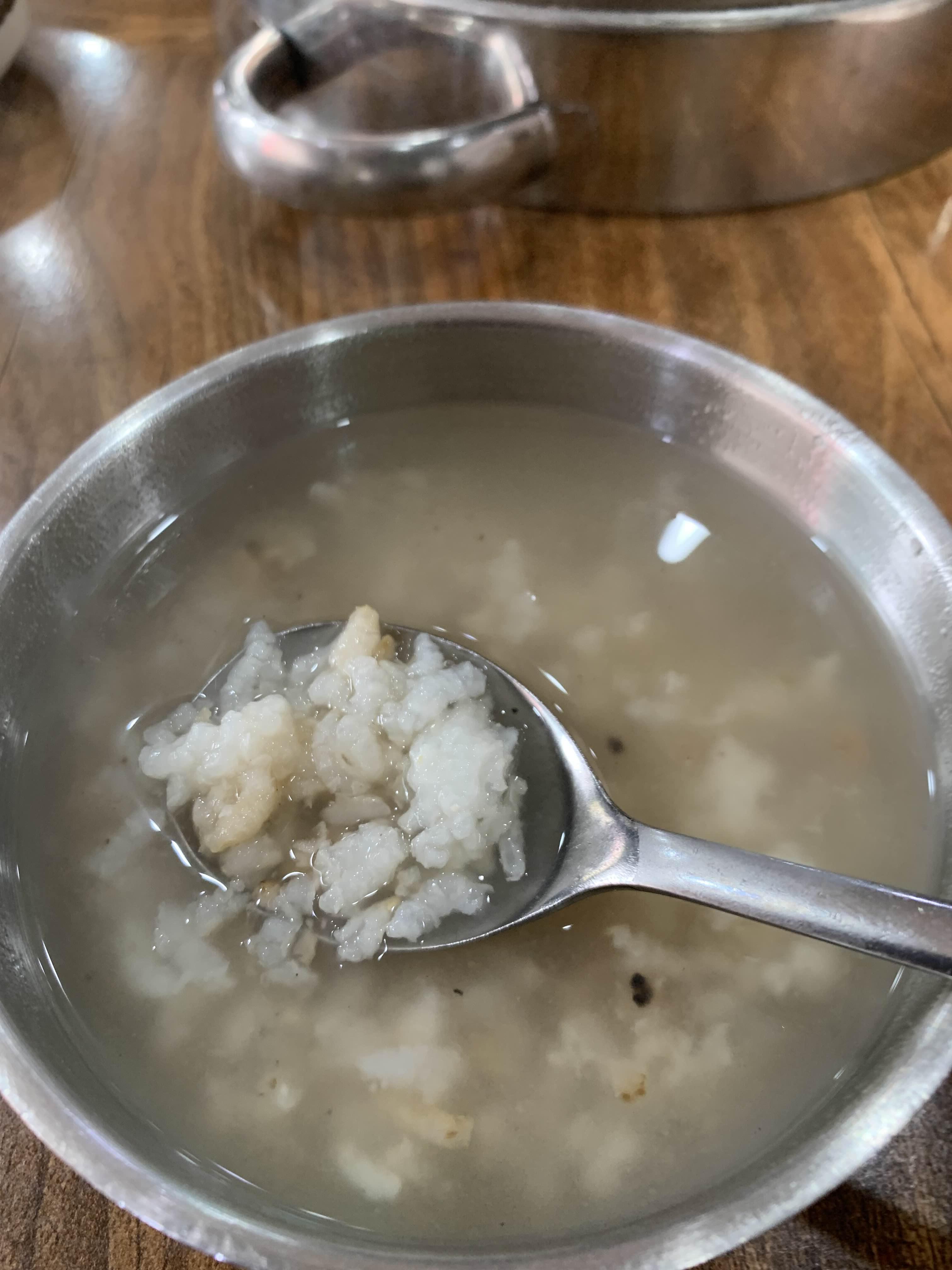 먼저 따뜻한 육수를 맛보는데... 국물이 상당히 진하다.