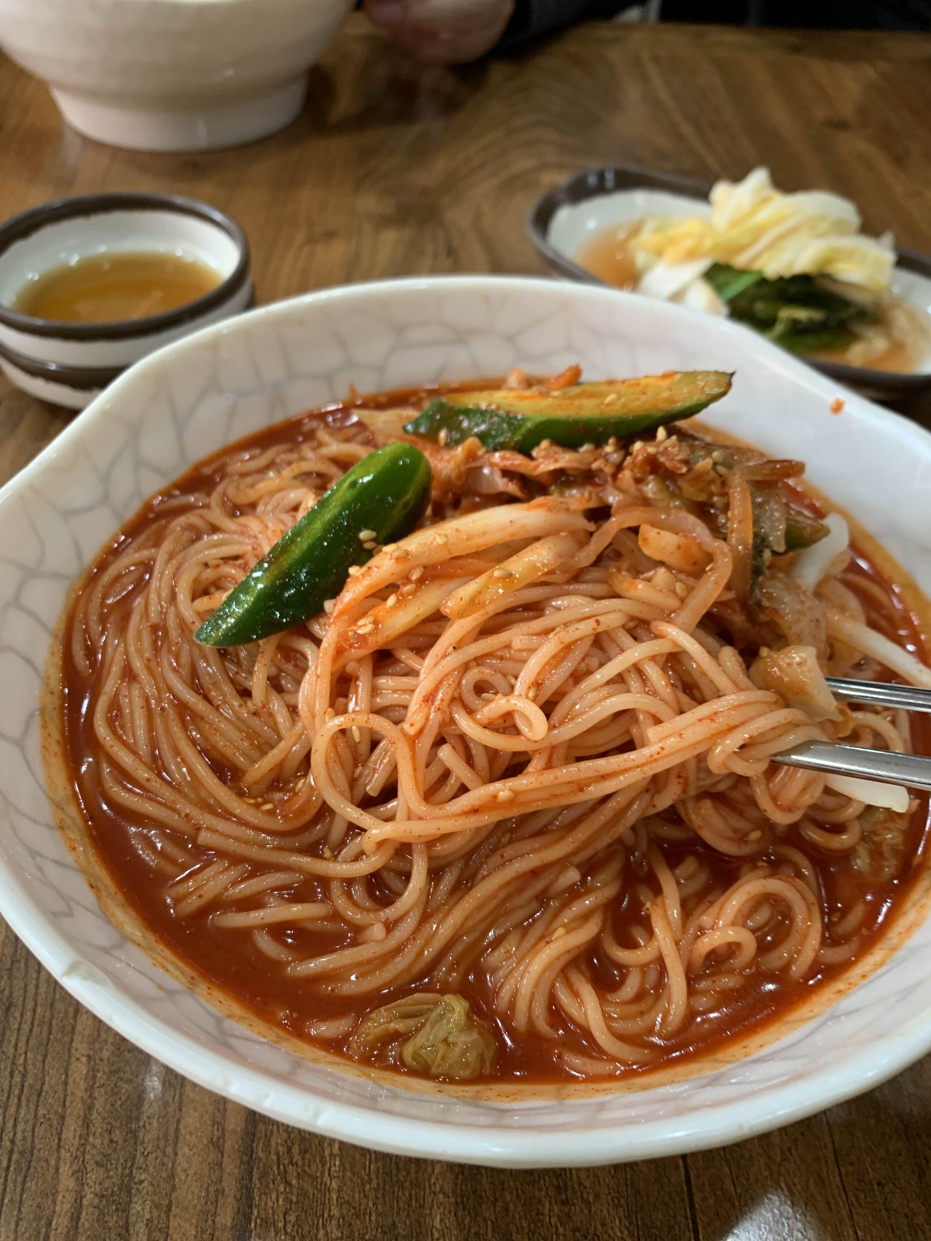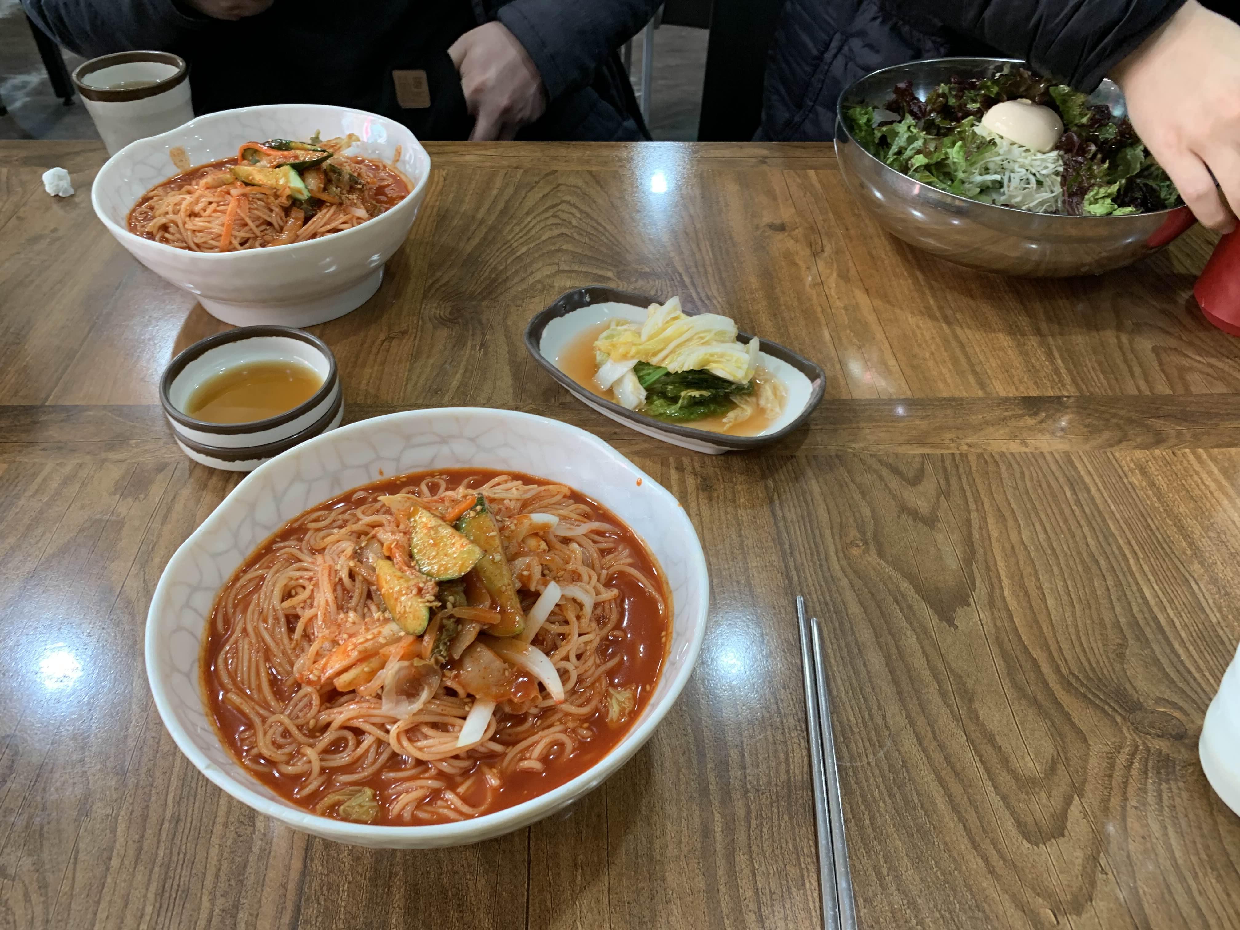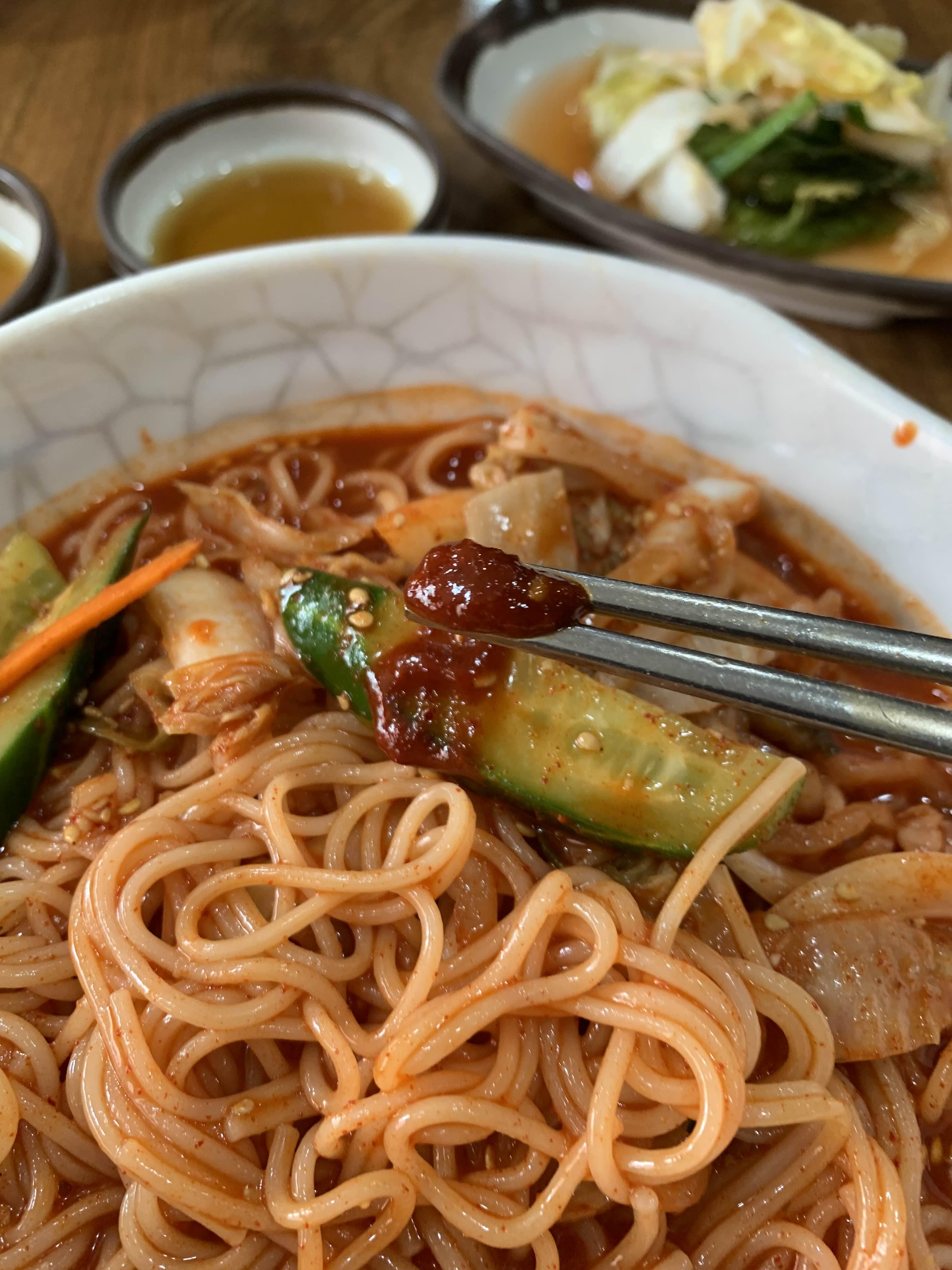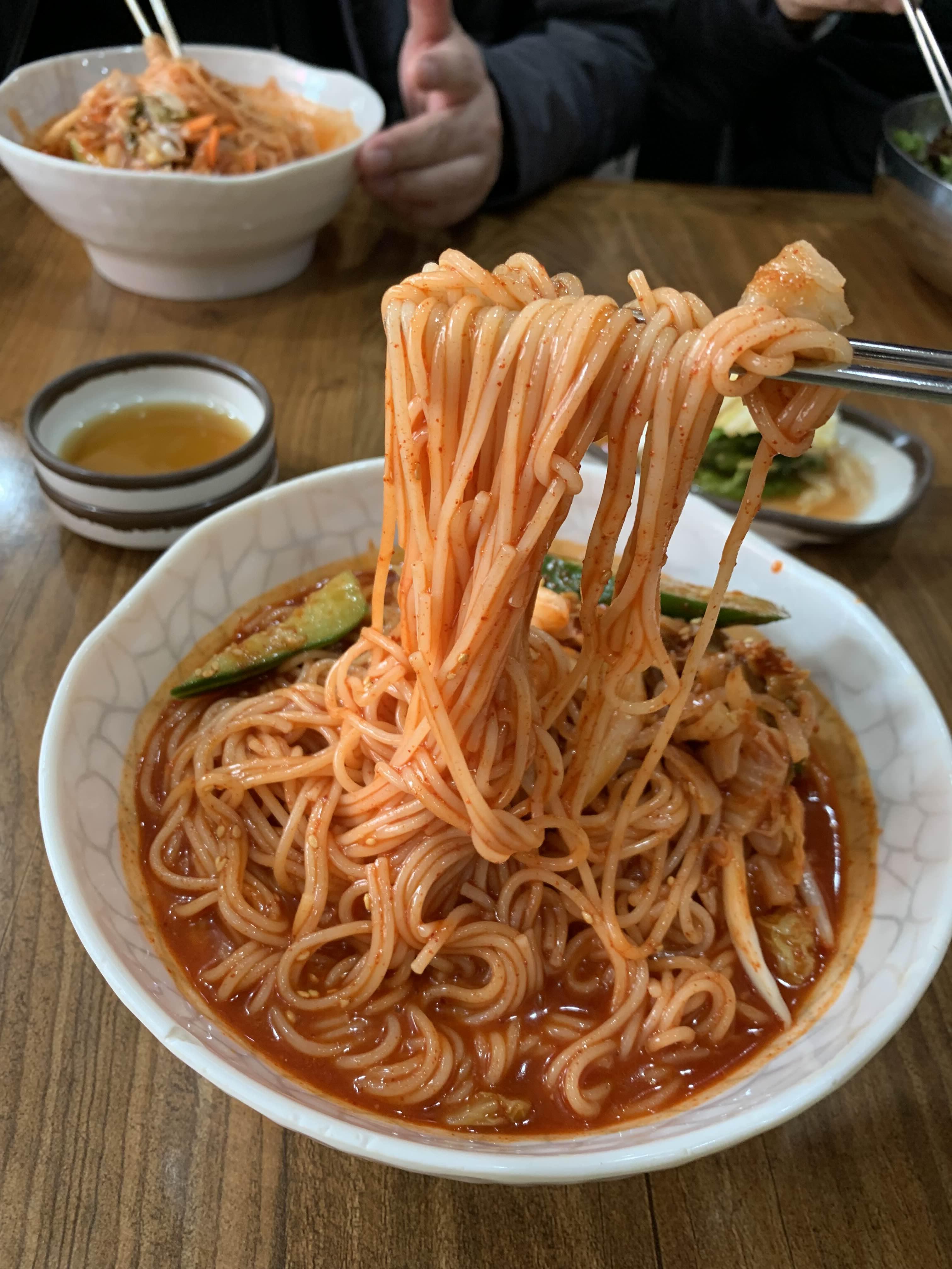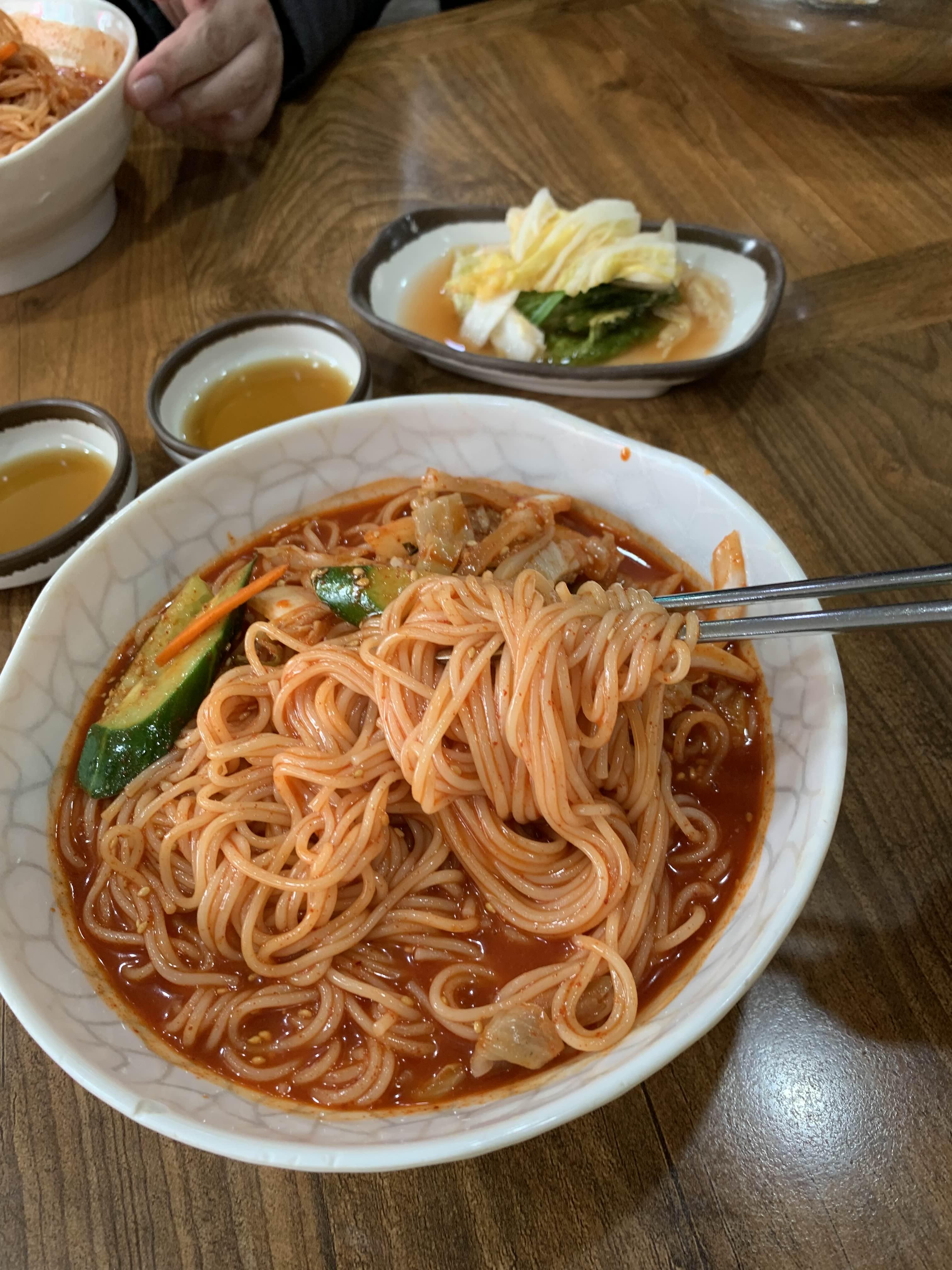 비빔국수를 맛보는데..... 엄청 차갑다.